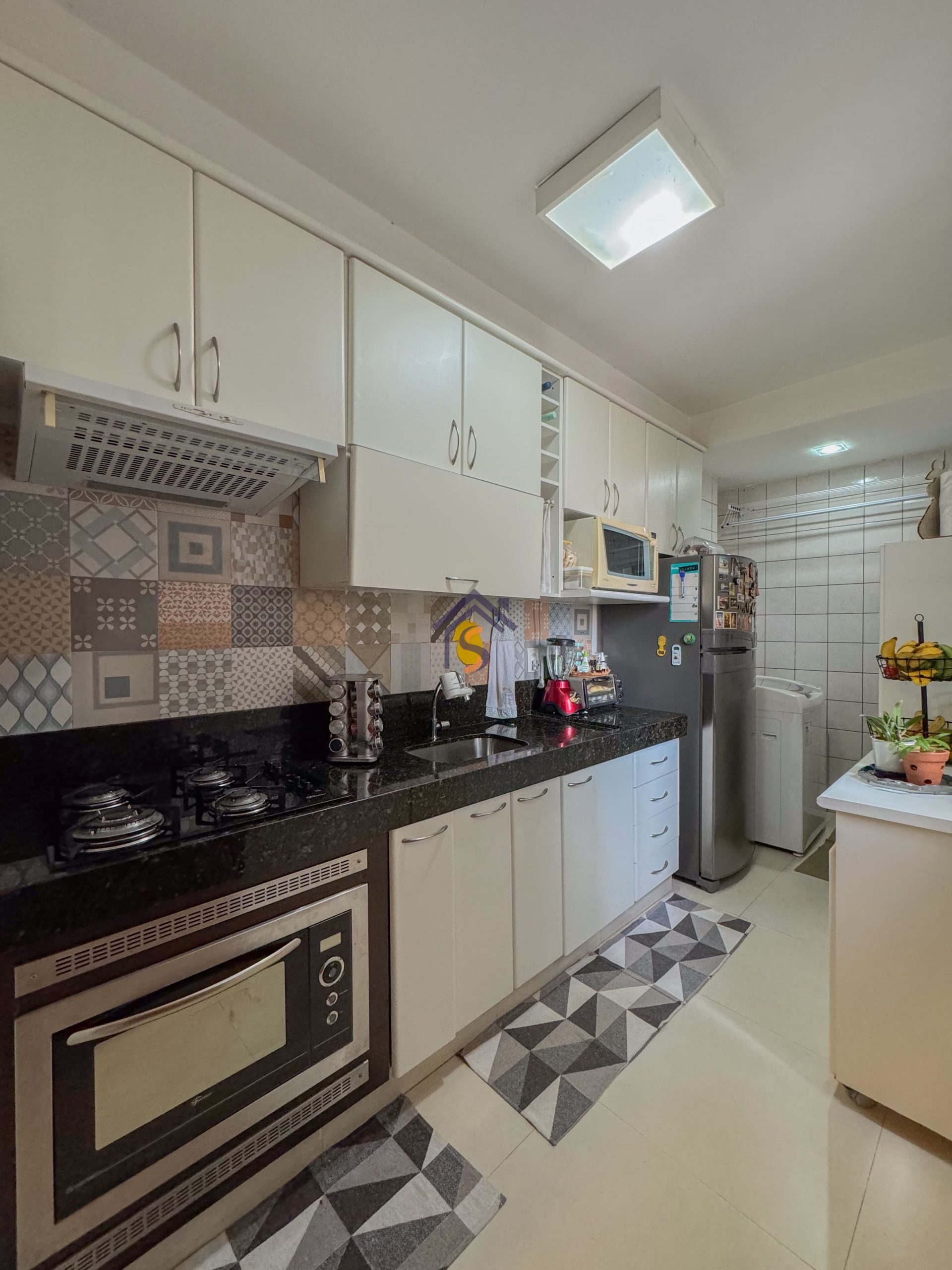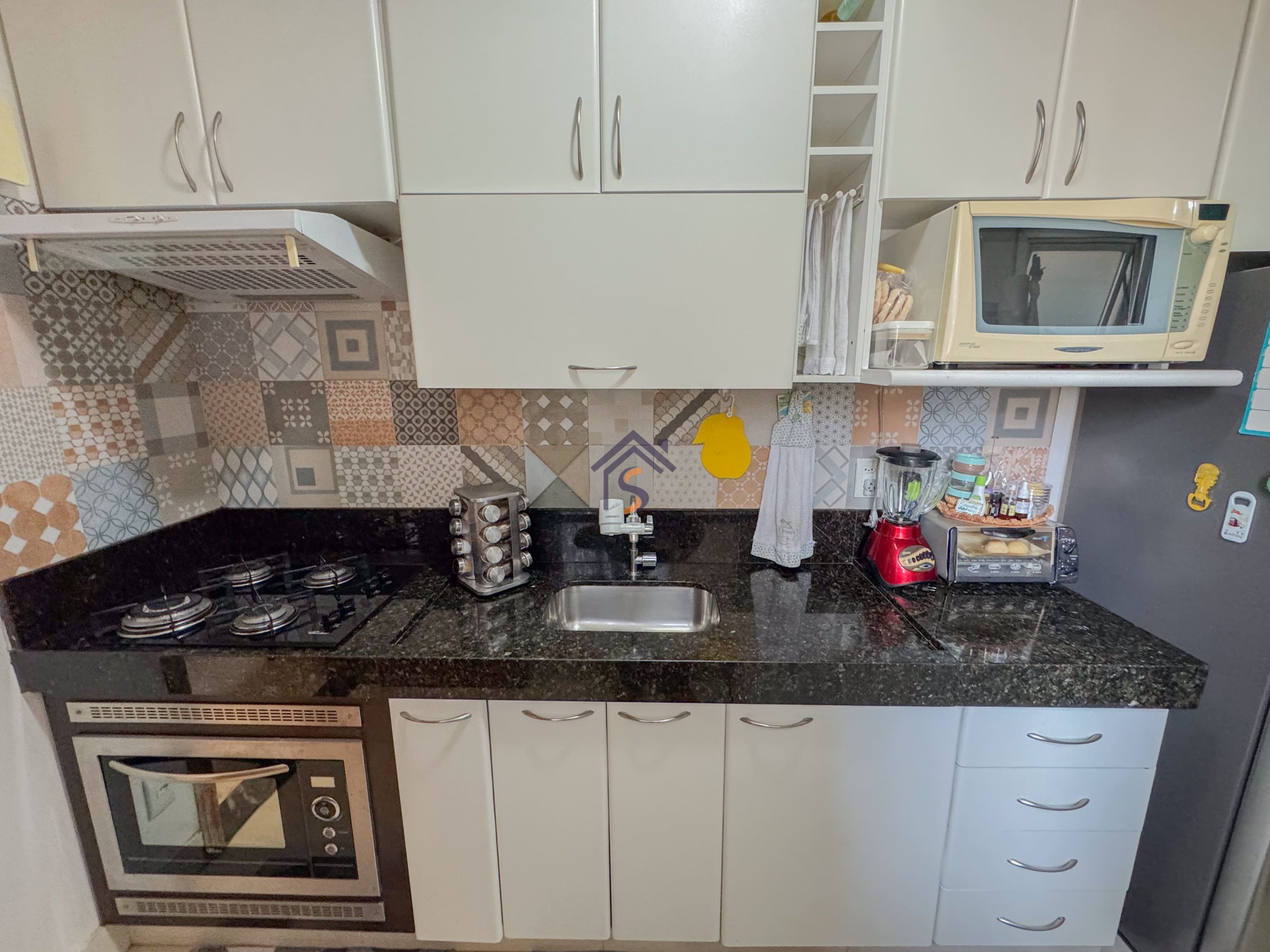 Excelente apartamento com dois quartos, sendo uma suíte, banheiro social, escritório, sala de estar e jantar, cozinha com armários planejados, área de serviço e uma vaga de garagem coberta.