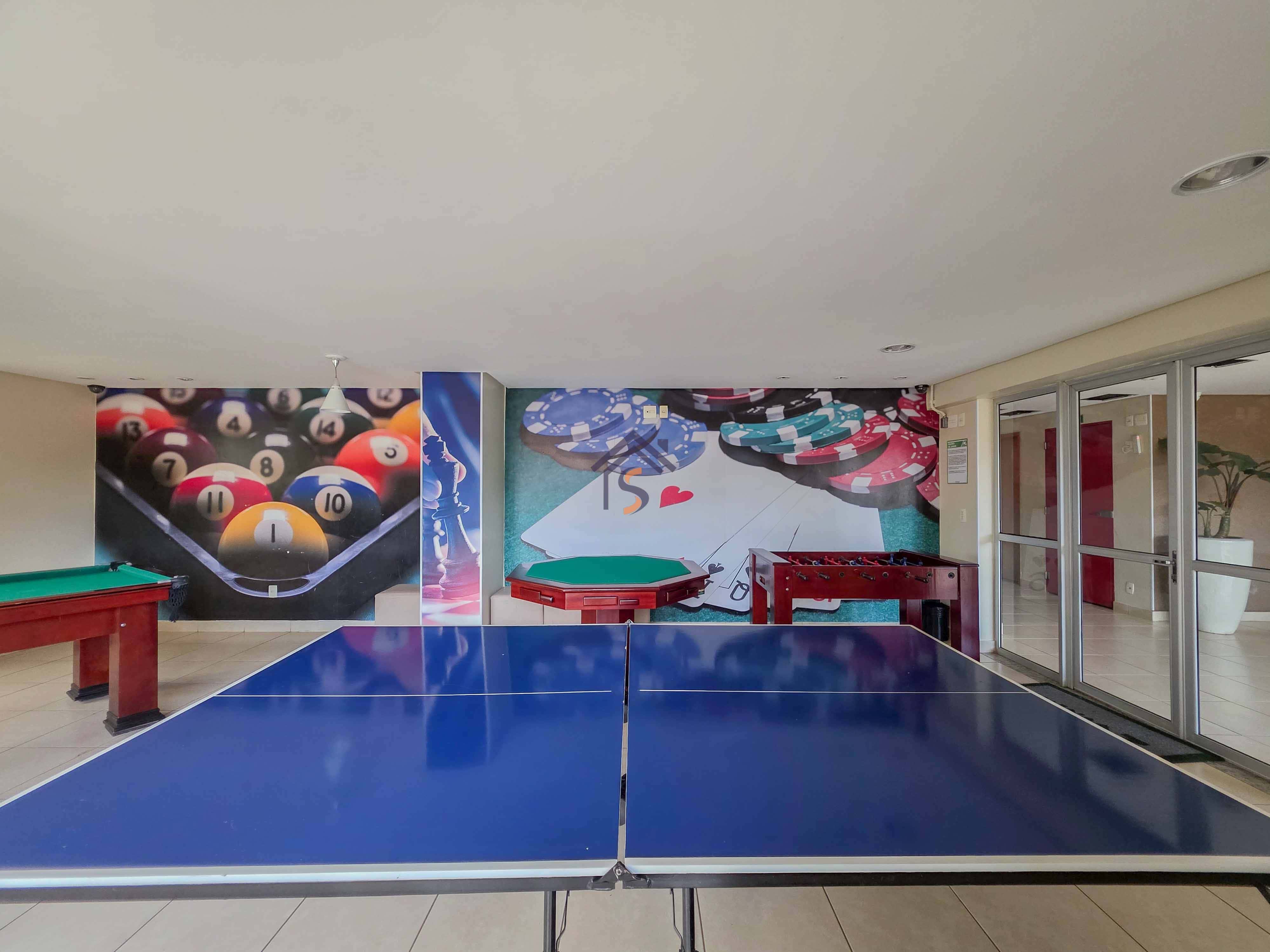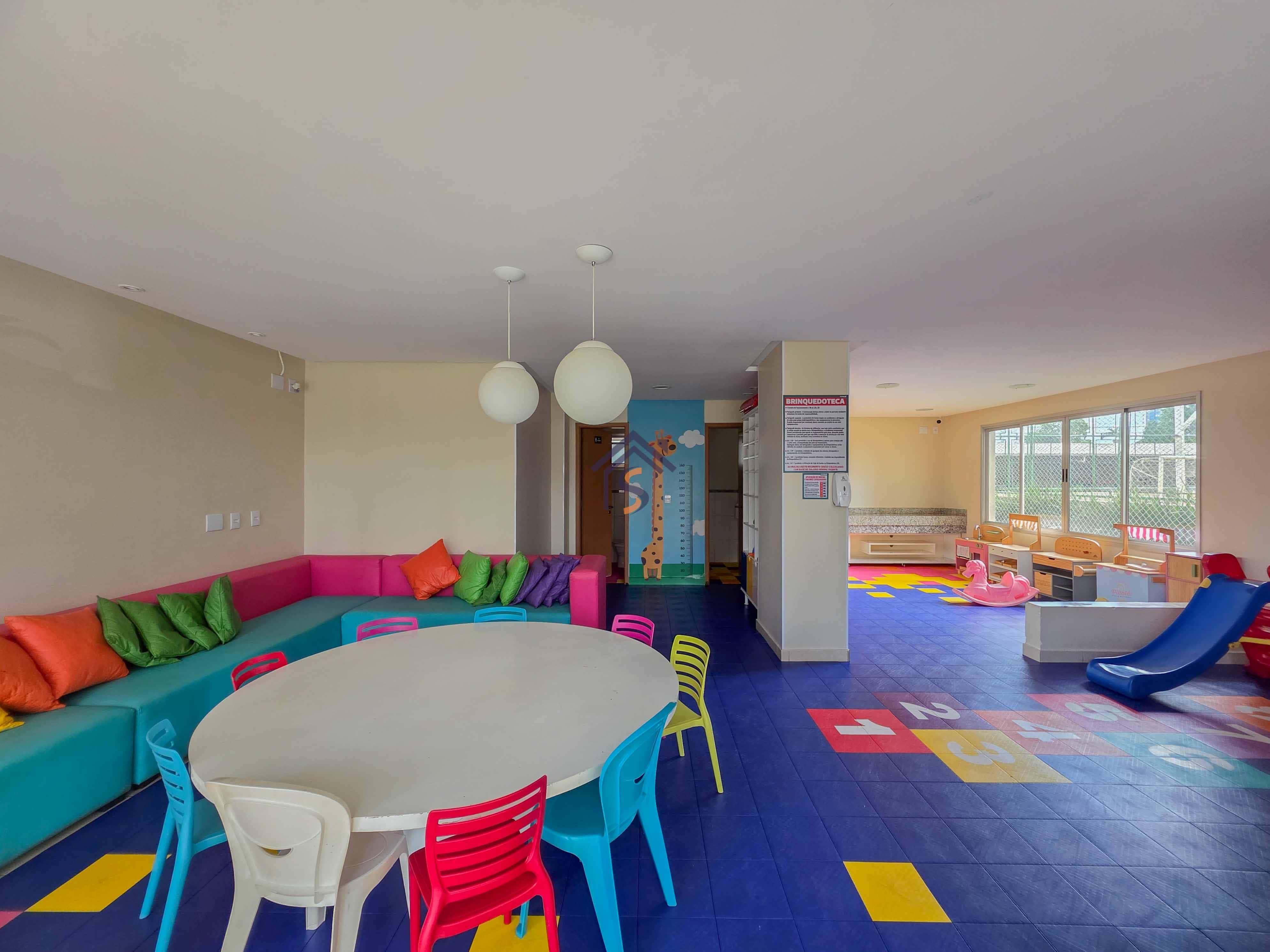 Área de lazer completo com salão de festa, churrasqueira, academia, brinquedoteca, playground, sala de jogos, sauna, piscina adulto e infantil, quadra poliesportiva, e área de convivência.