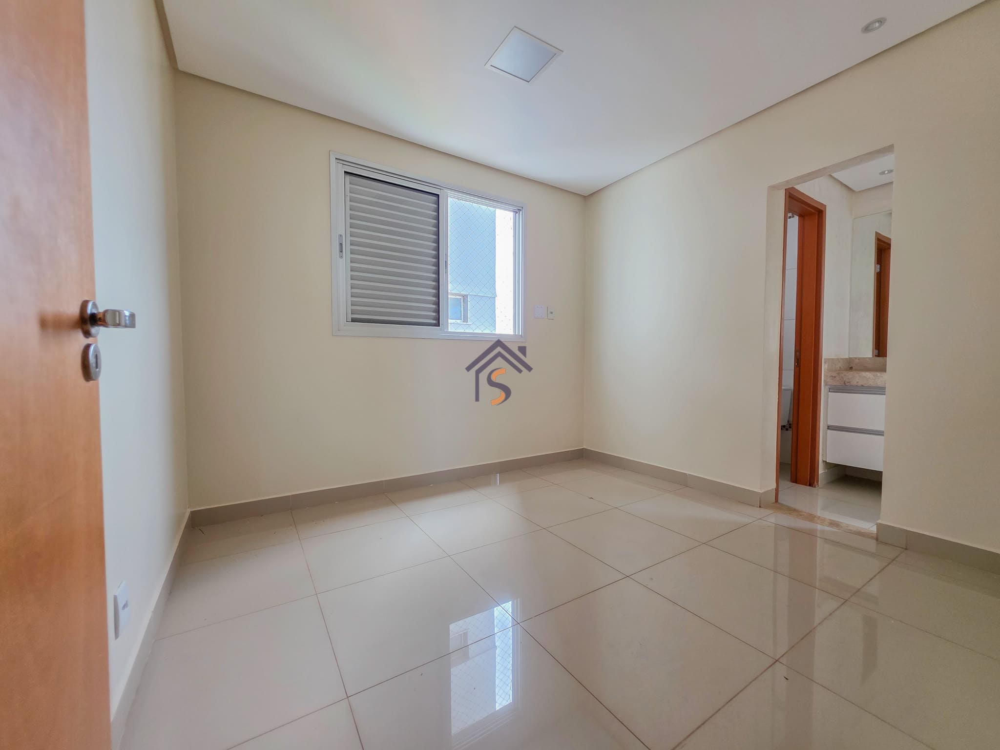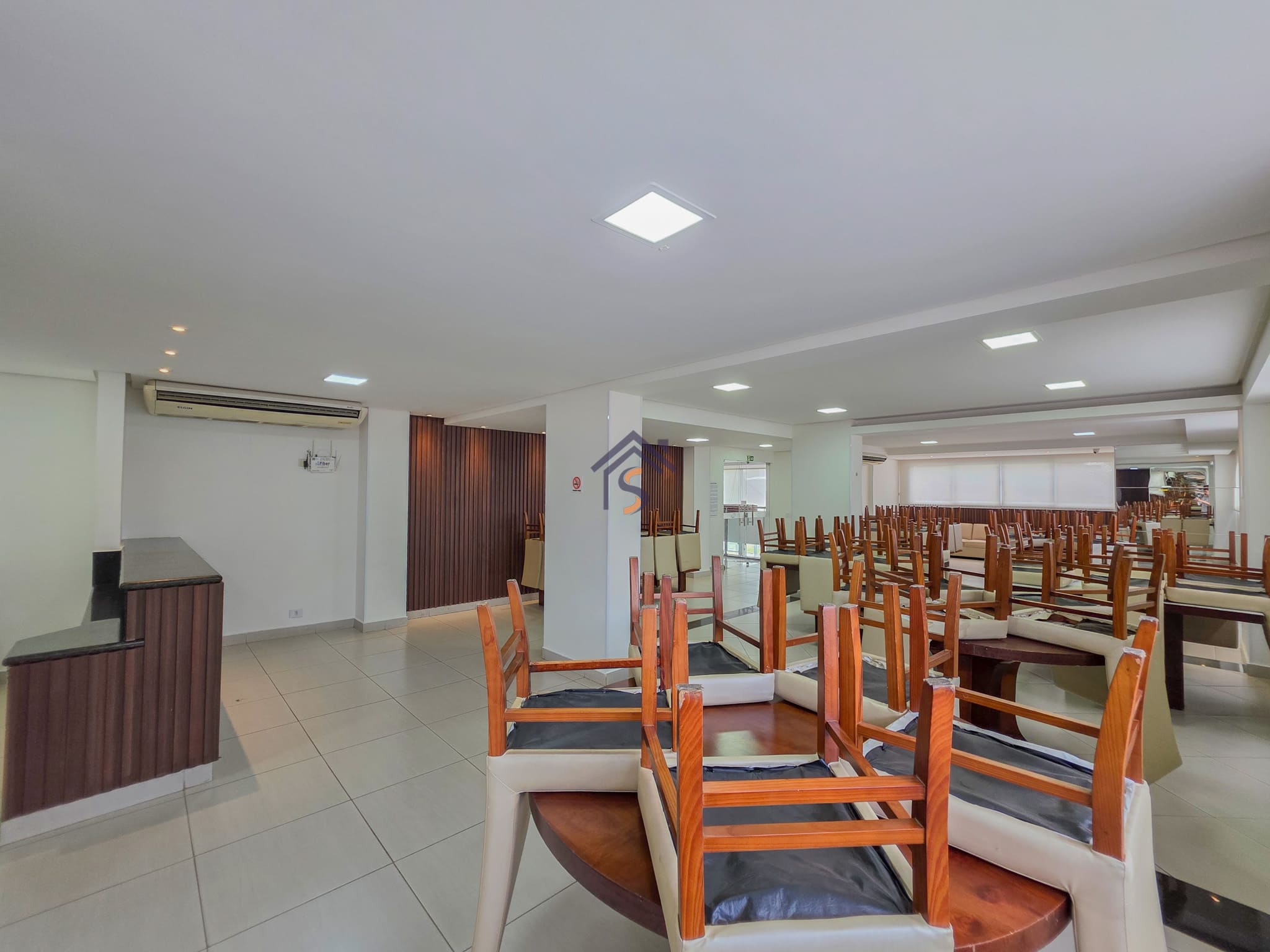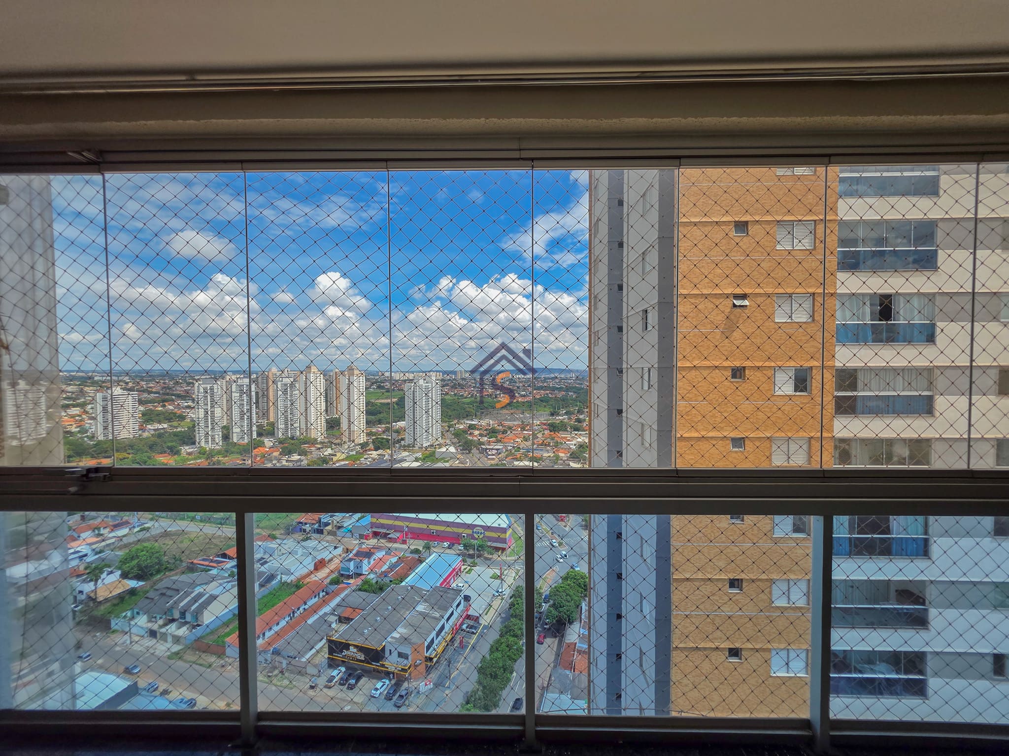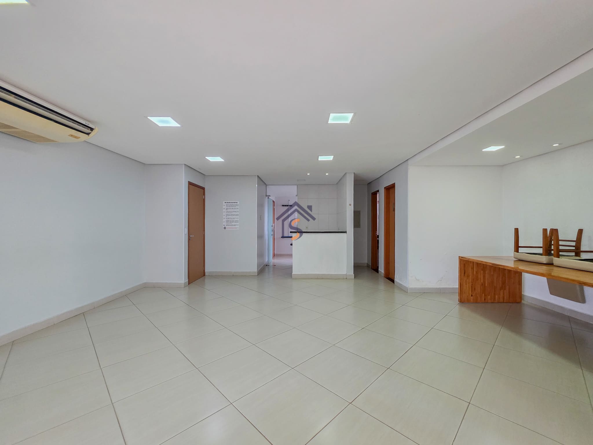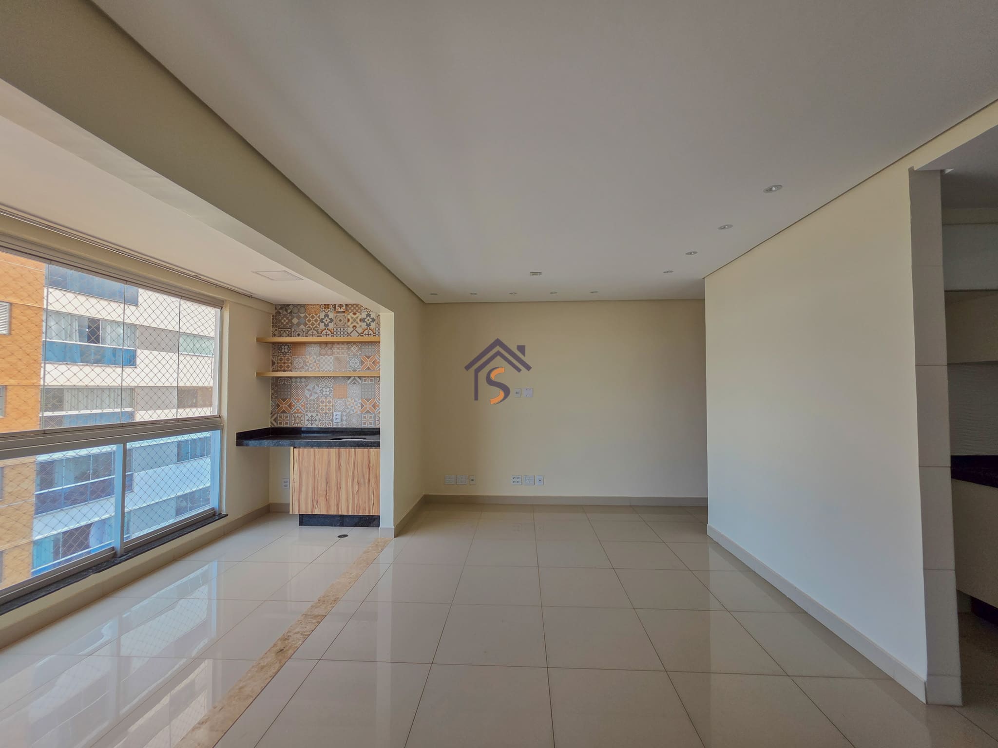 Apartamento com três quartos, sendo uma suíte plena e duas suítes americanas, sala de estar integrada à sala de jantar, cortina de vidro, cozinha, lavabo, área de serviço com armários e duas vagas de garagem cobertas.