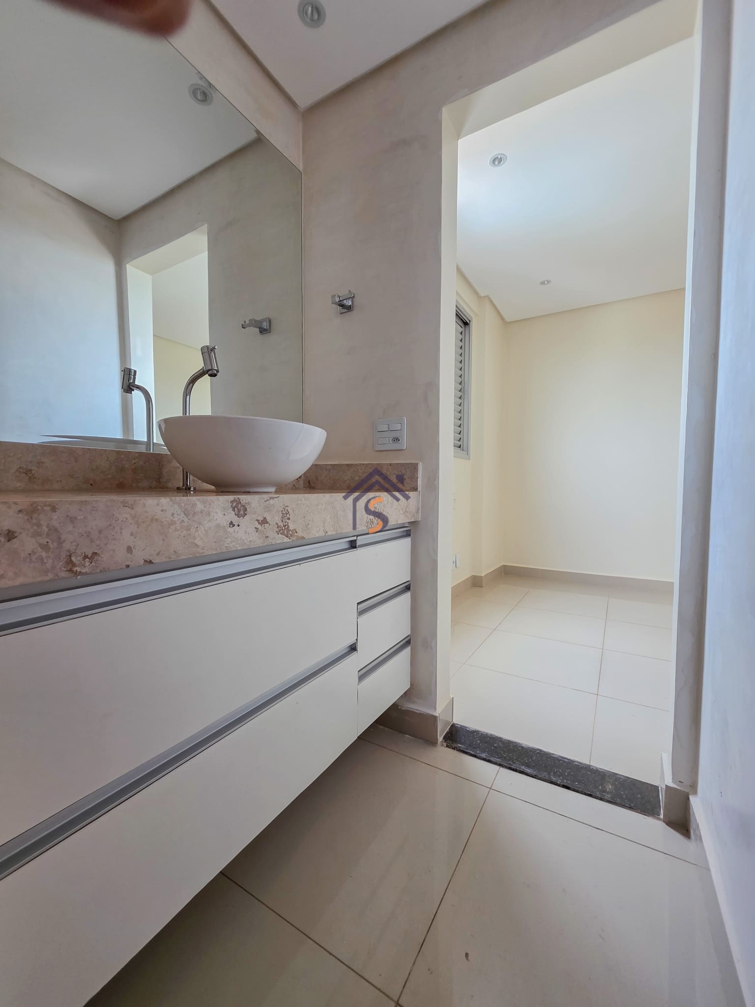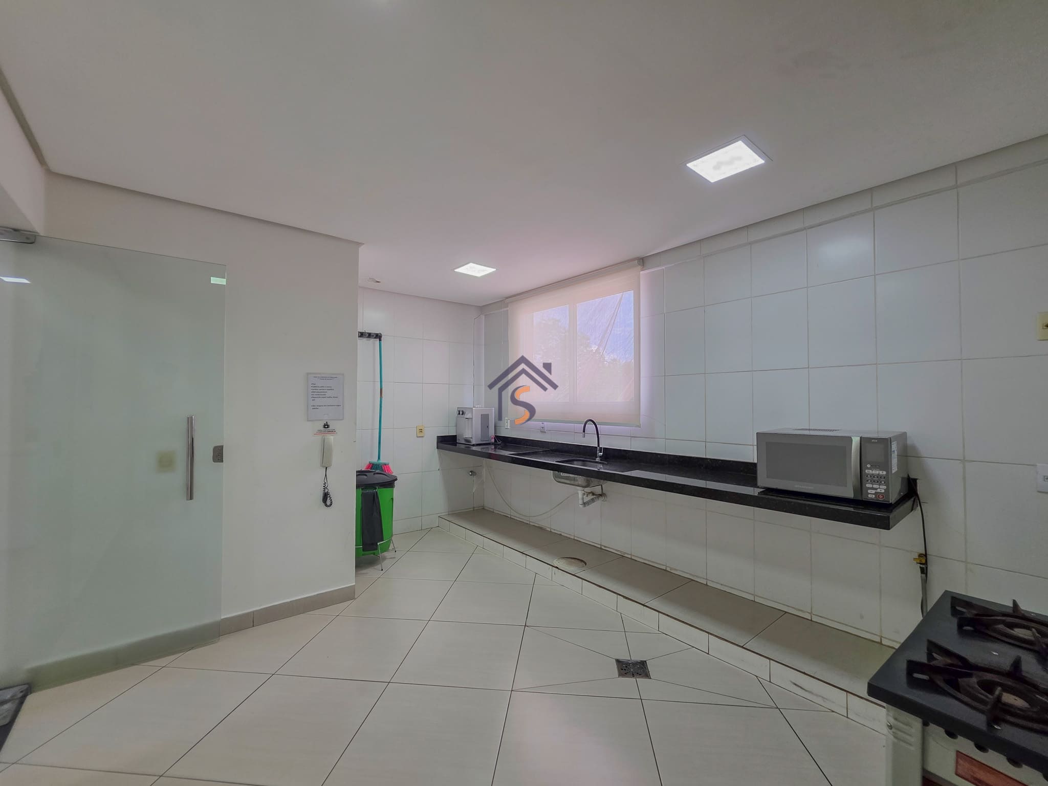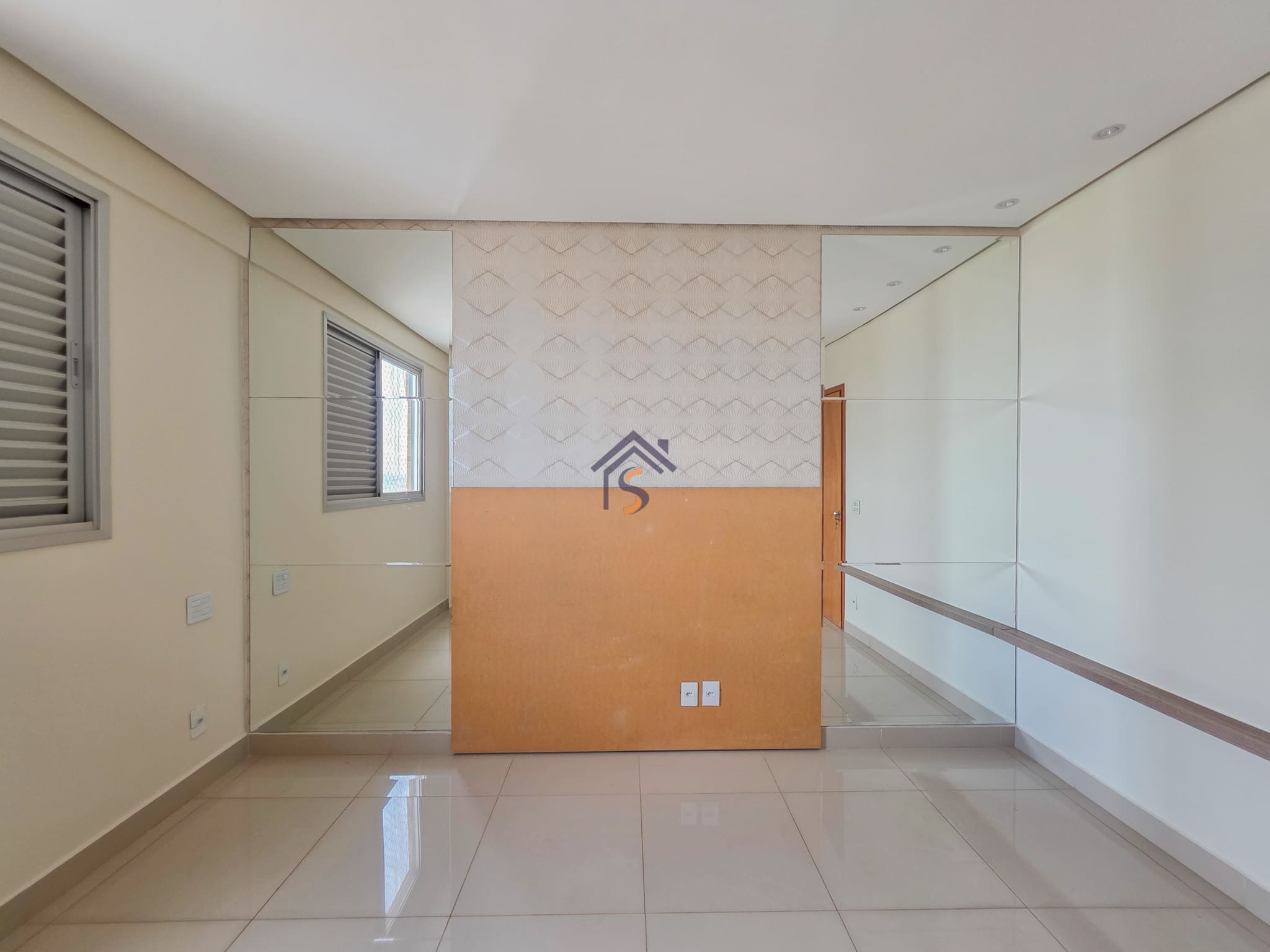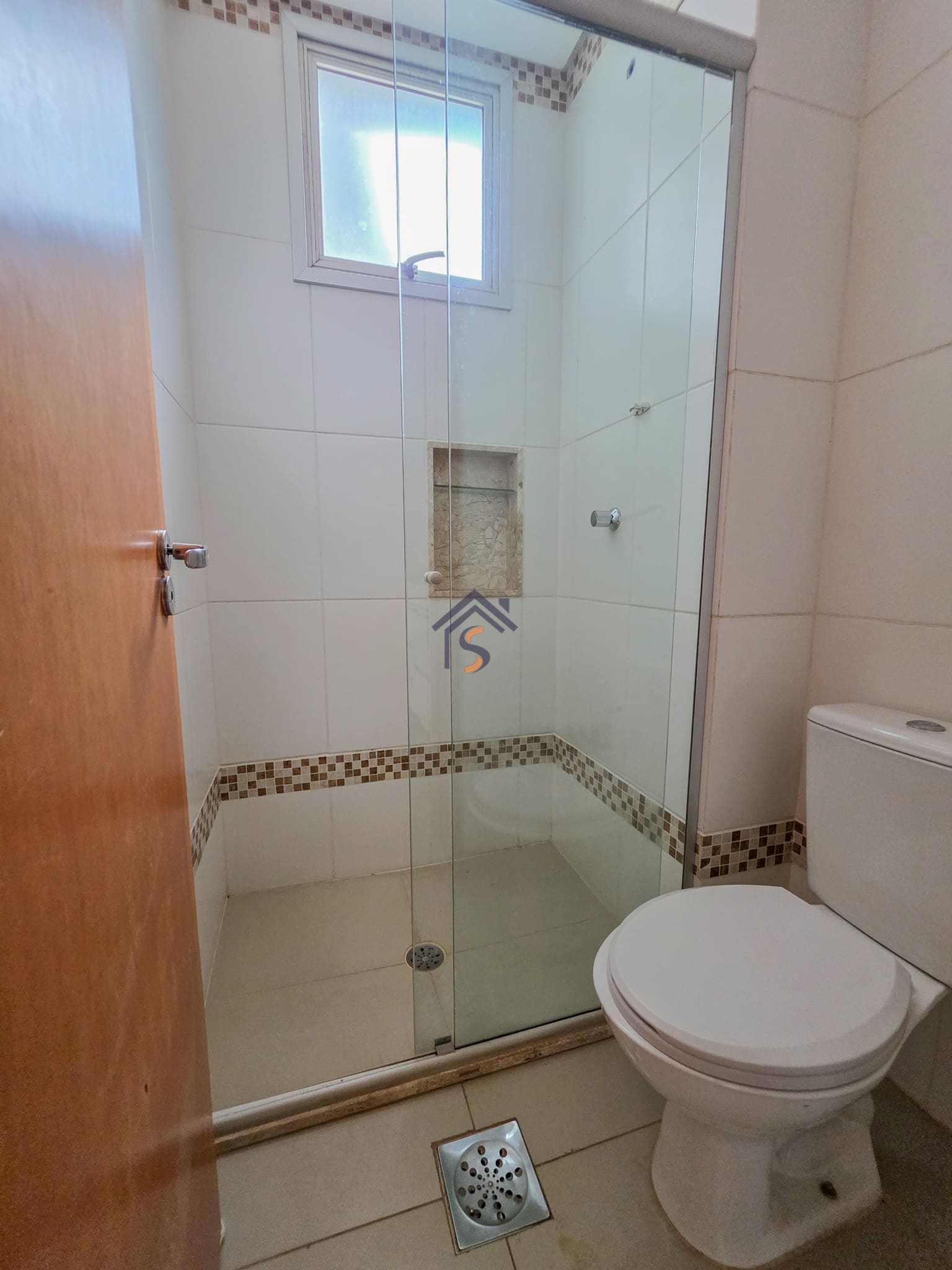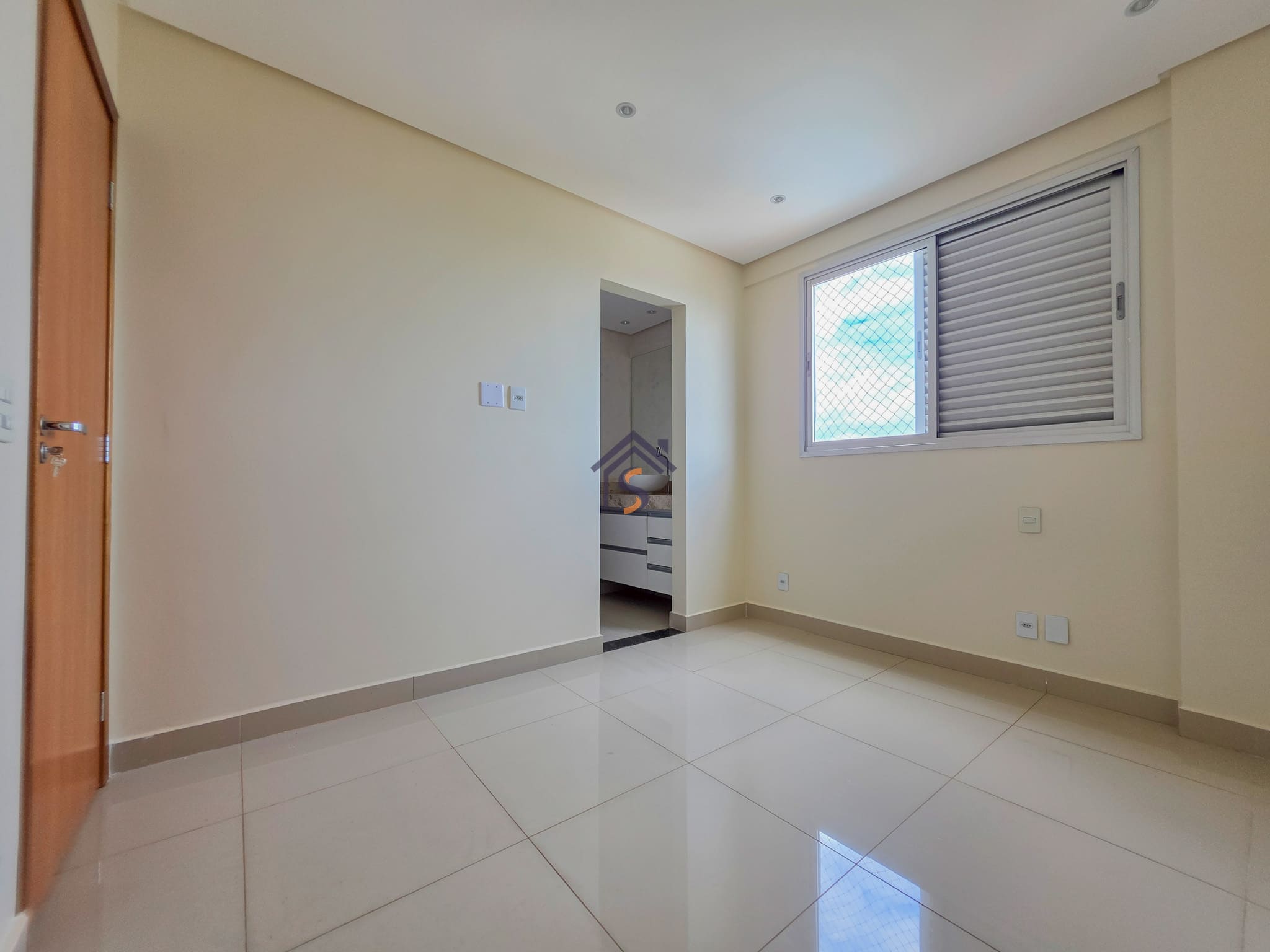 Apartamento com três quartos, sendo uma suíte plena e duas suítes americanas, sala de estar integrada à sala de jantar, cortina de vidro, cozinha, lavabo, área de serviço com armários e duas vagas de garagem cobertas.