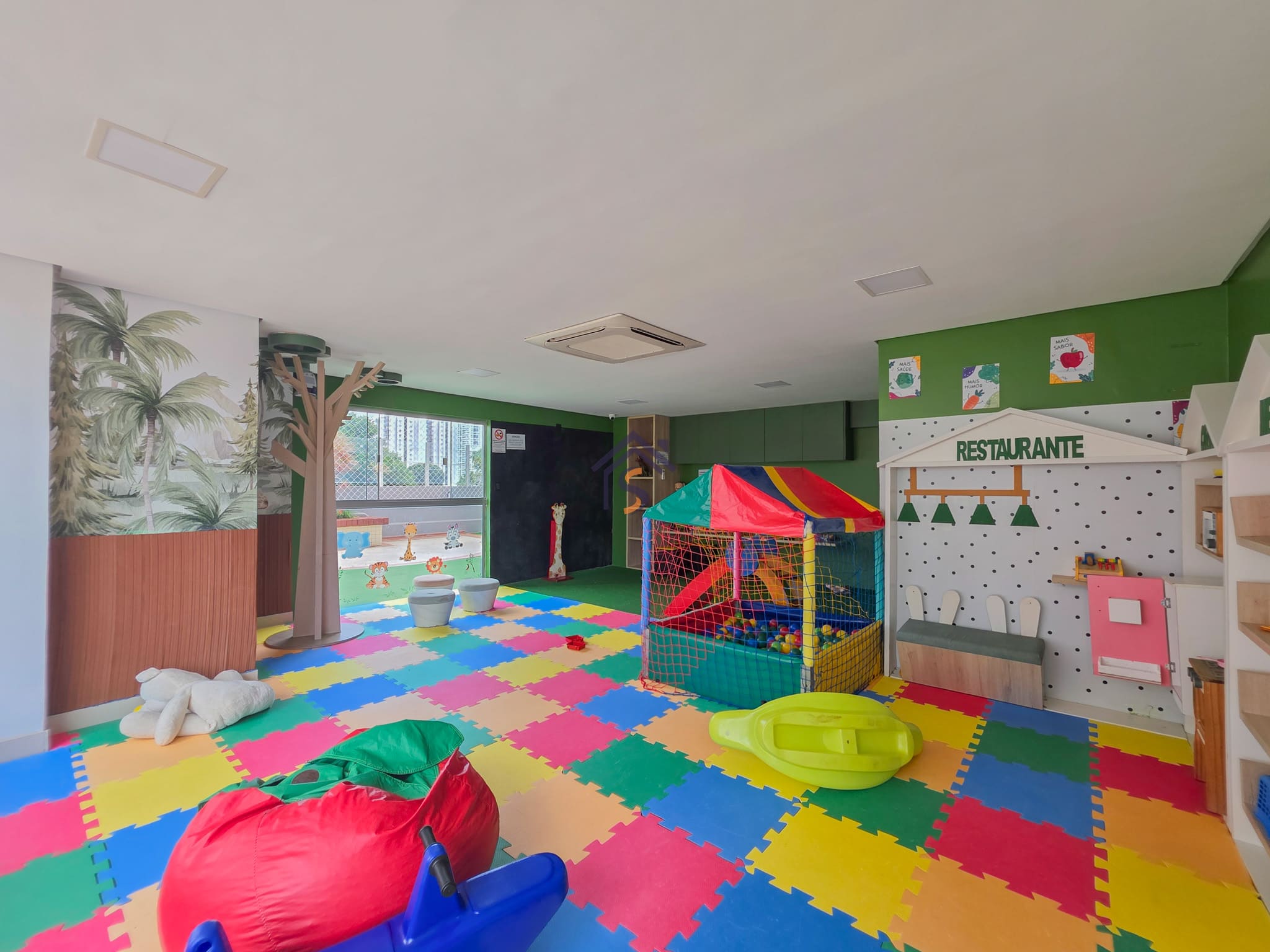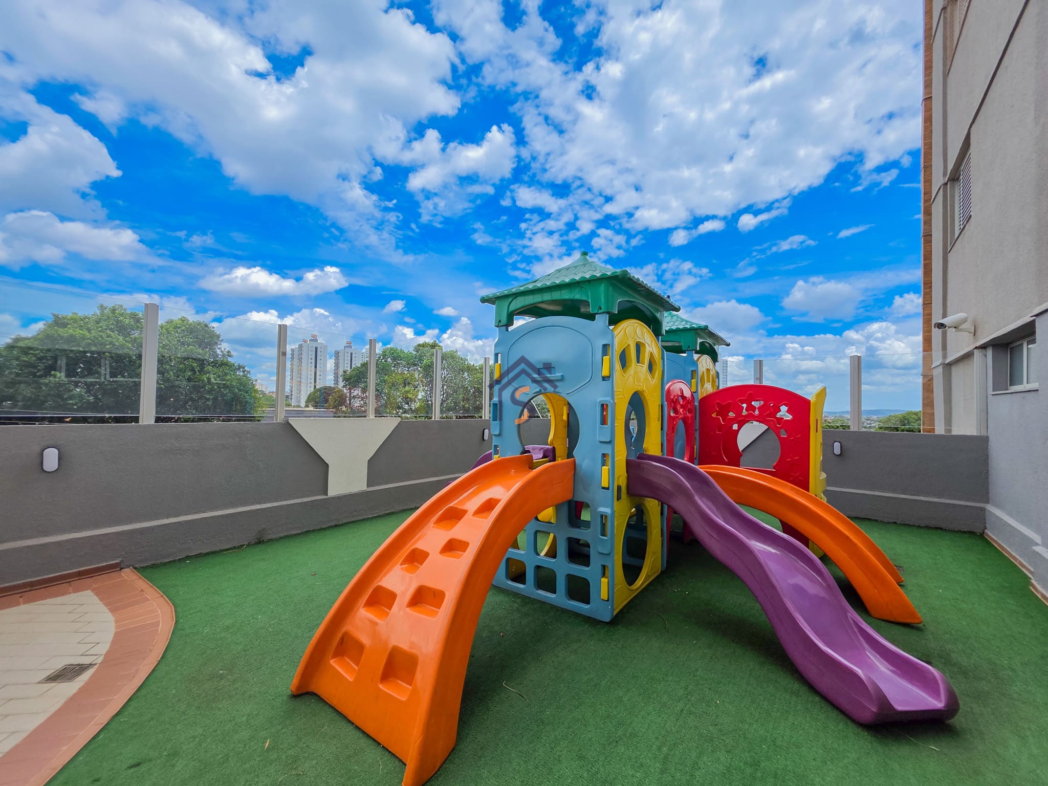 Área de lazer com salão de festa adulto e infantil, churrasqueira, sauna, hidromassagem, piscina adulta e infantil, academia, playground, brinquedoteca, quadra poliesportiva, espaço mulher e sala de jogos.