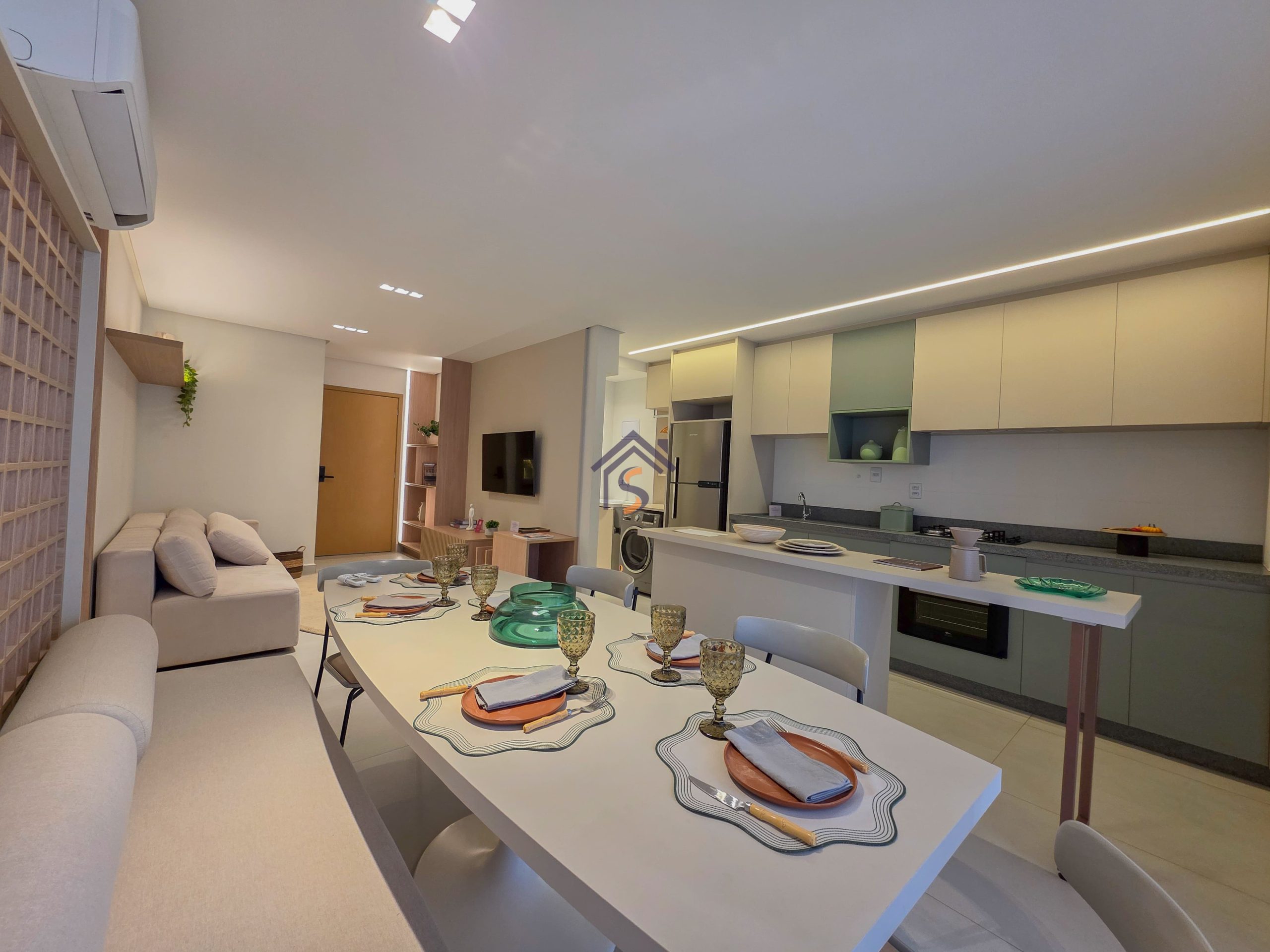 Novo apartamento de alto padrão, com três suítes, sendo duas suítes americanas, uma suíte máster com espaço para closet, lavabo, sala de estar integrada à sala de jantar, sacada, cozinha, área de serviço e duas vagas de garagem coberta.
