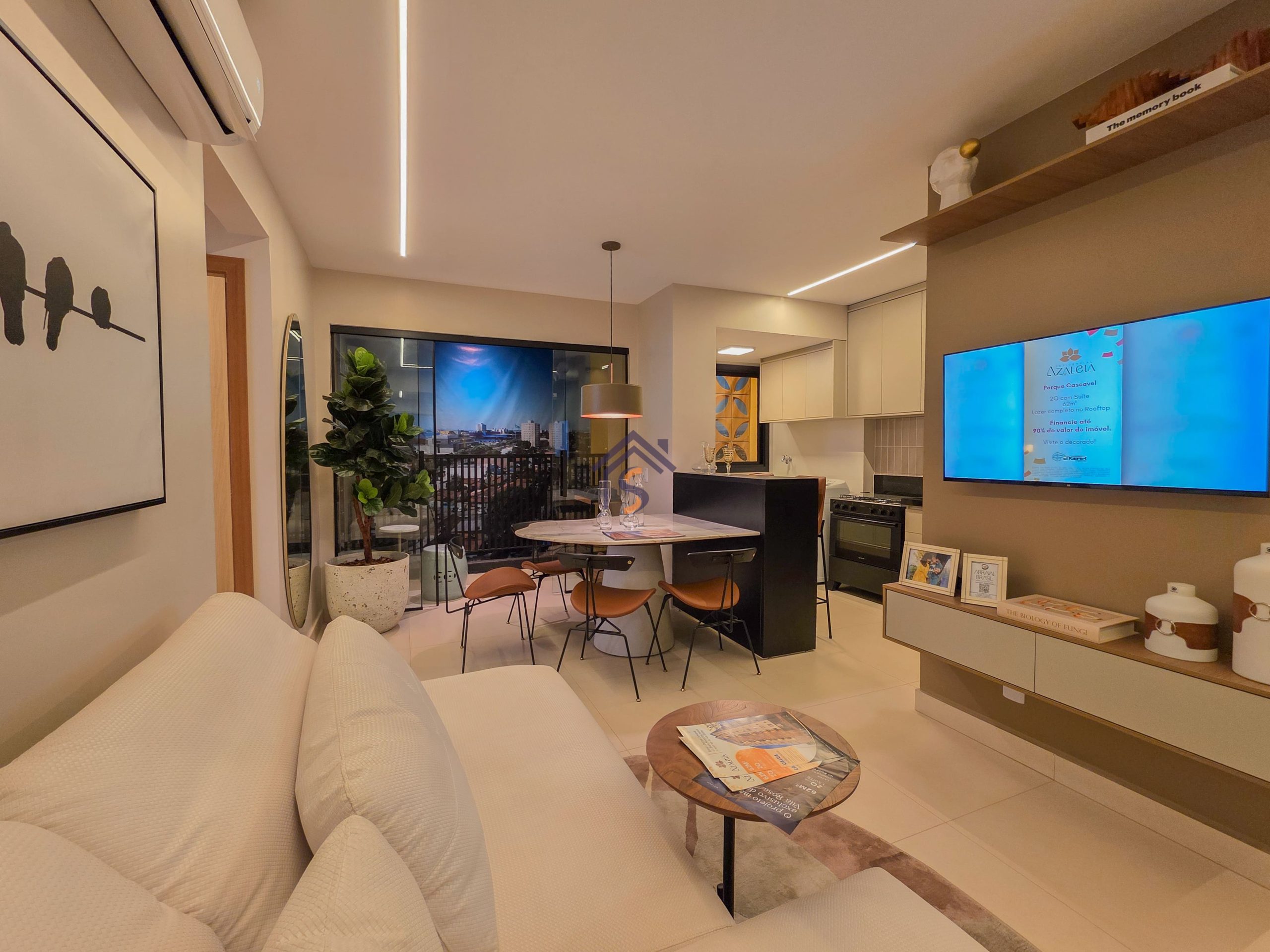 Novo apartamento de alto padrão com dois quartos, sendo uma suíte máster com espaço para closet, banheiro social, sala de estar integrada à sala de jantar e sacada, cozinha, área de serviço e uma vaga de garagem coberta.