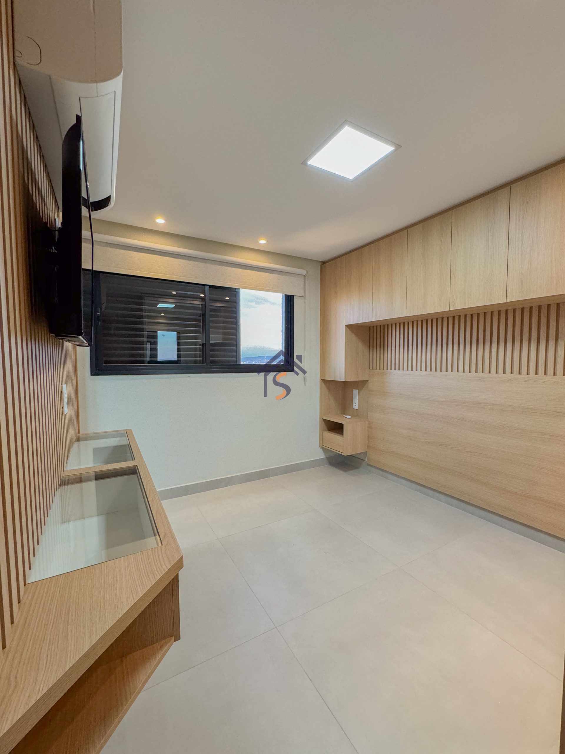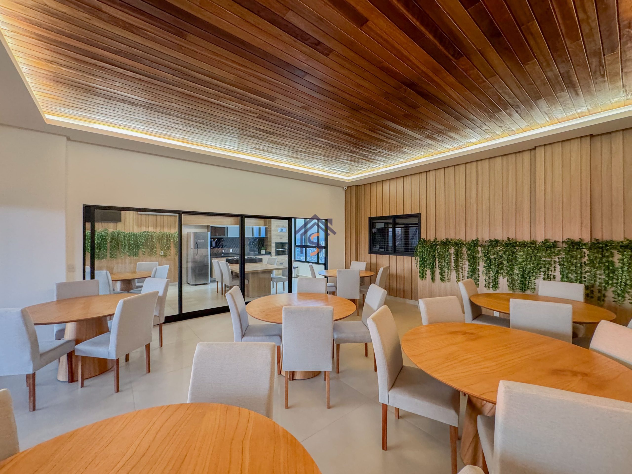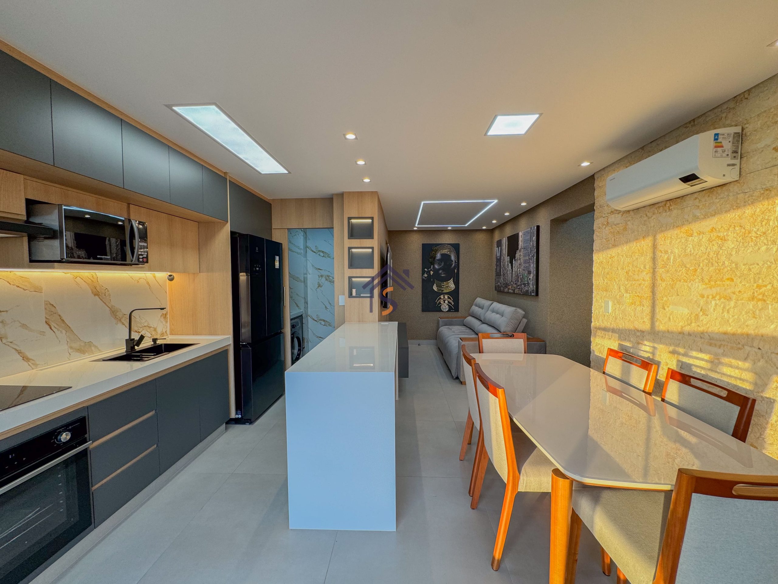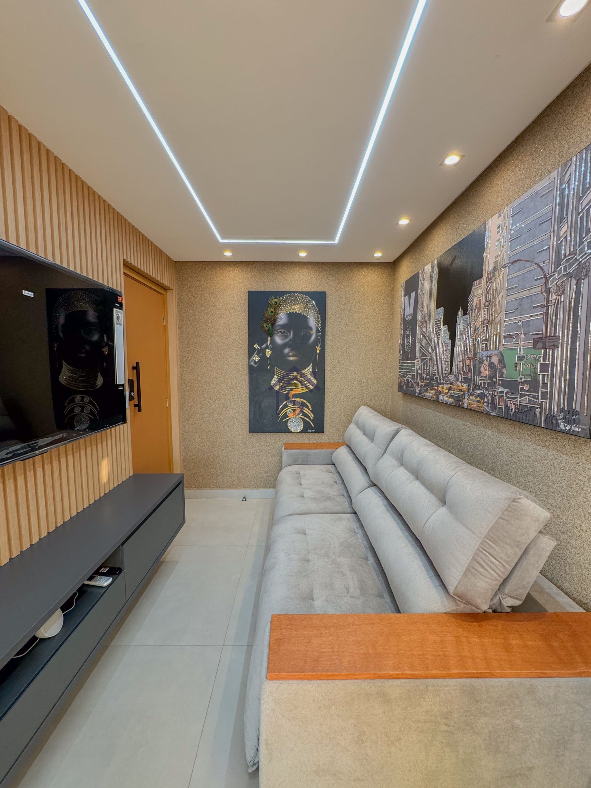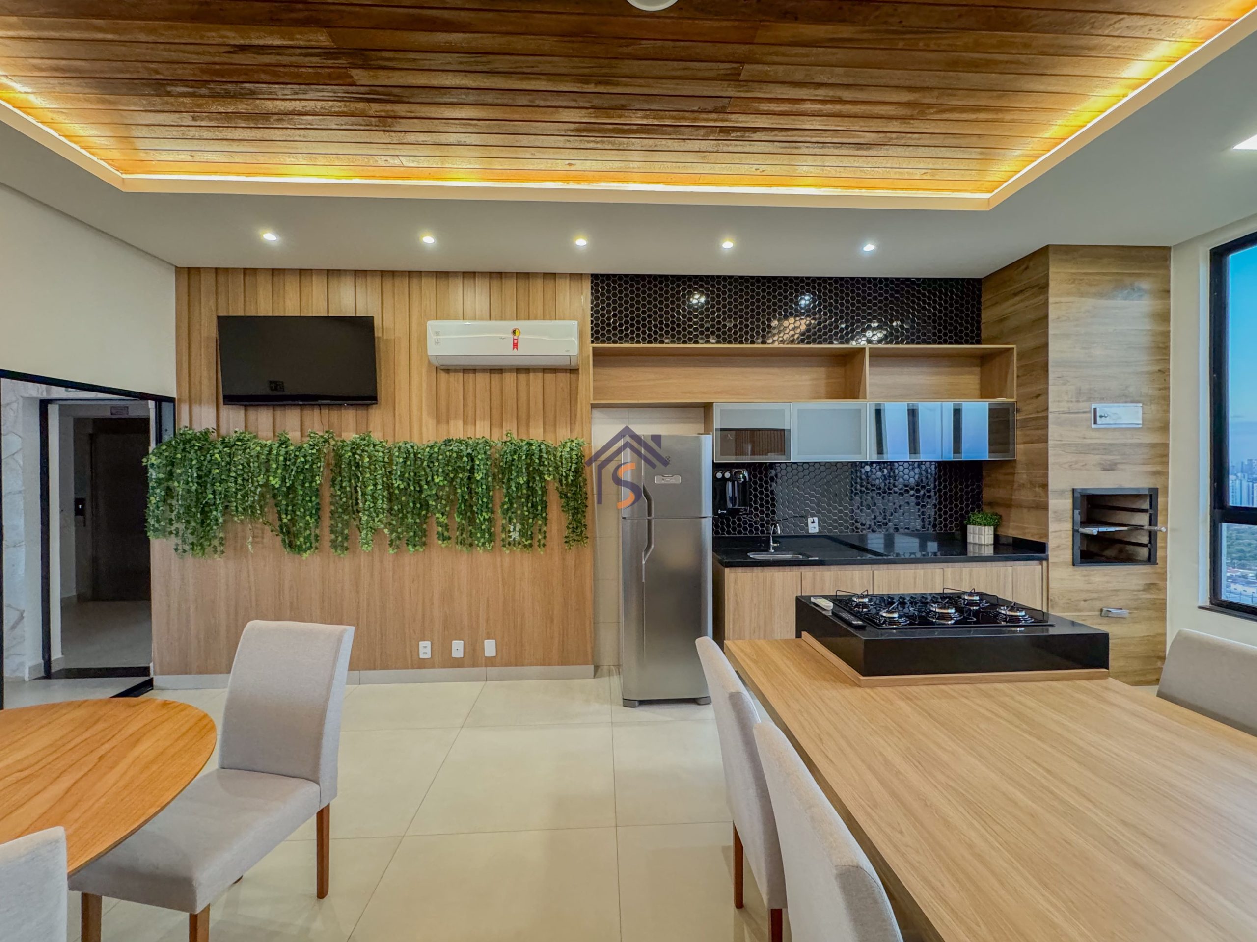Novo apartamento de alto padrão com três quartos, sendo uma suíte máster, dois quartos tipo solteiro, banheiro social, sala de estar integrada à sala de jantar, cozinha e área de serviço, escaninho, além de churrasqueira a carvão com exaustão mecânica e uma vaga de garagem coberta.