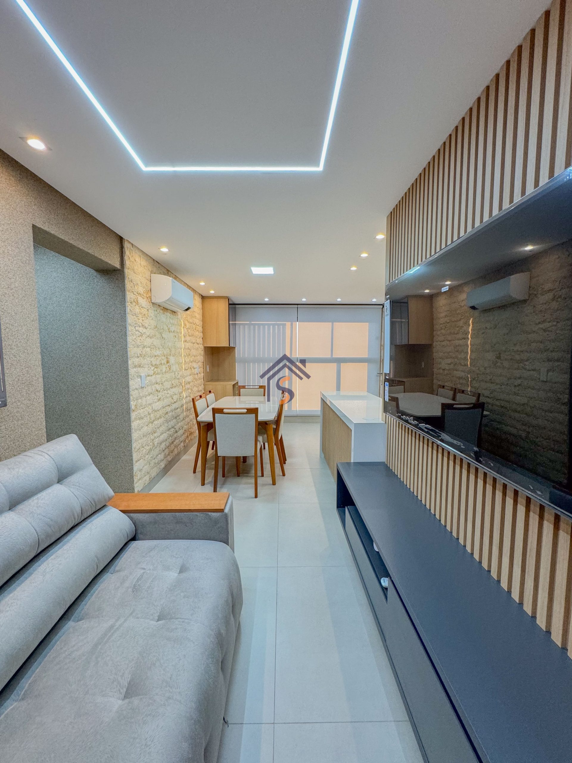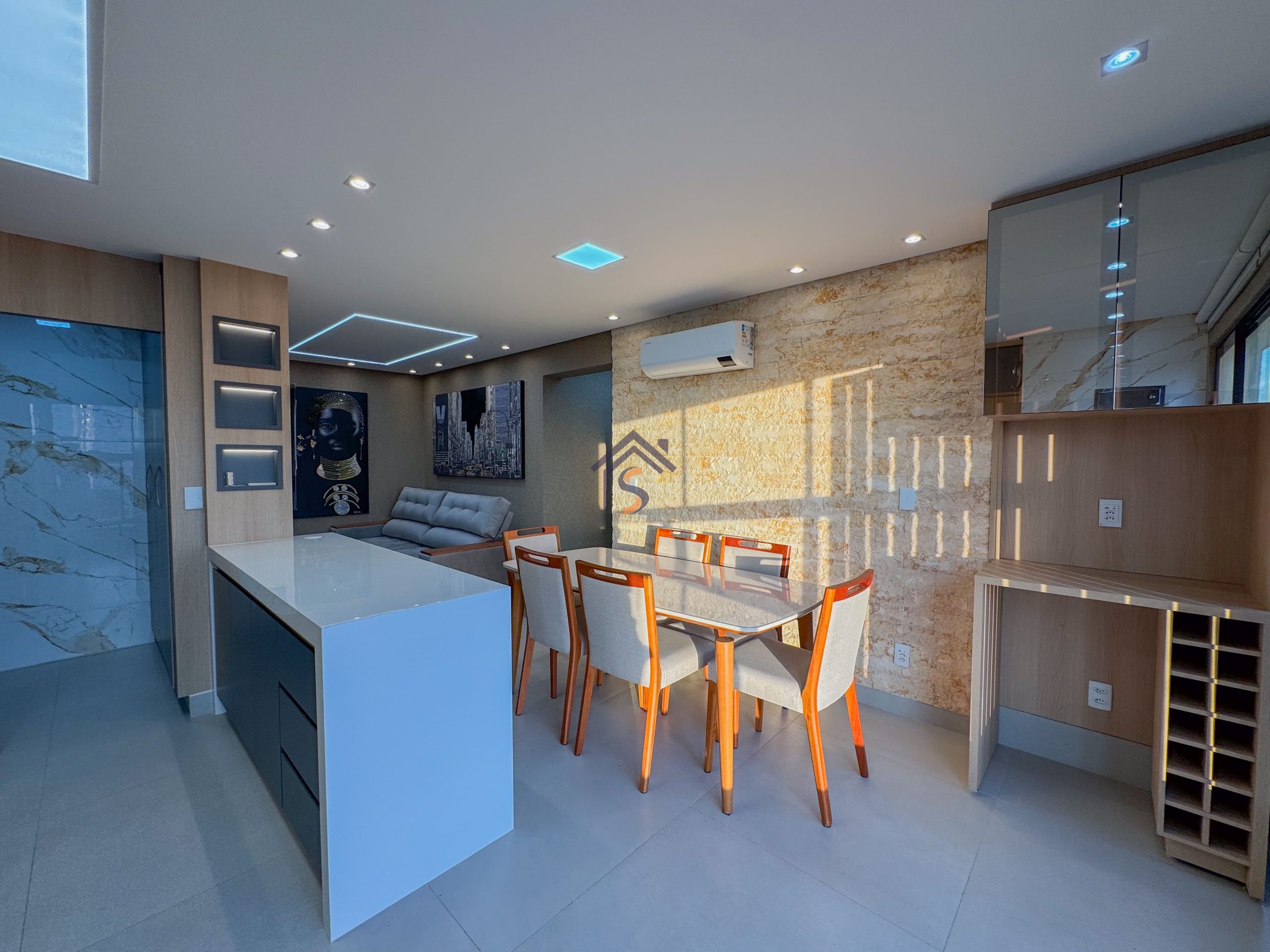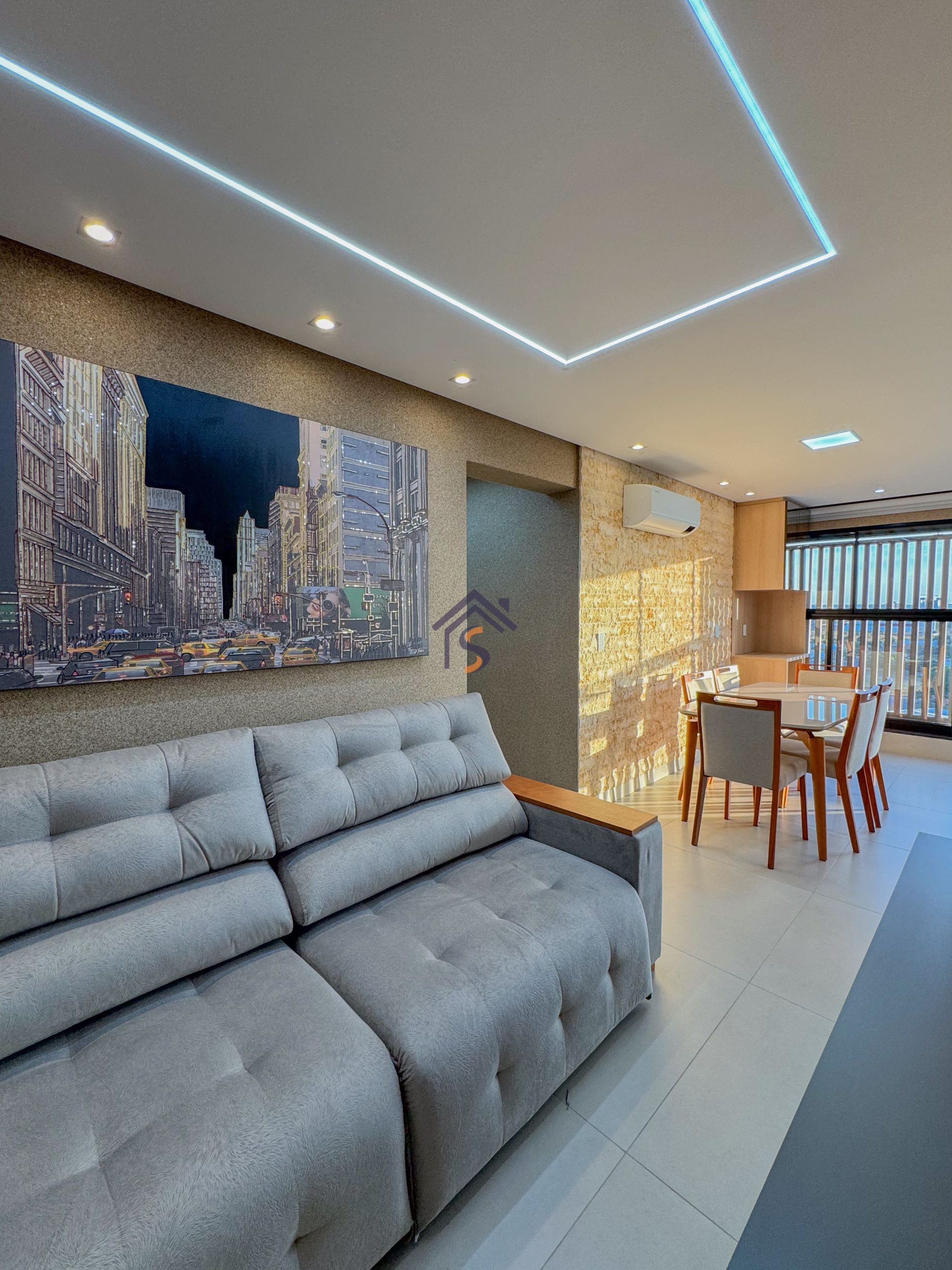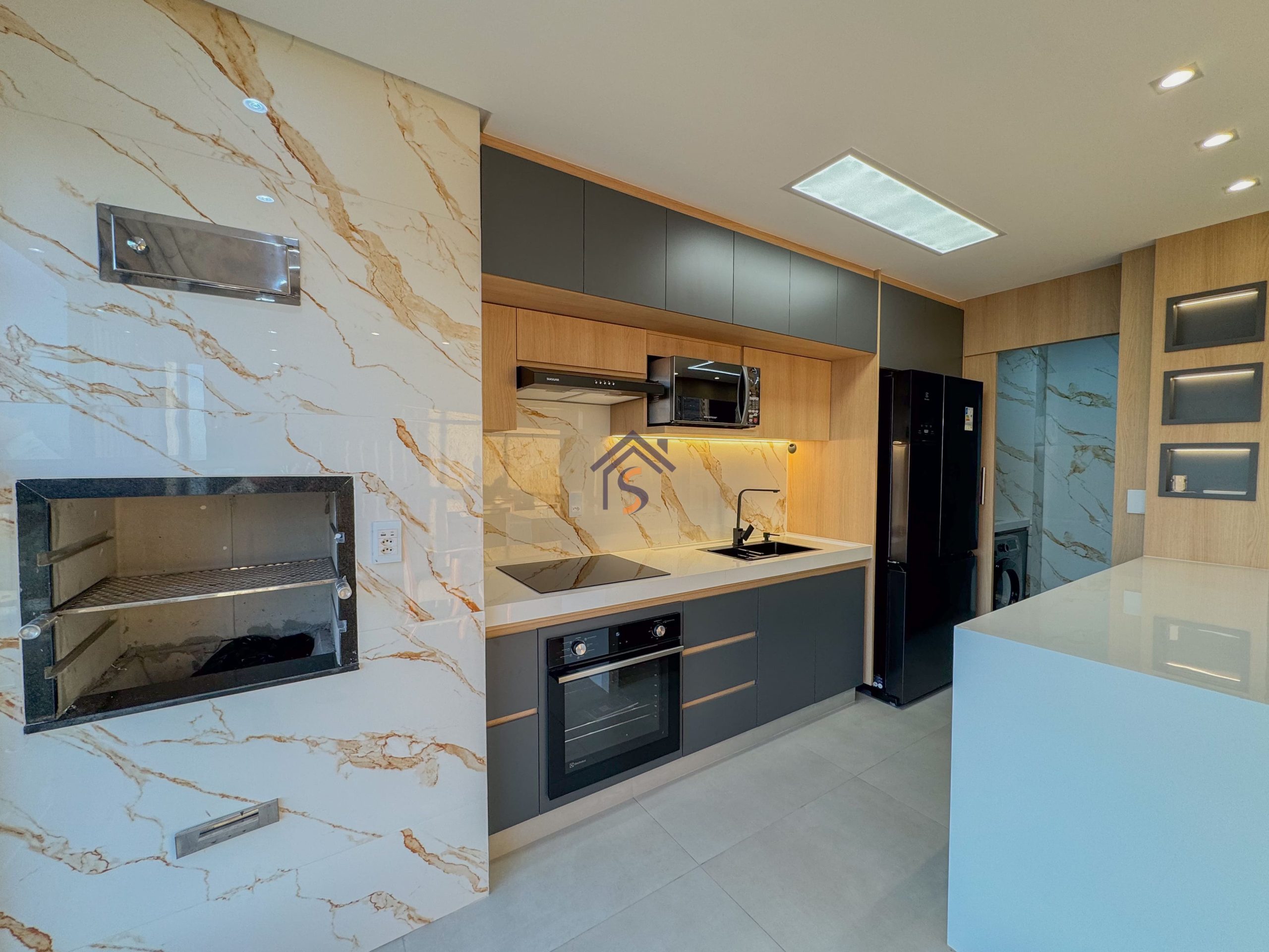 Novo apartamento de alto padrão com três quartos, sendo uma suíte máster, dois quartos tipo solteiro, banheiro social, sala de estar integrada à sala de jantar, cozinha e área de serviço, escaninho, além de churrasqueira a carvão com exaustão mecânica e uma vaga de garagem coberta.