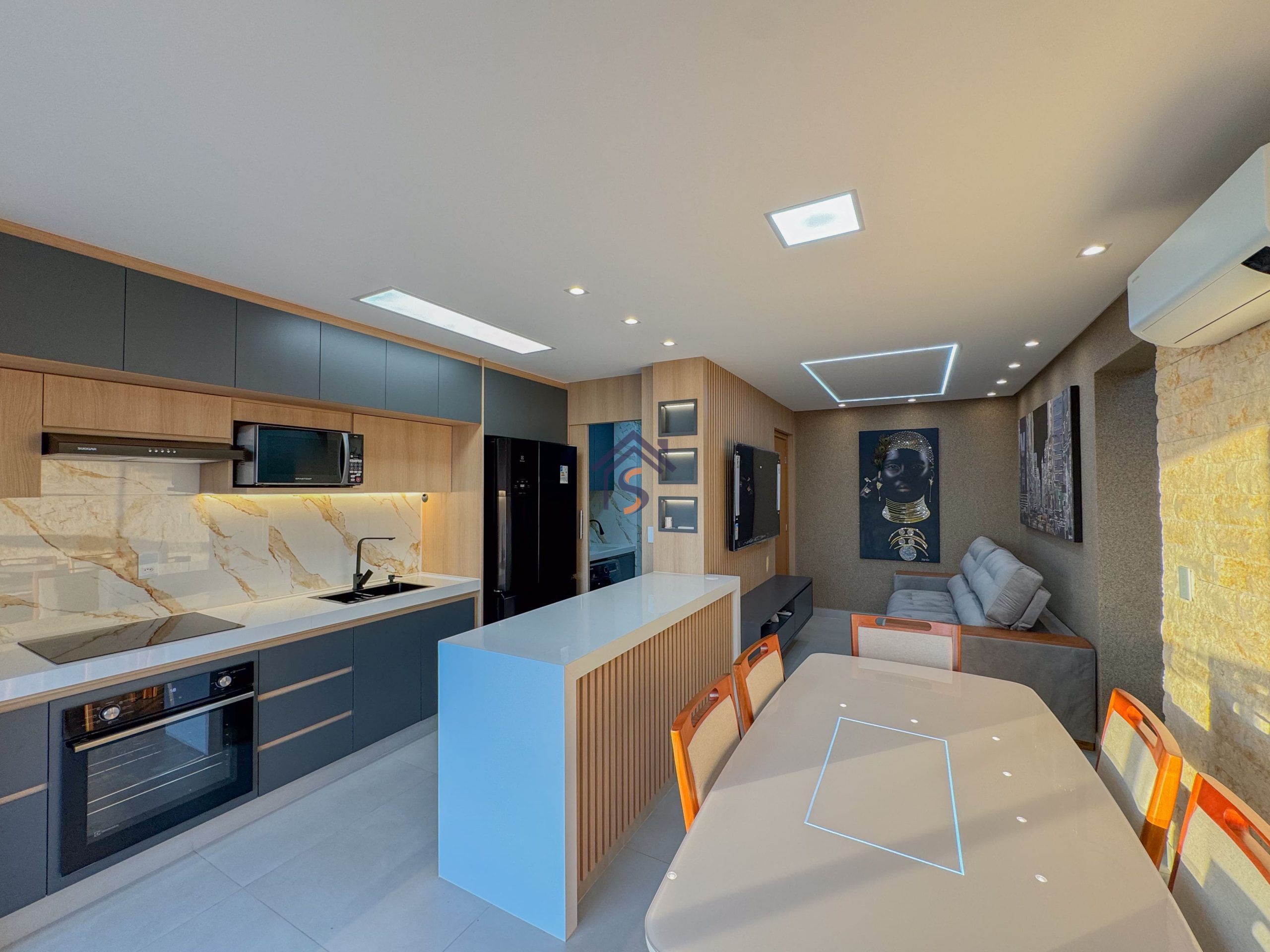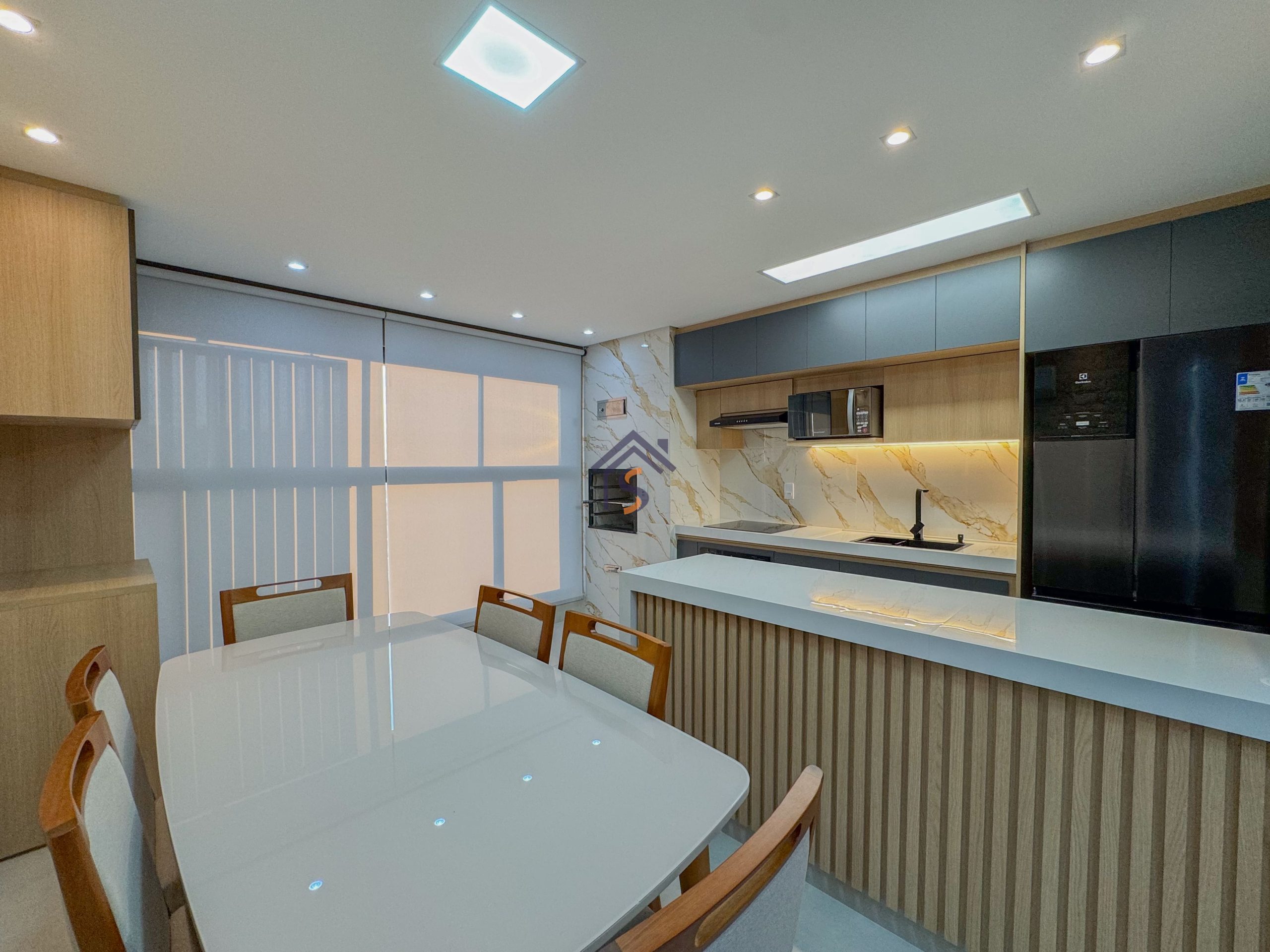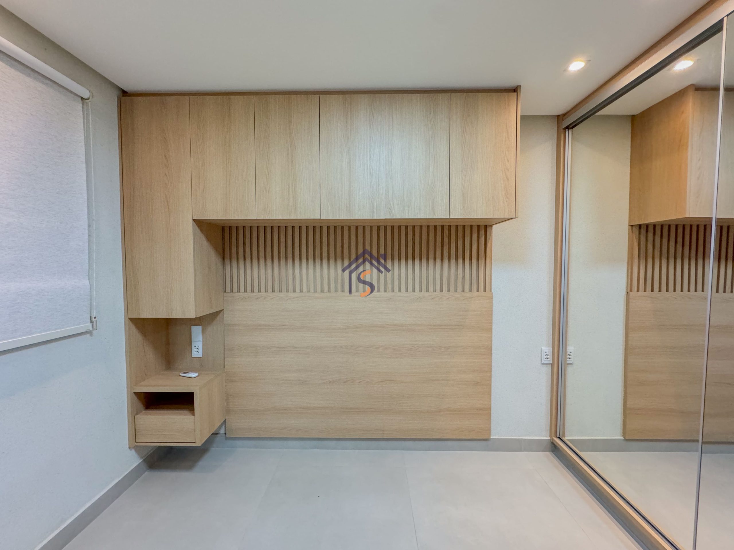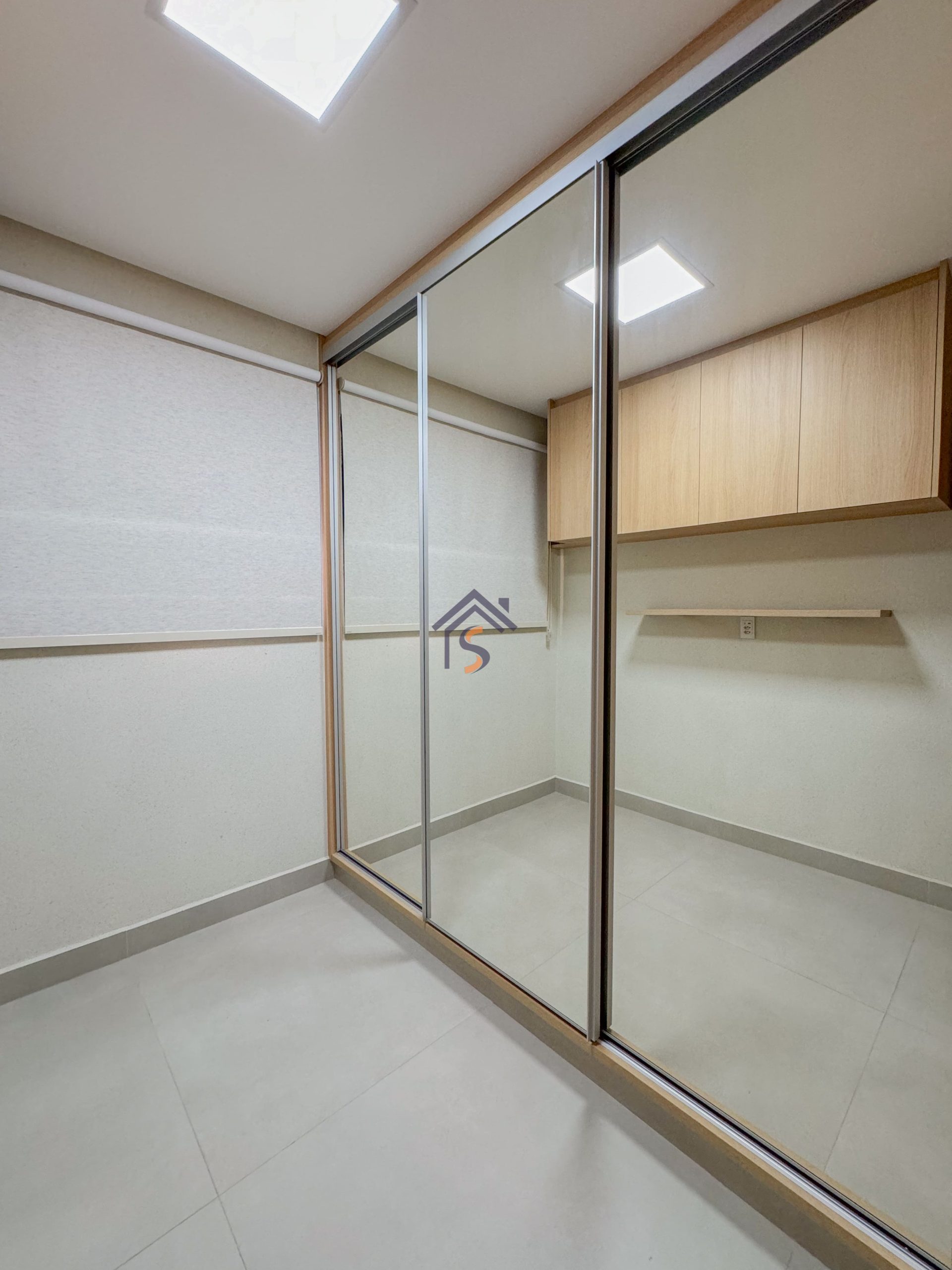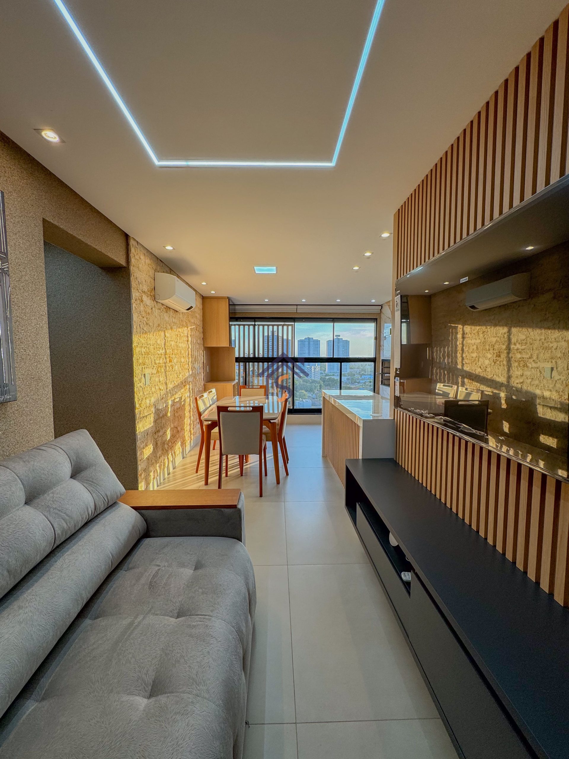 Novo apartamento de alto padrão com três quartos, sendo uma suíte máster, dois quartos tipo solteiro, banheiro social, sala de estar integrada à sala de jantar, cozinha e área de serviço, escaninho, além de churrasqueira a carvão com exaustão mecânica e uma vaga de garagem coberta.