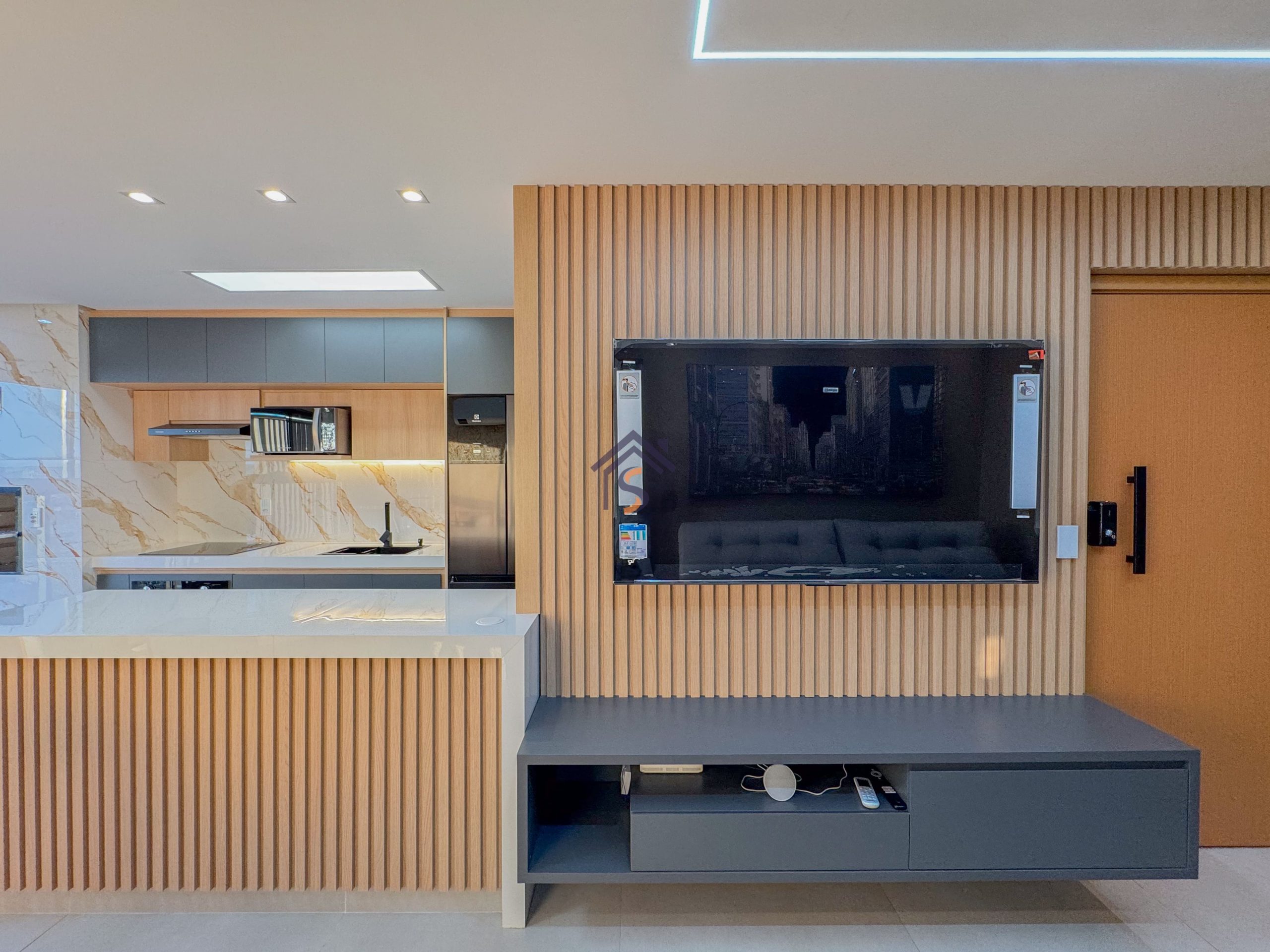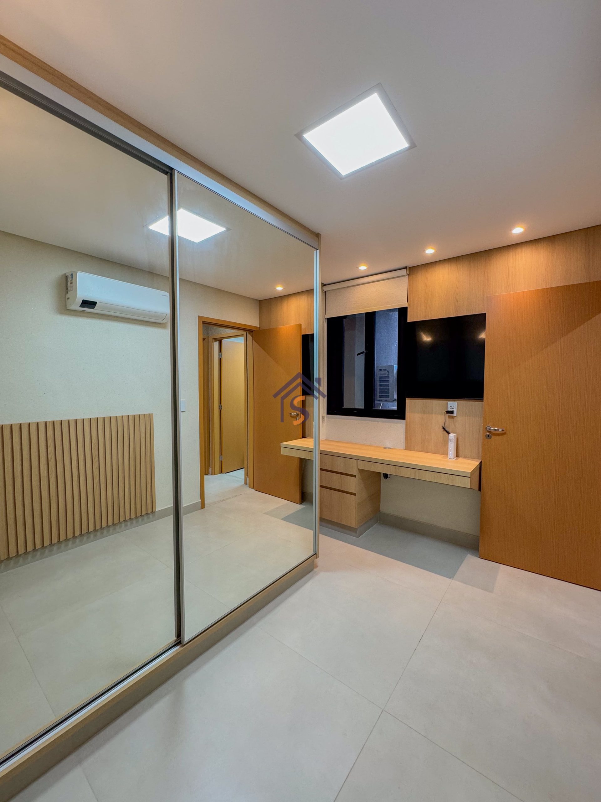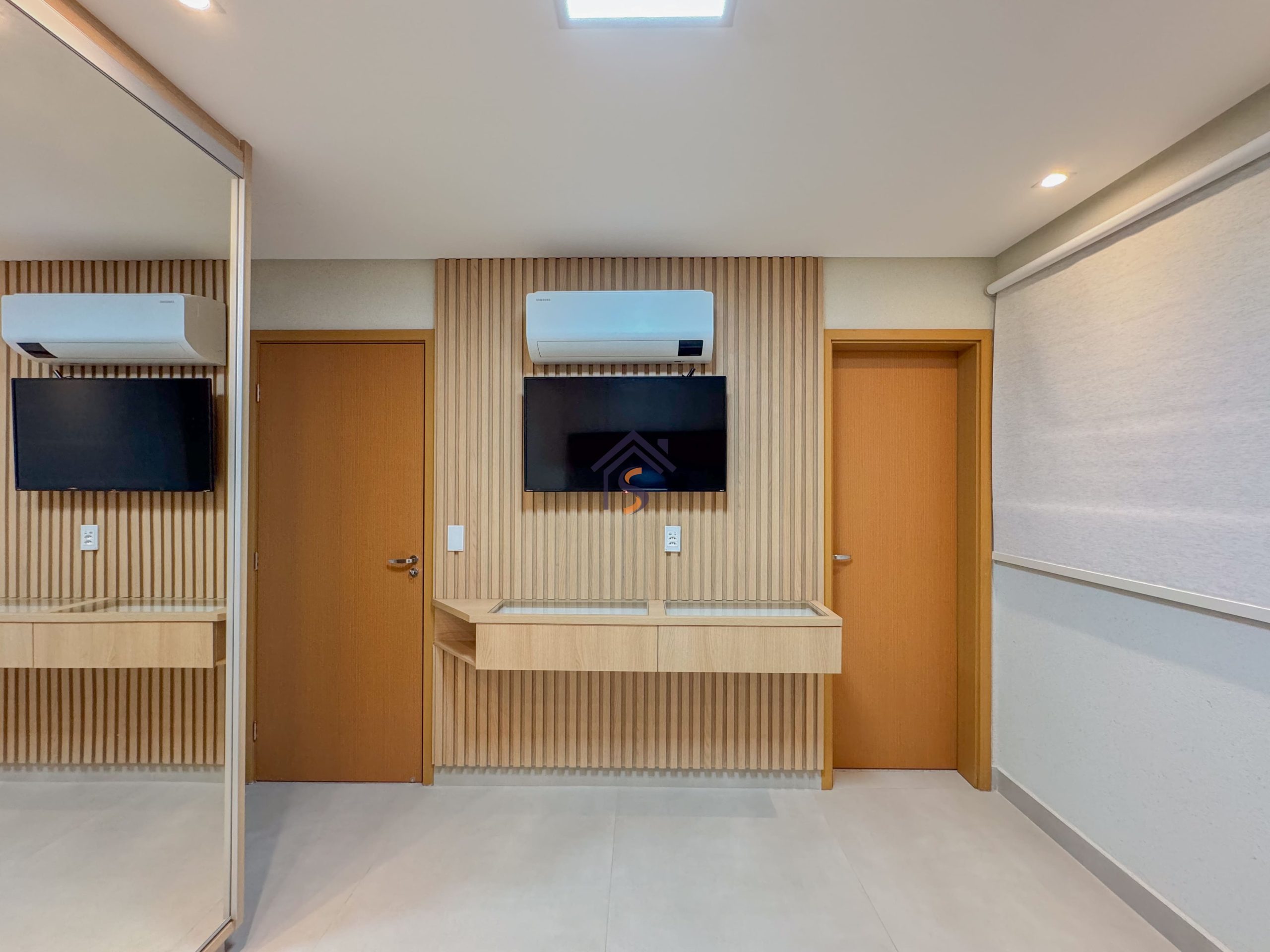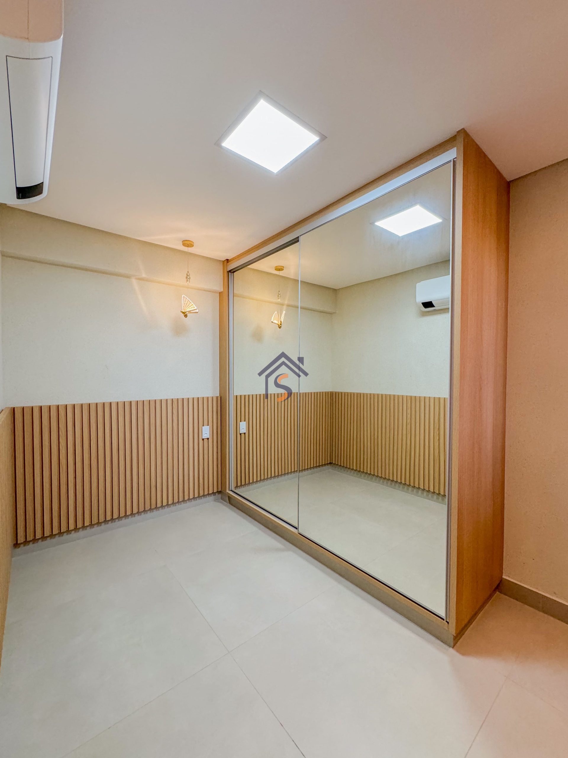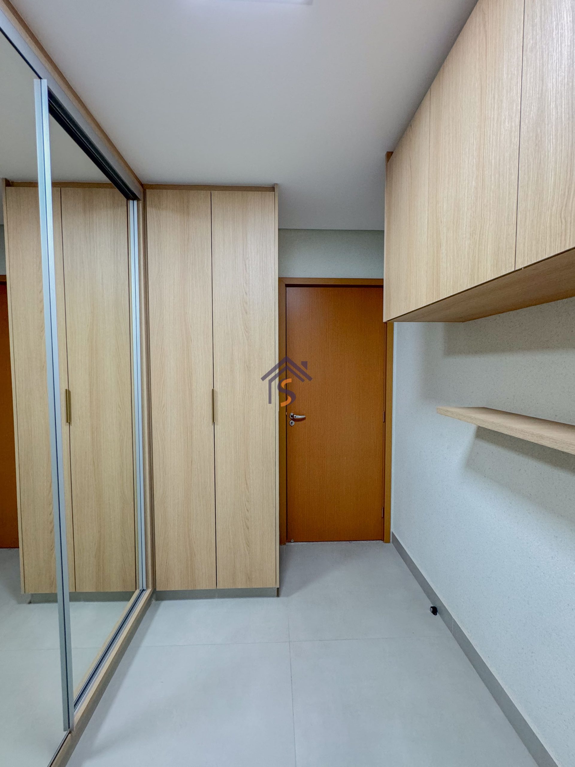 Novo apartamento de alto padrão com três quartos, sendo uma suíte máster, dois quartos tipo solteiro, banheiro social, sala de estar integrada à sala de jantar, cozinha e área de serviço, escaninho, além de churrasqueira a carvão com exaustão mecânica e uma vaga de garagem coberta.