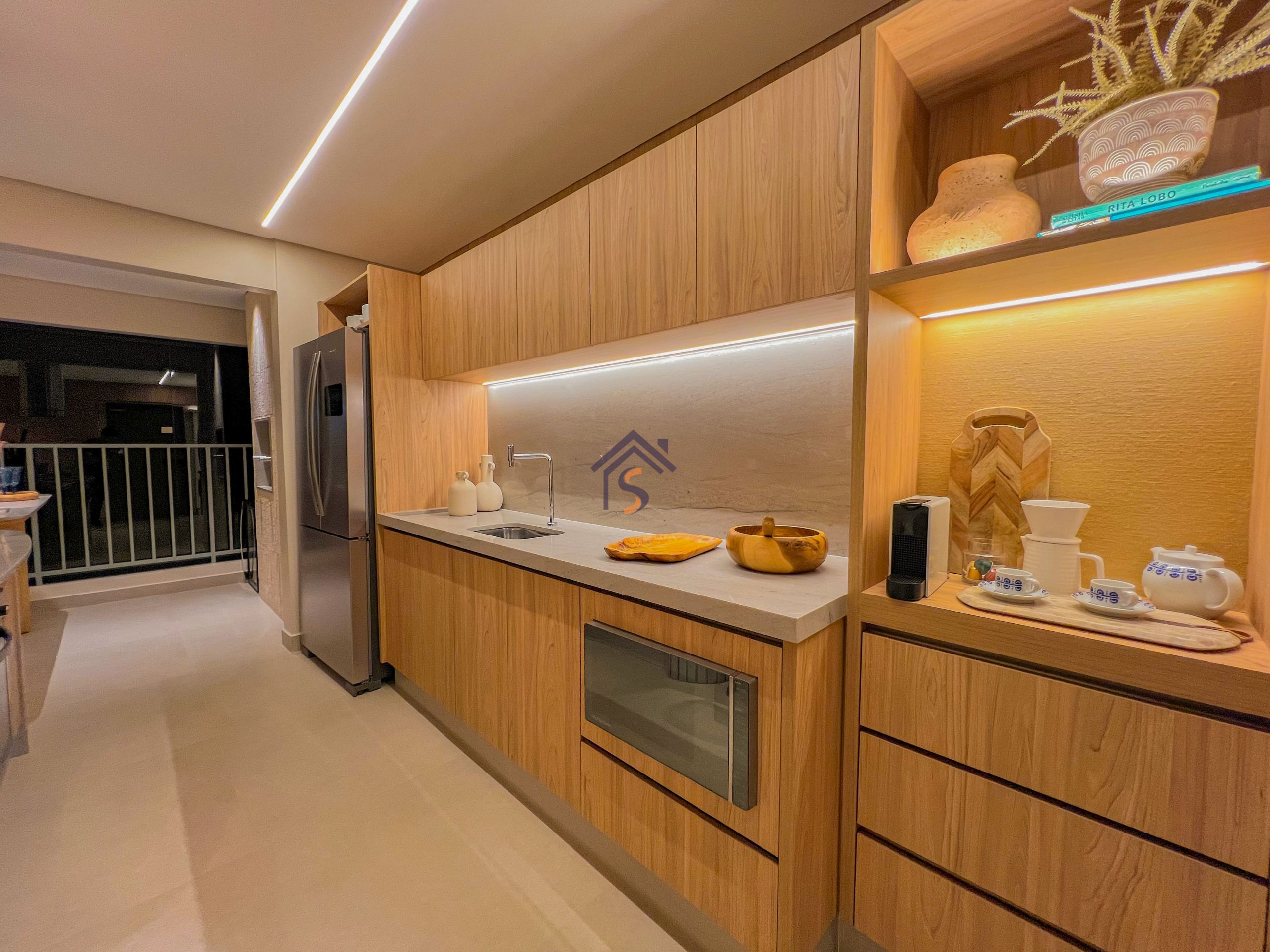 Novo apartamento de alto padrão, com três suítes, sendo uma suíte master com espaço para closet, lavabo, sala de estar integrada à sala de jantar e sacada, cozinha, área de serviço e duas vagas de garagens cobertas.