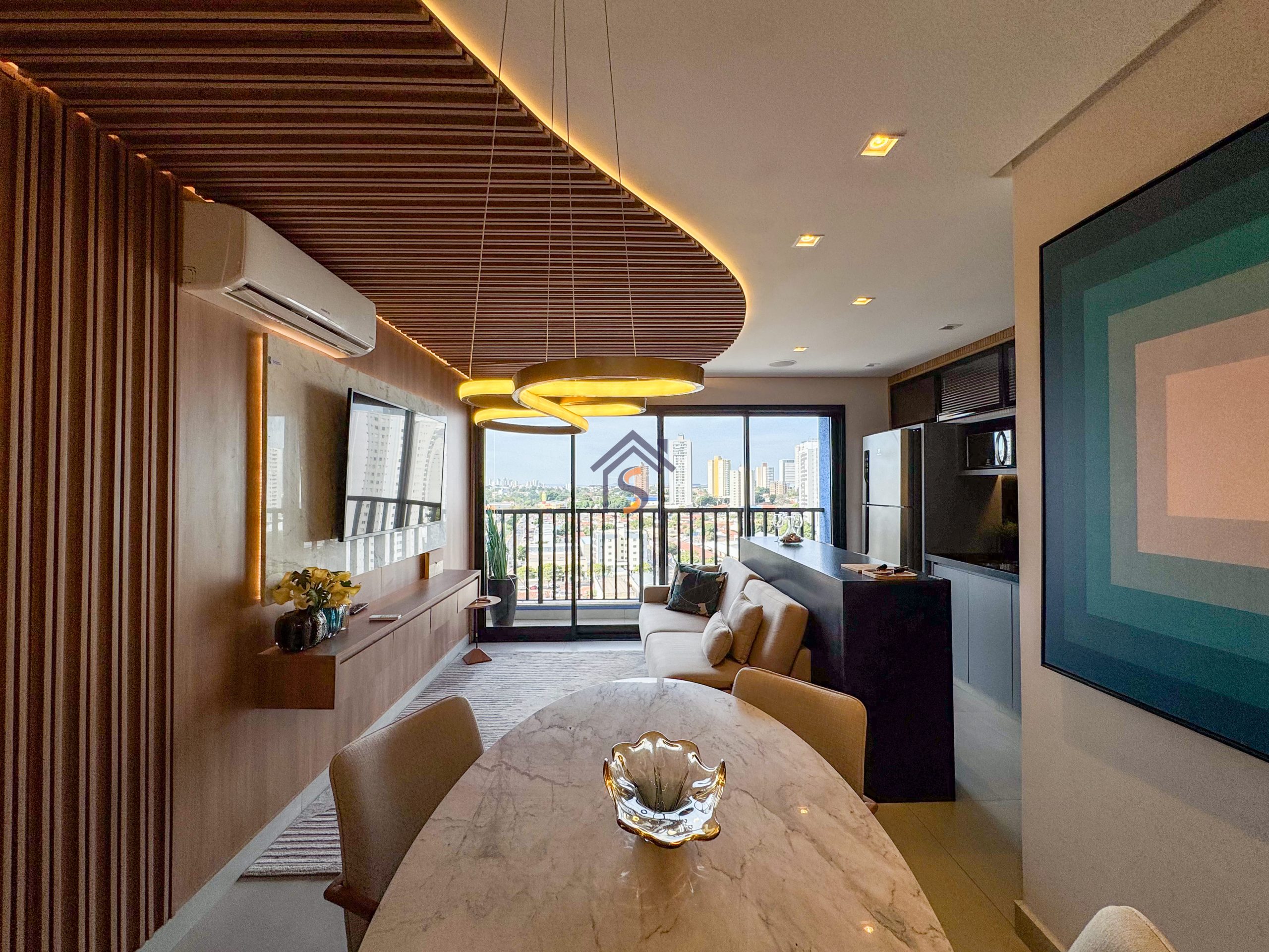 Novo Apartamento de alto padrão com três suítes, sendo uma suíte máster, sala de estar e jantar integradas com sacada, lavabo, cozinha americana, área de serviço e duas vagas de garagem cobertas.