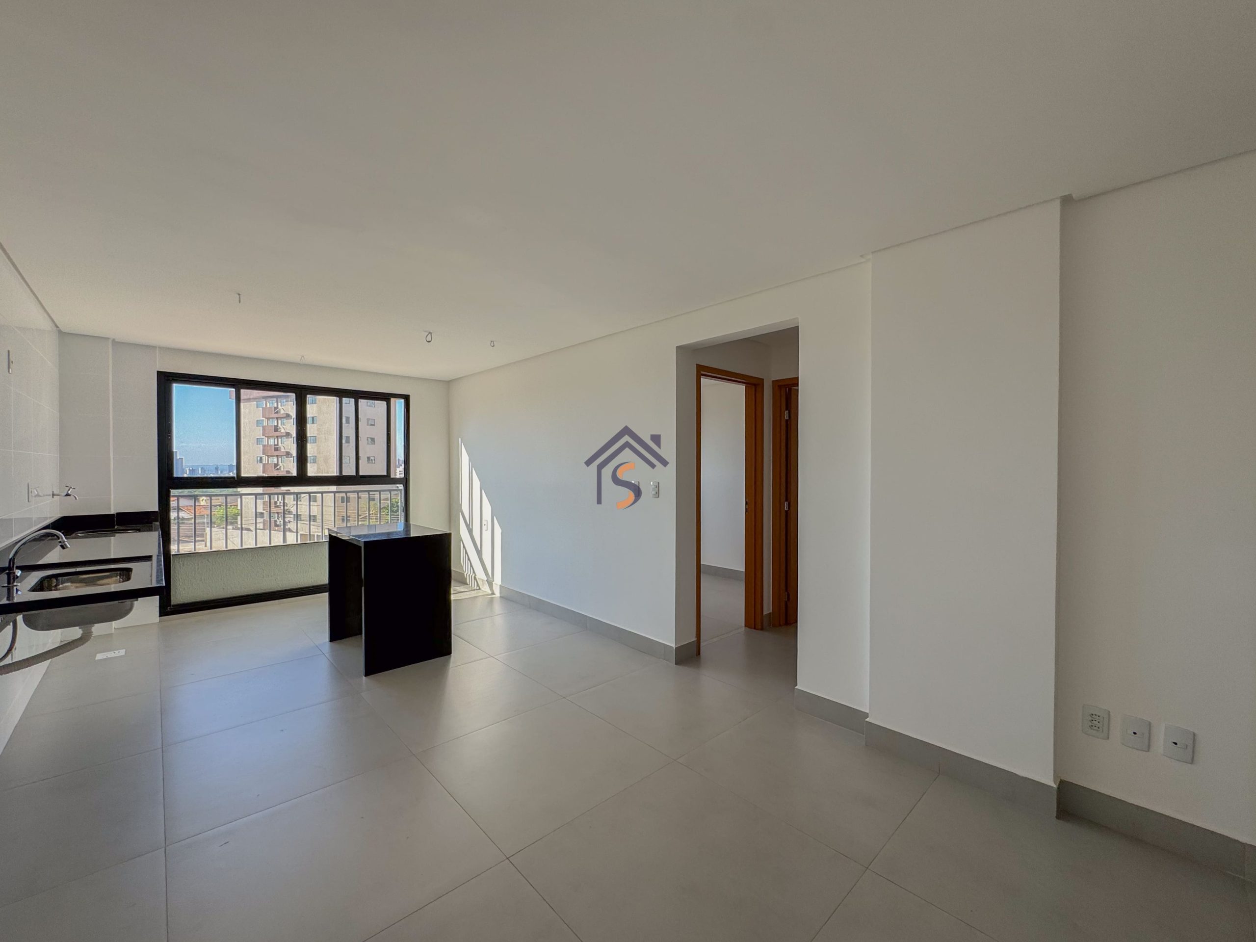 Novo apartamento de alto padrão com dois quartos, sendo uma suíte máster, sala de estar e jantar, banheiro social, cozinha espaçosa, área de serviço e uma vaga de garagem coberta.
