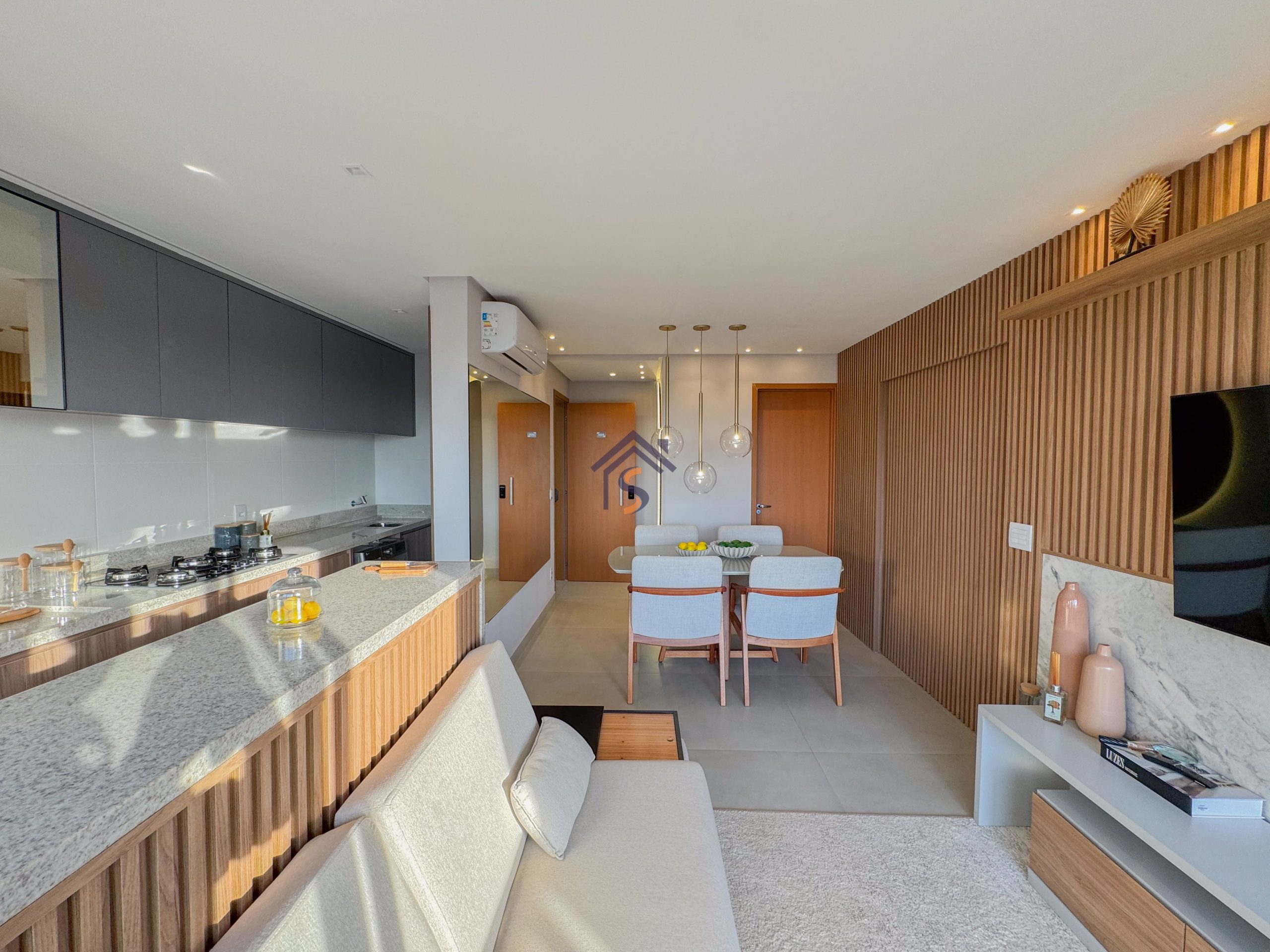 Novo Apartamento de alto padrão com duas suítes, sendo uma suíte máster com closet, sala de estar e jantar integradas com sacada, lavabo, cozinha americana, área de serviço e uma vaga de garagem coberta.