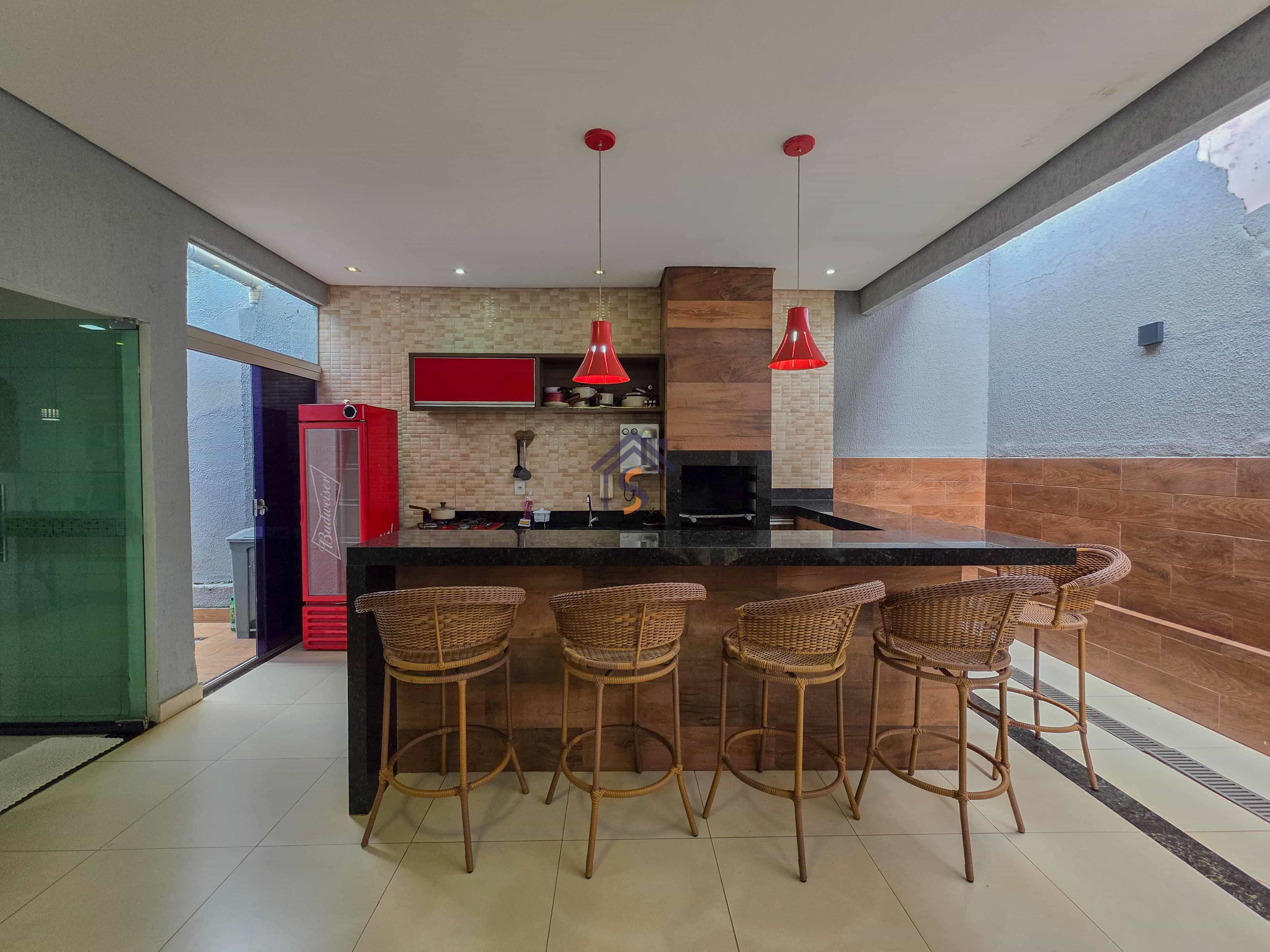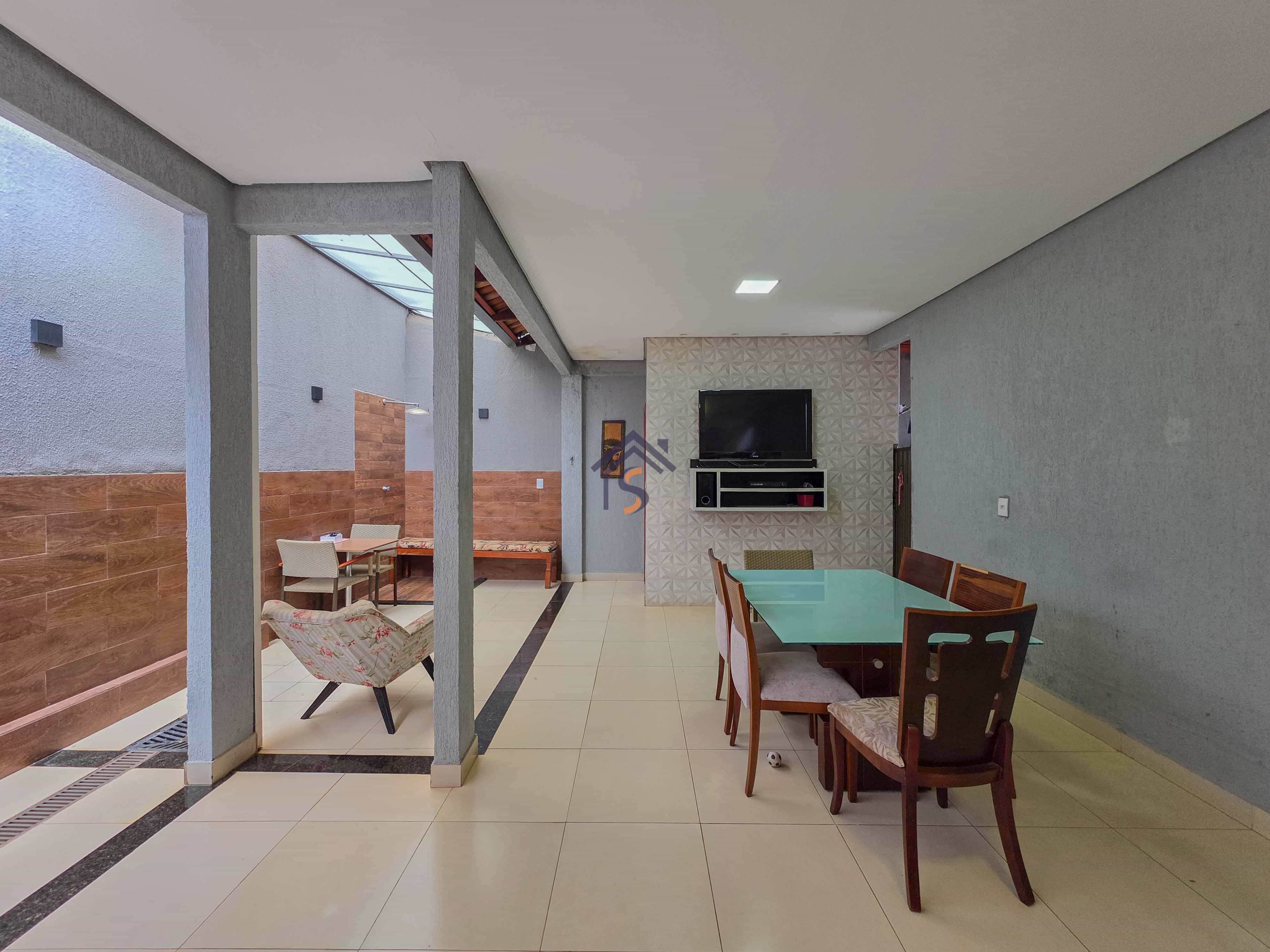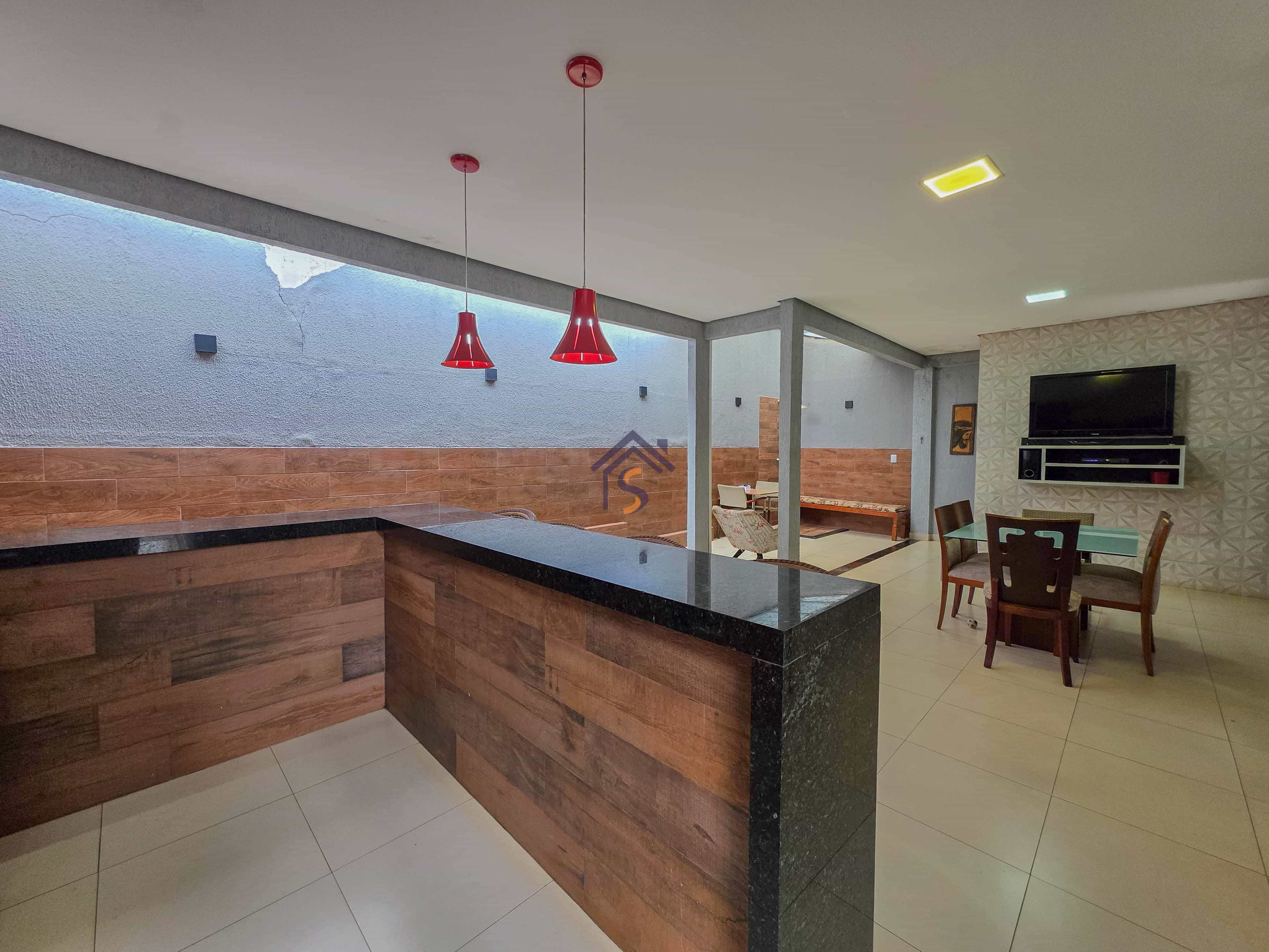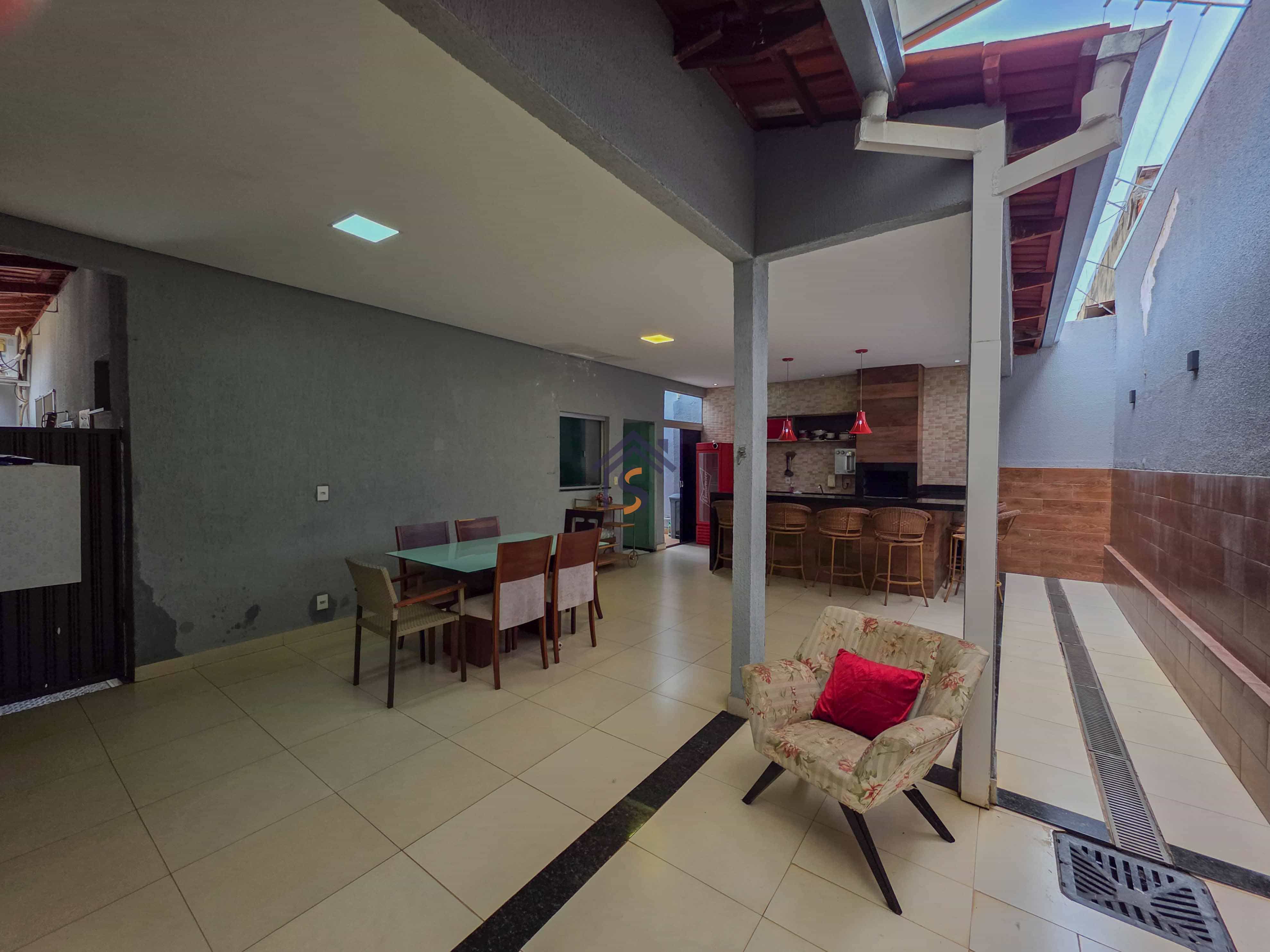 Casa com três quartos, sendo uma suíte, sala de estar e jantar amplas, cozinha, banheiro social, lavabo, área gourmet, área de serviço e duas vagas de garagens cobertas.