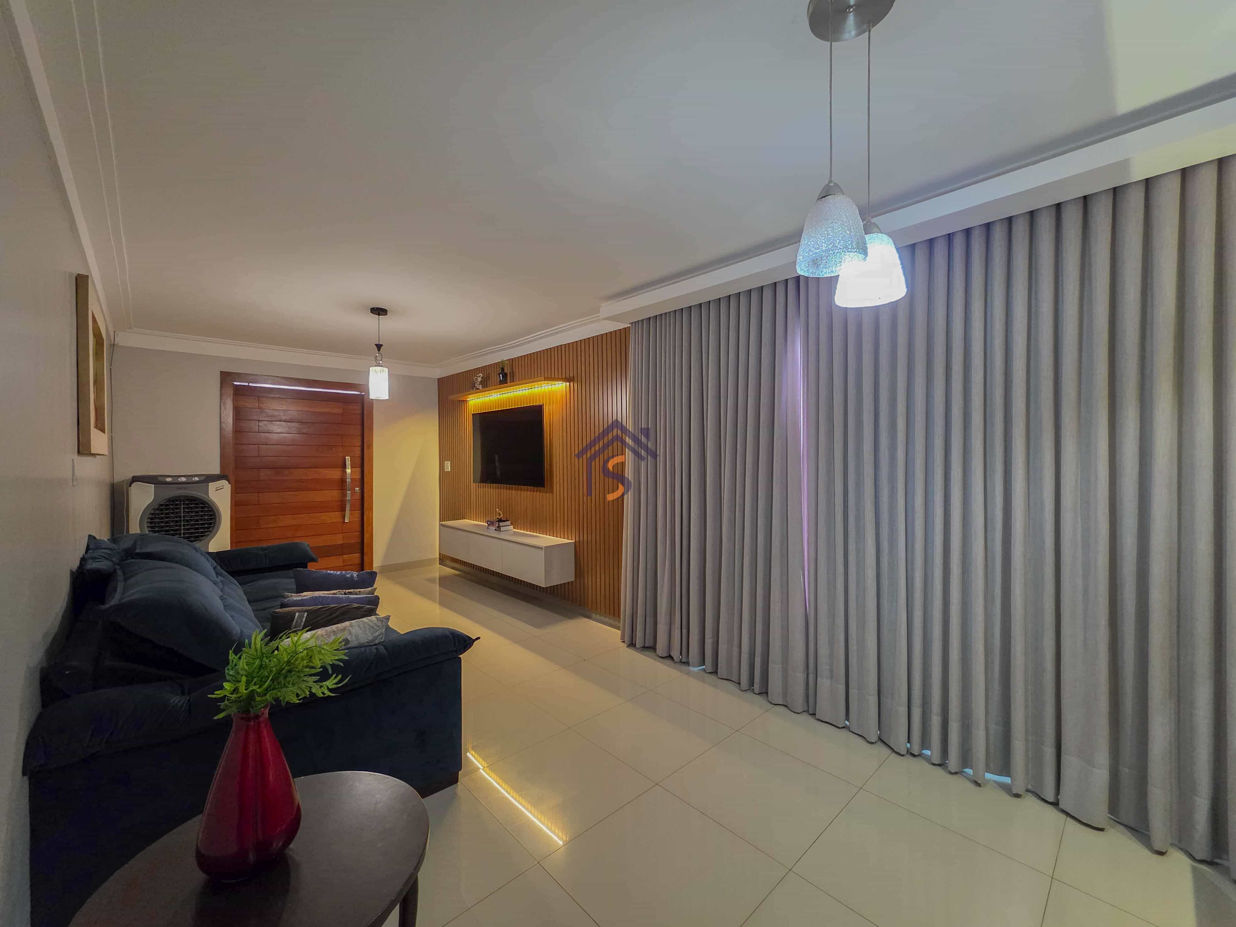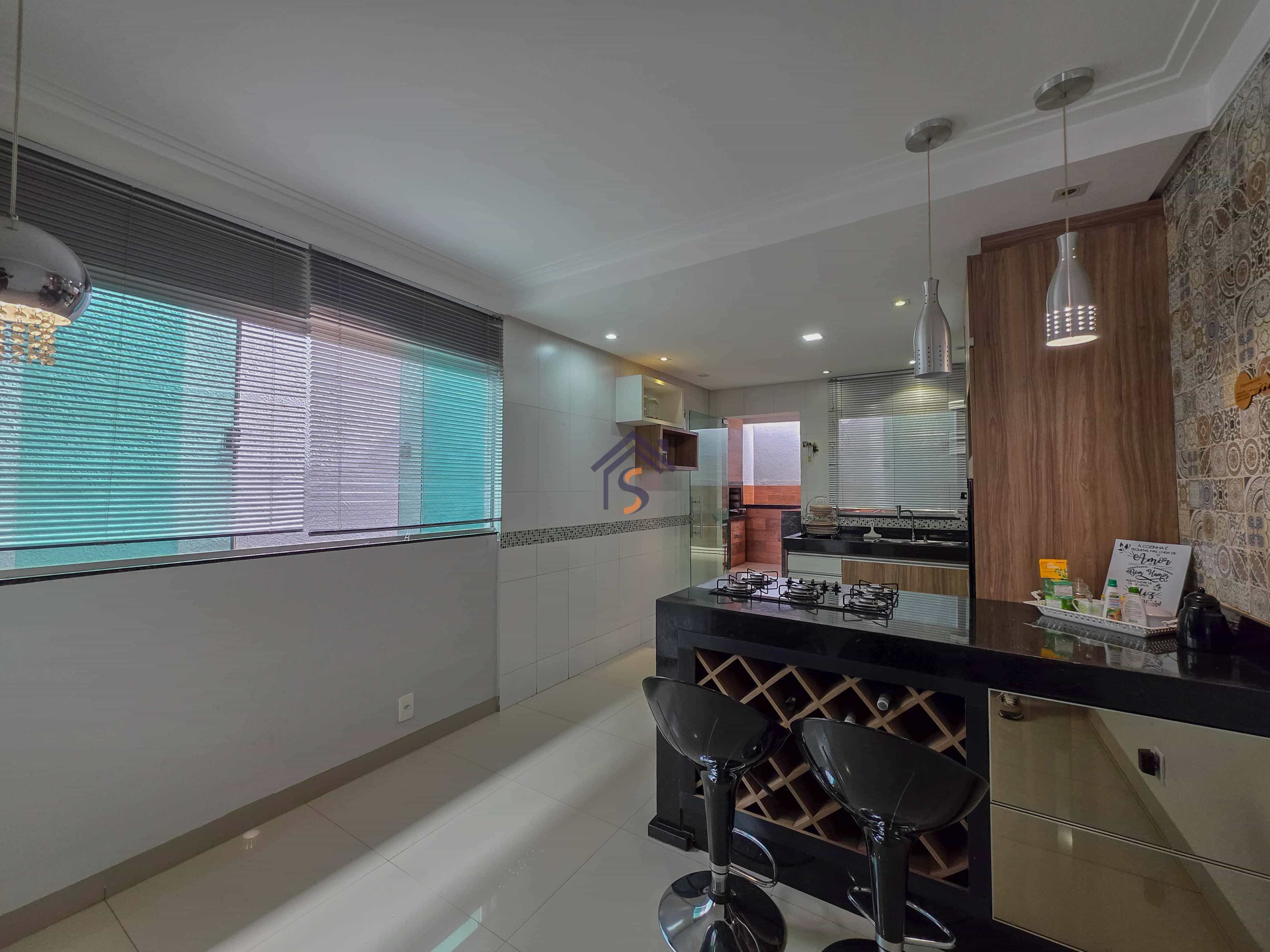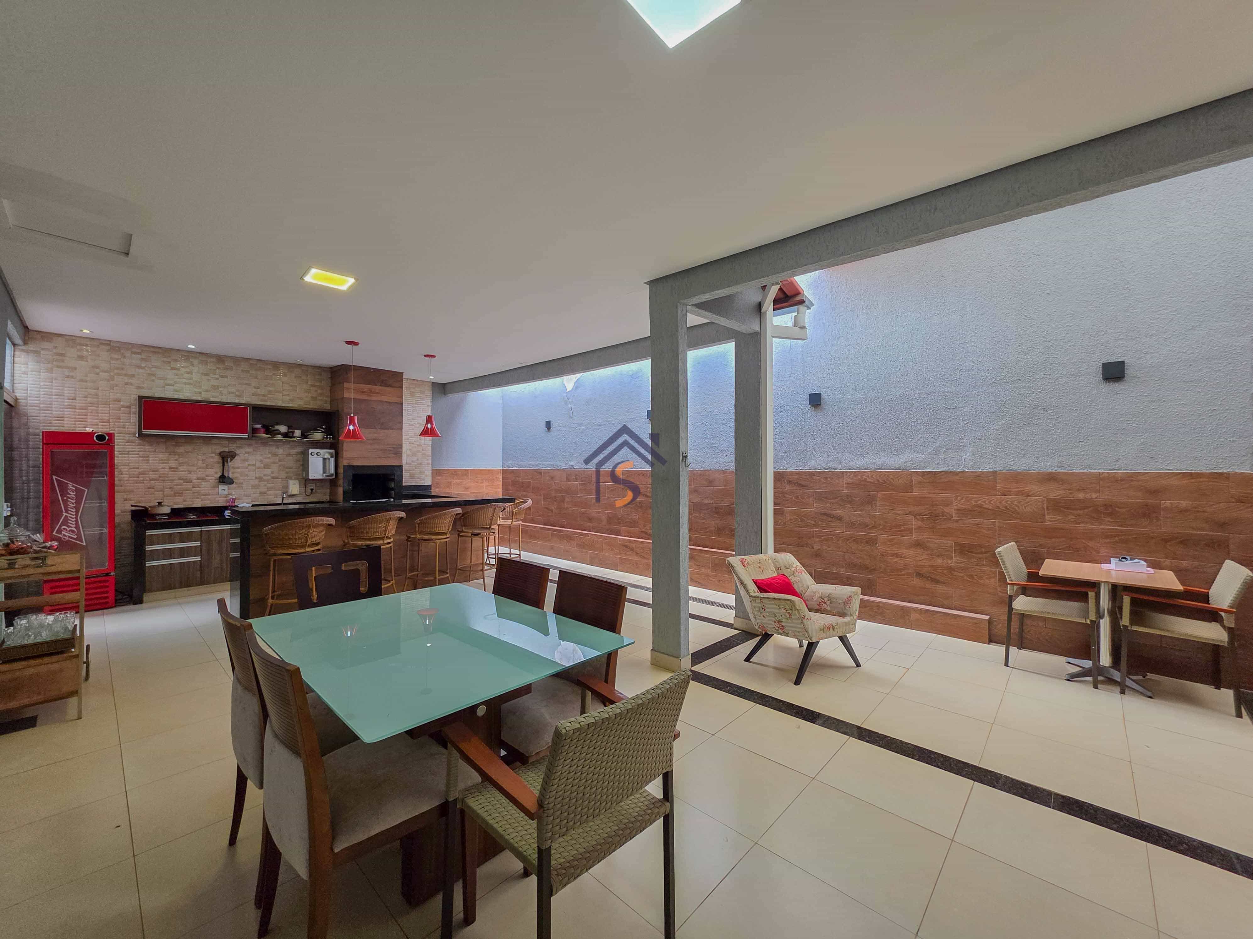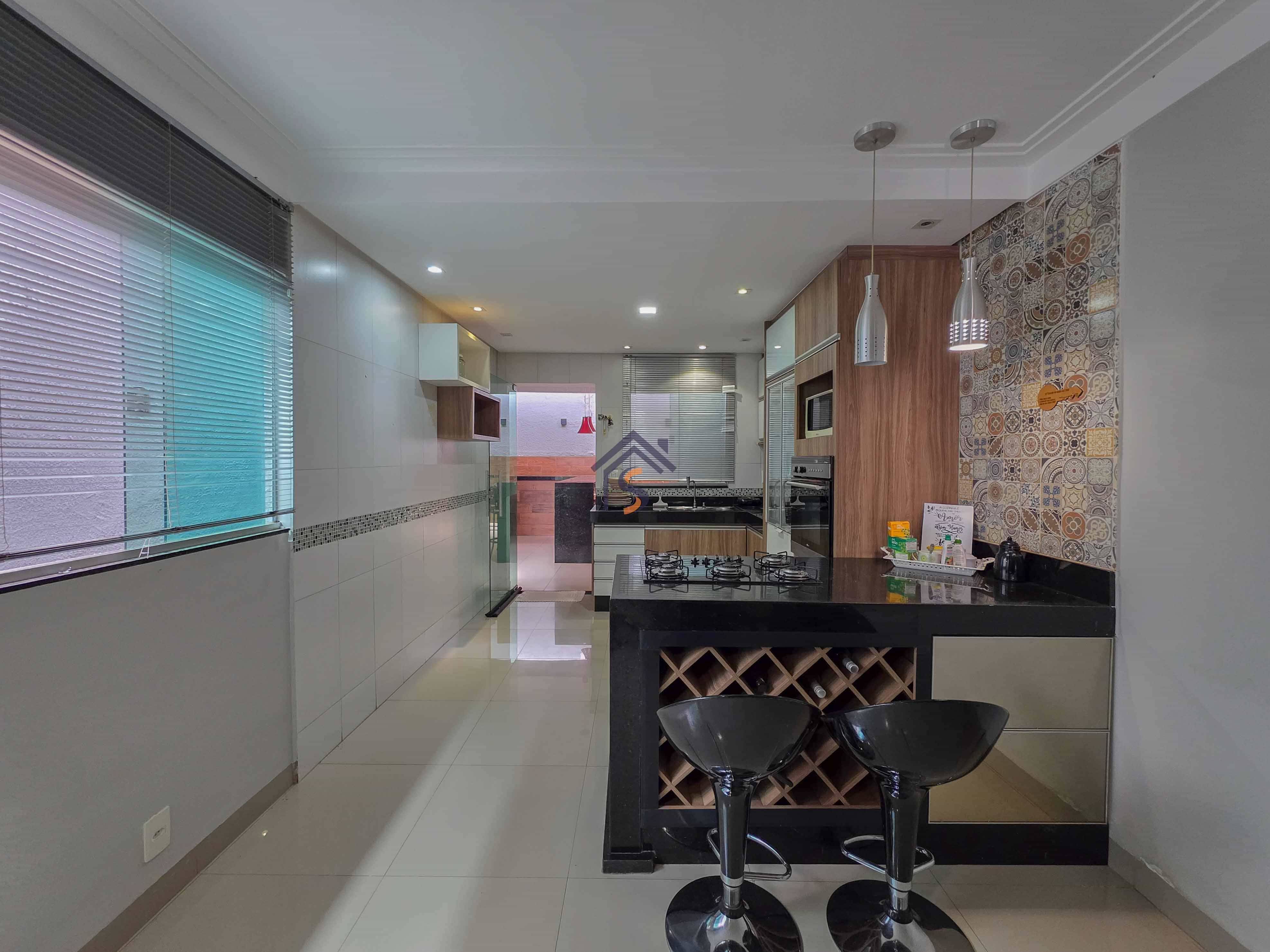 Casa com três quartos, sendo uma suíte, sala de estar e jantar amplas, cozinha, banheiro social, lavabo, área gourmet, área de serviço e duas vagas de garagens cobertas.