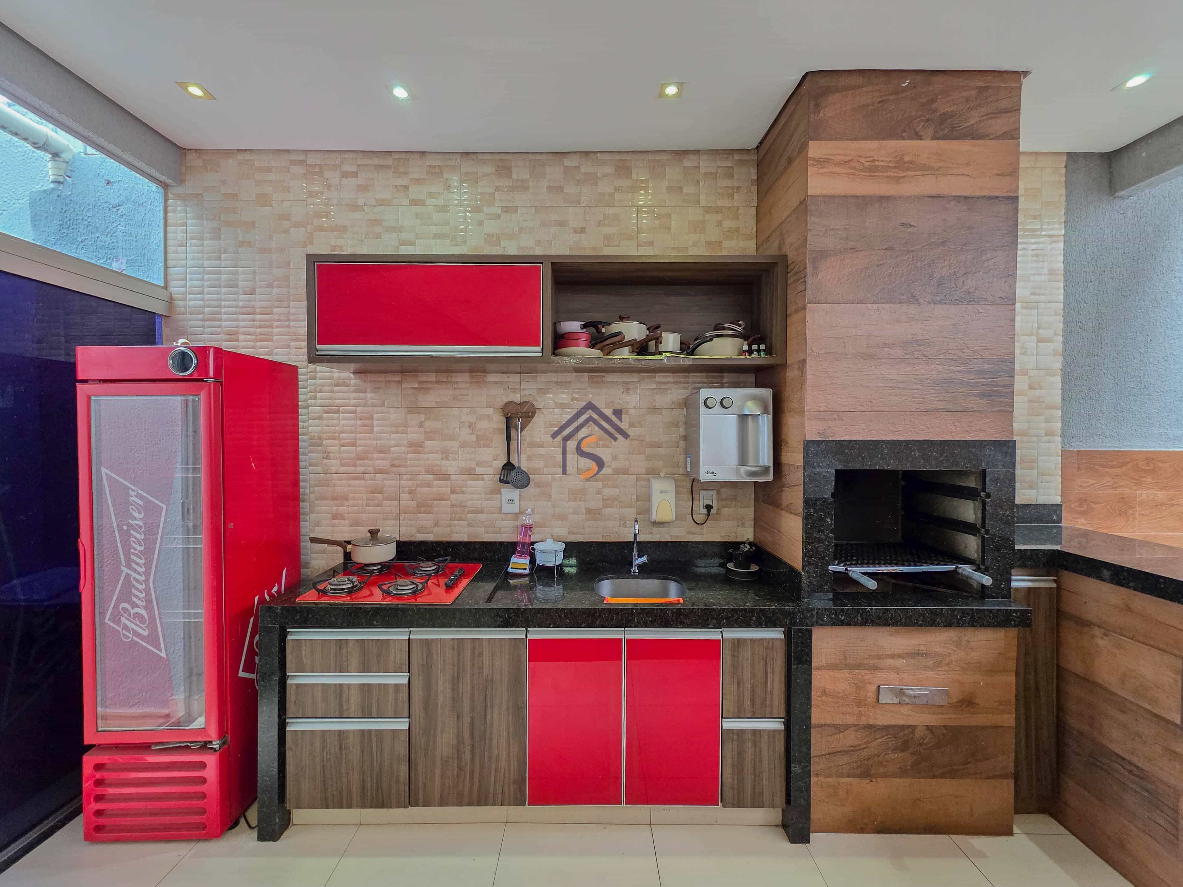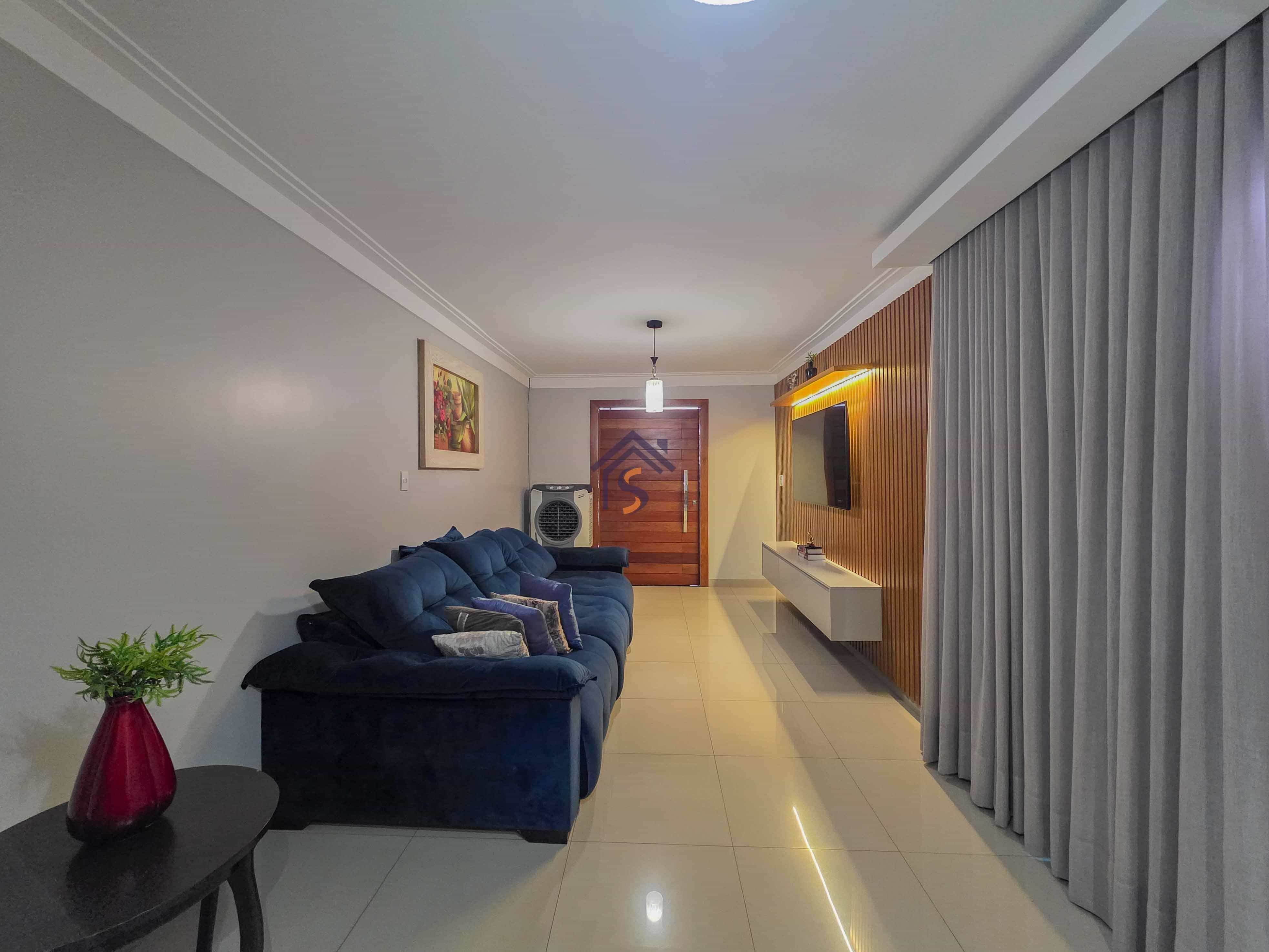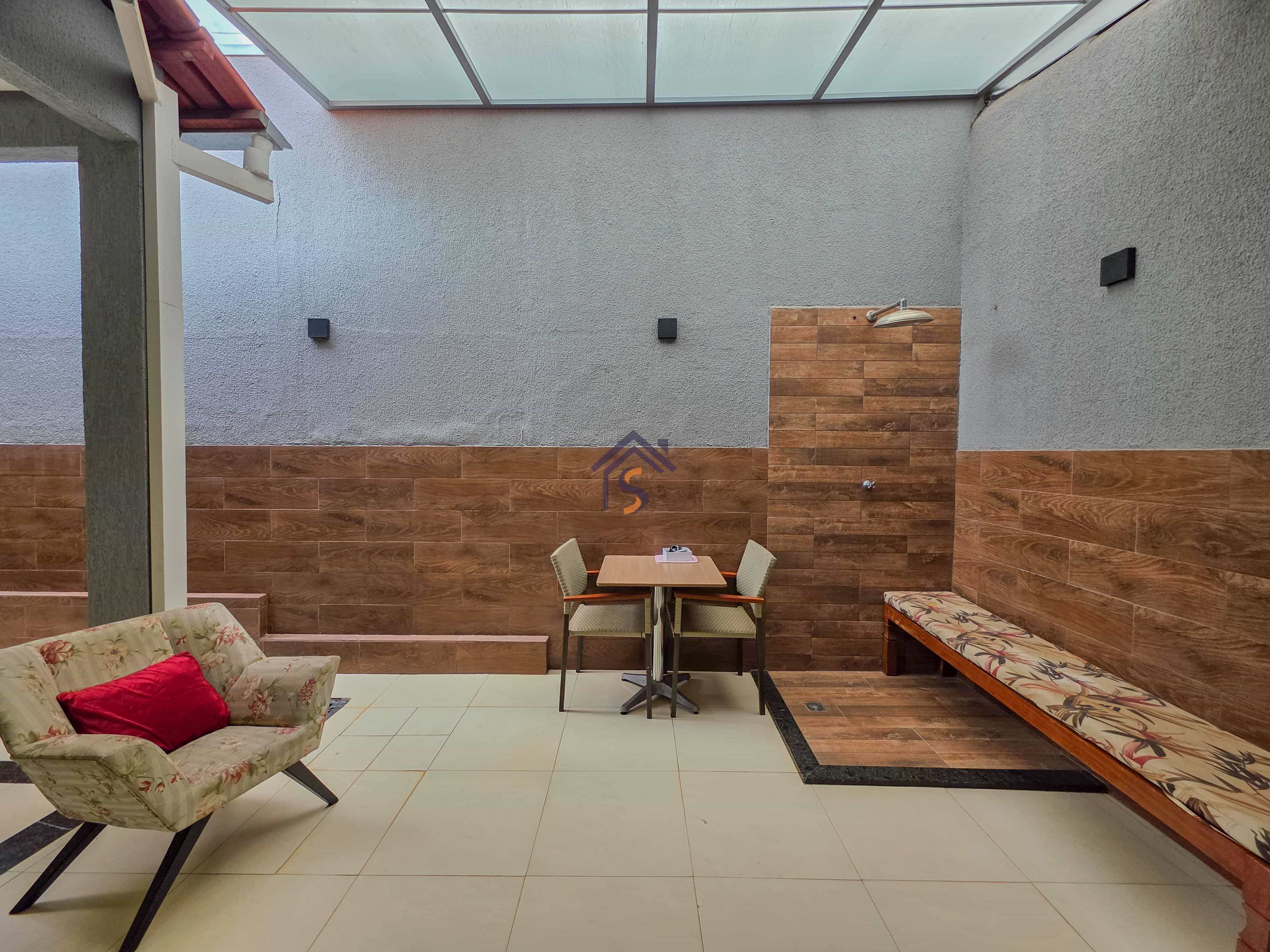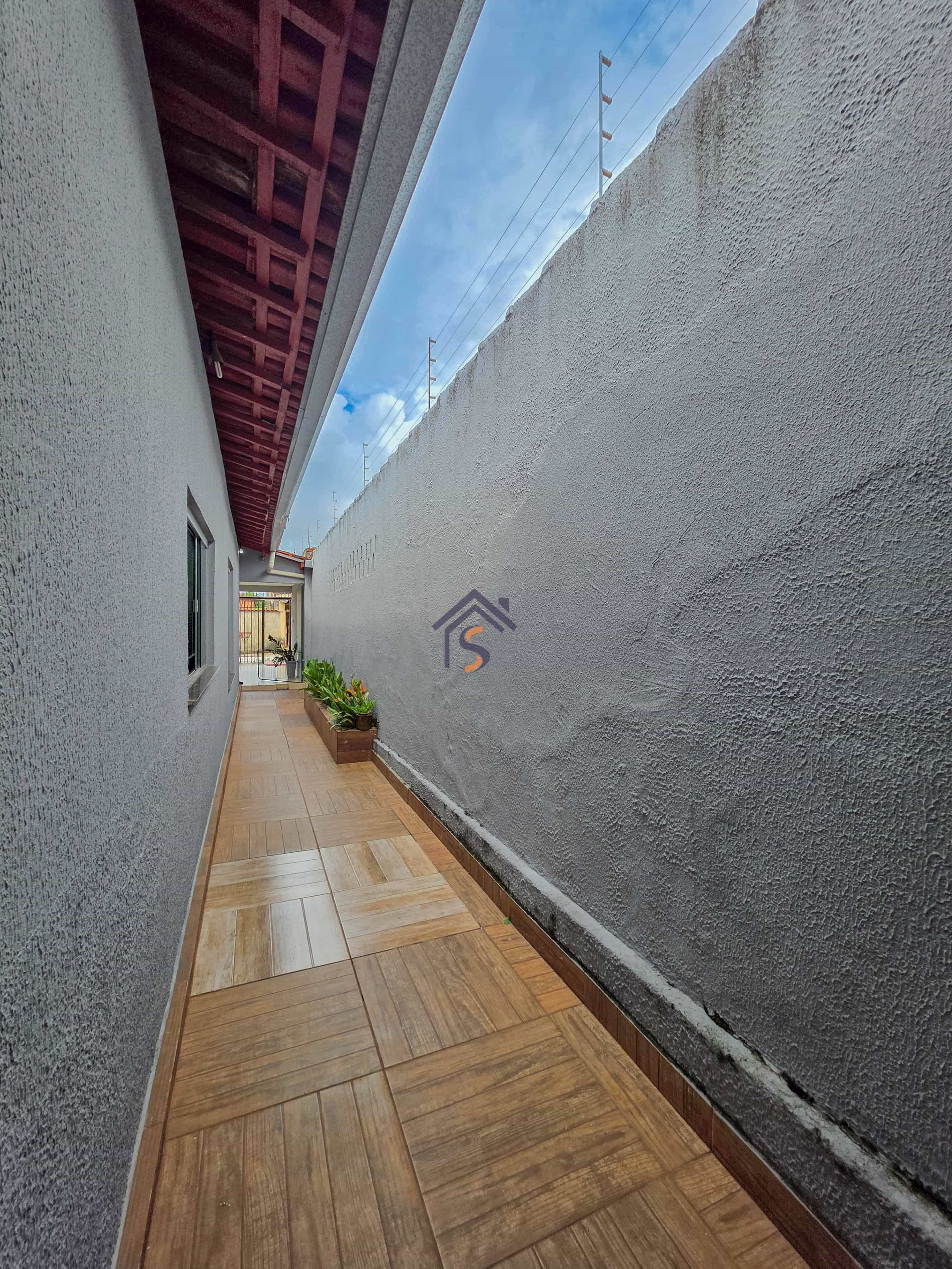 Casa com três quartos, sendo uma suíte, sala de estar e jantar amplas, cozinha, banheiro social, lavabo, área gourmet, área de serviço e duas vagas de garagens cobertas.