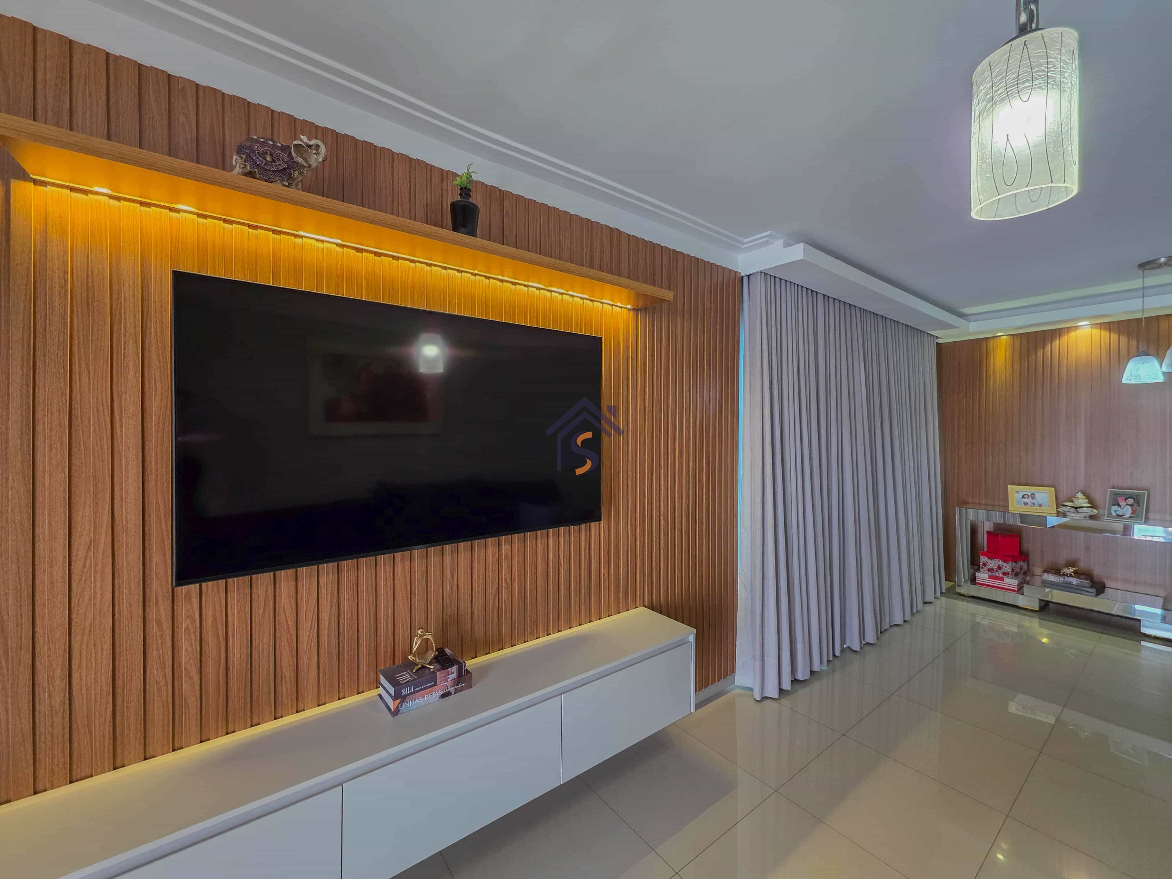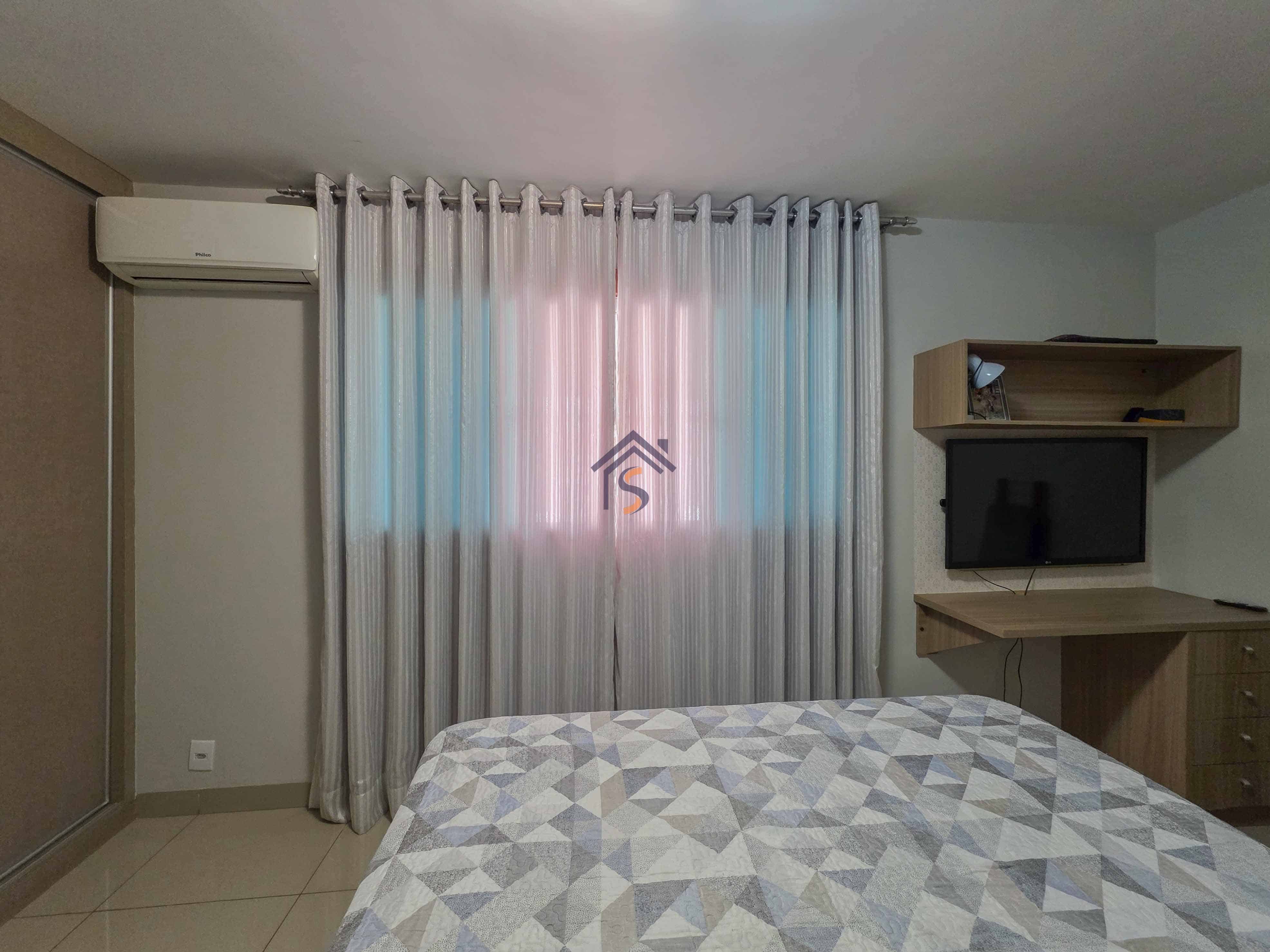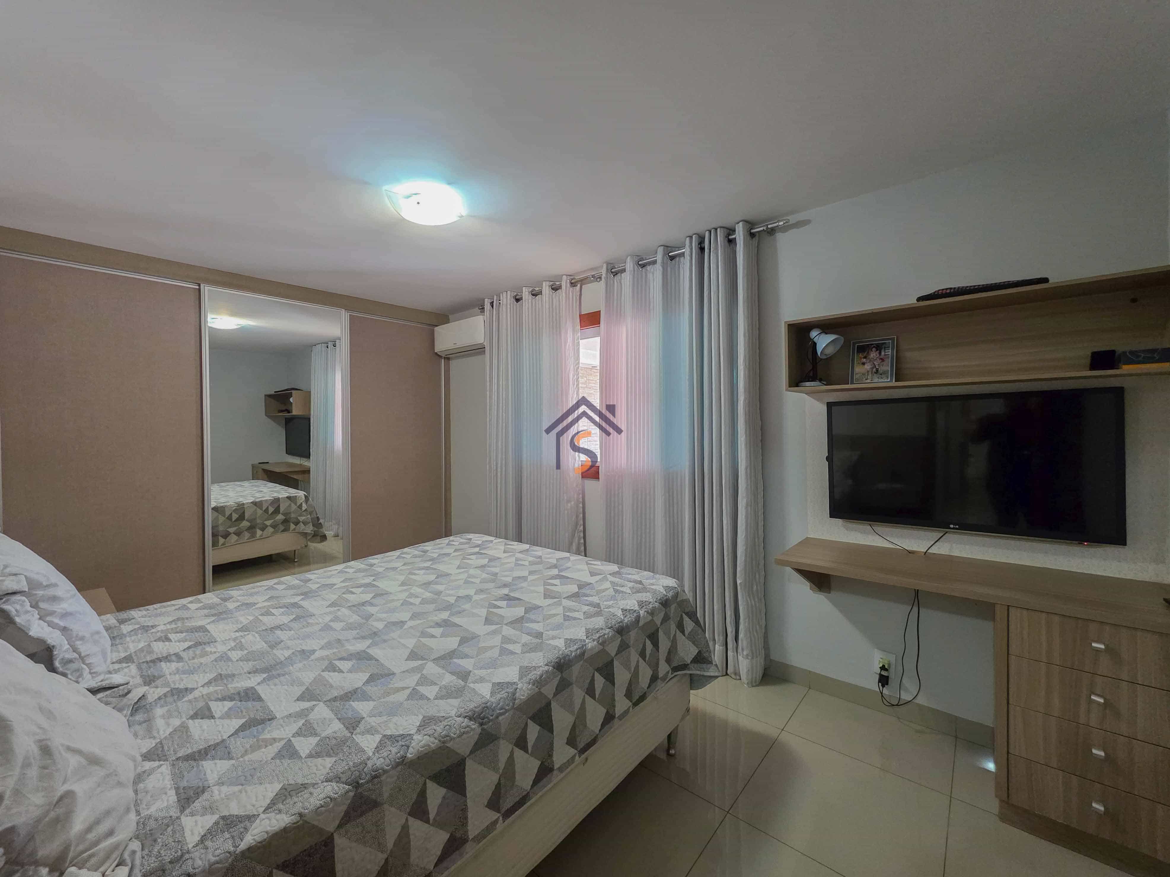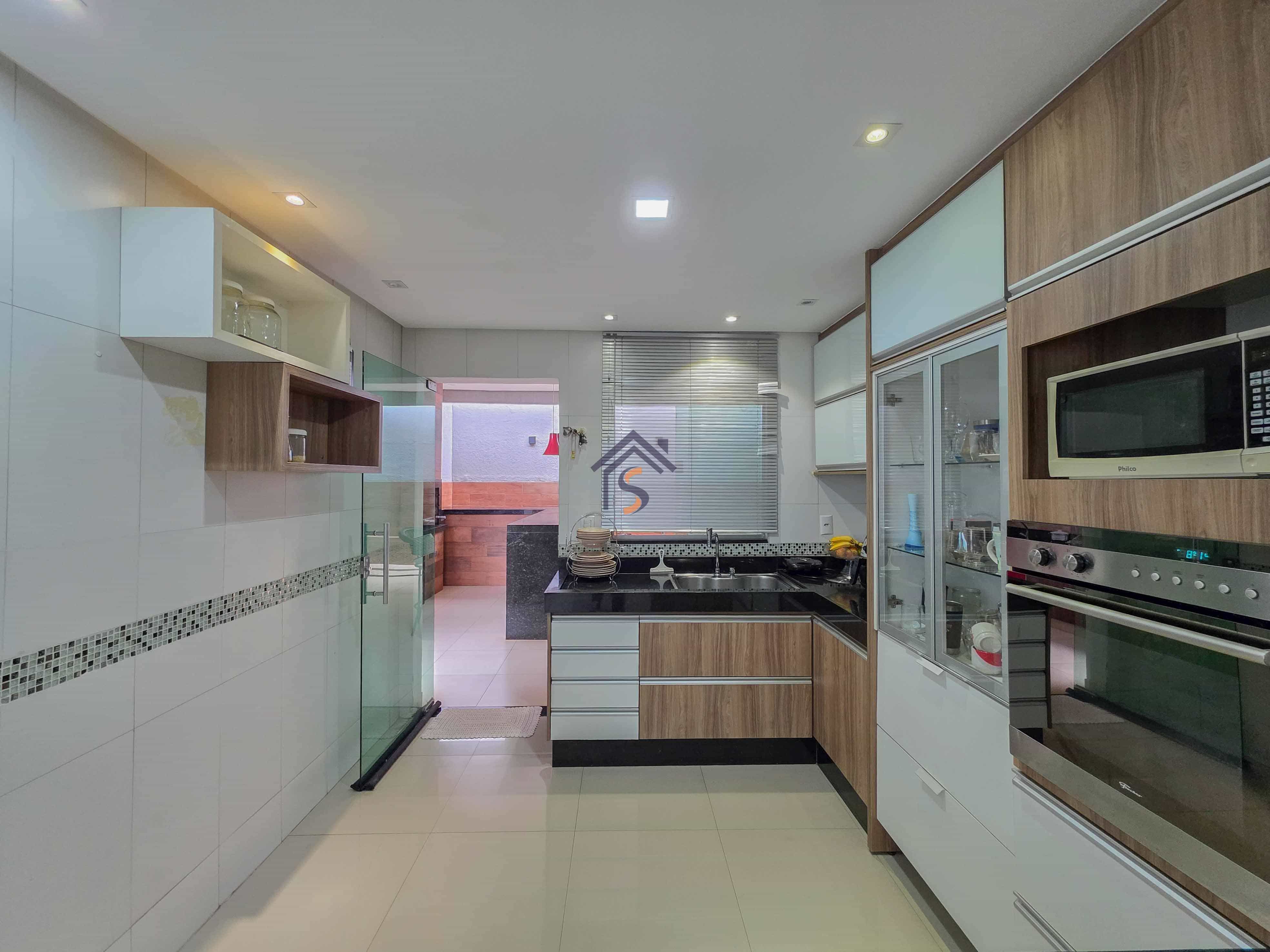 Casa com três quartos, sendo uma suíte, sala de estar e jantar amplas, cozinha, banheiro social, lavabo, área gourmet, área de serviço e duas vagas de garagens cobertas.