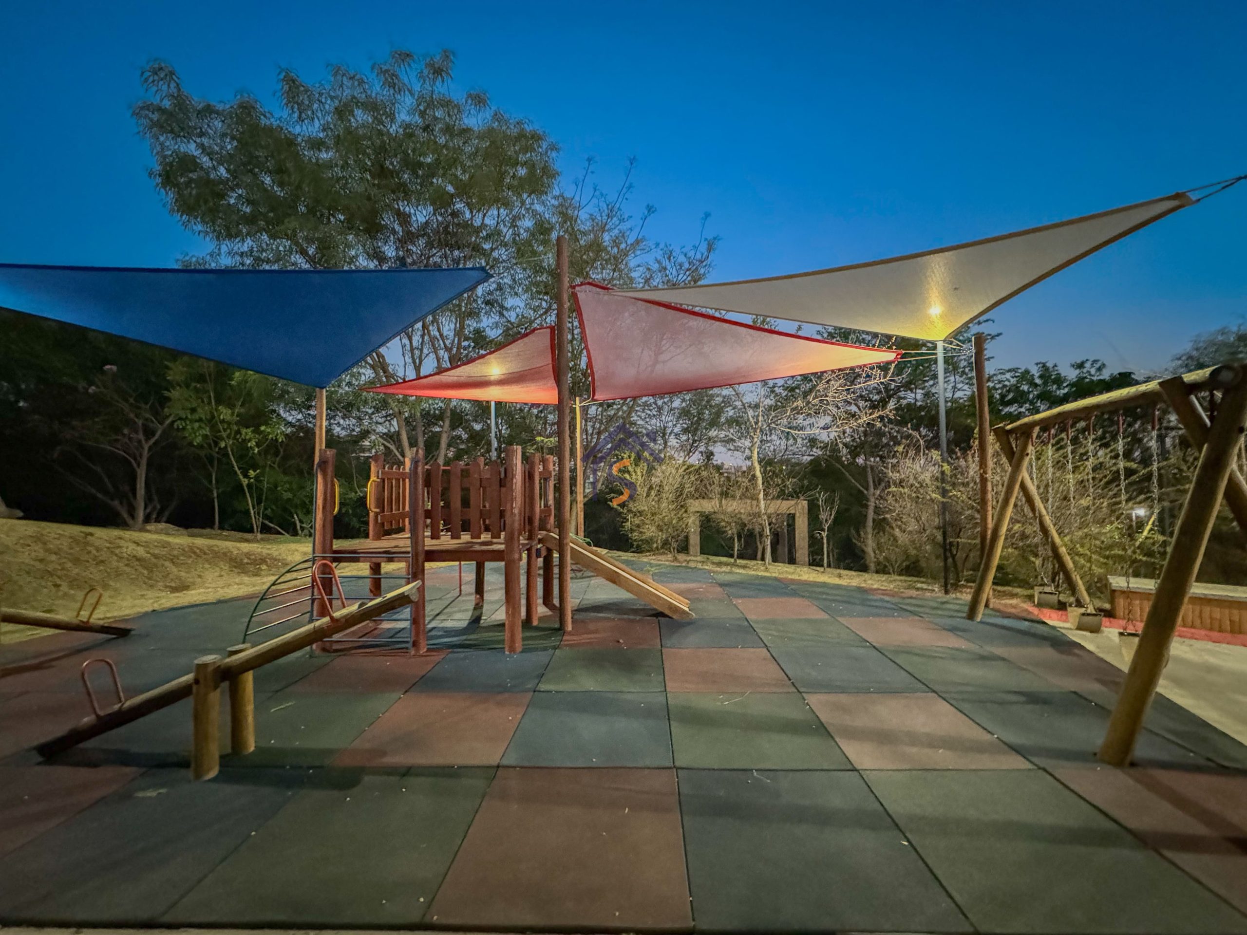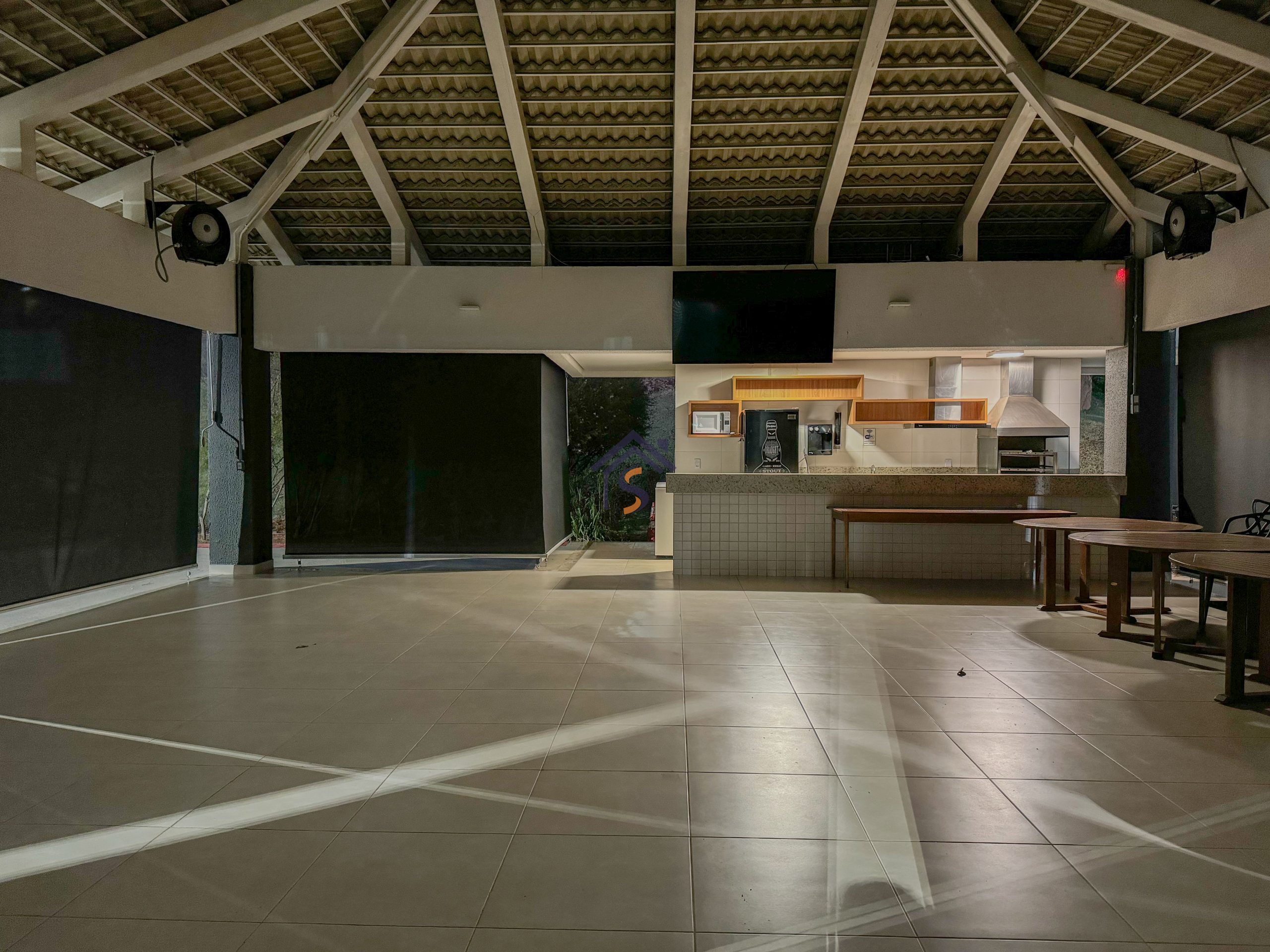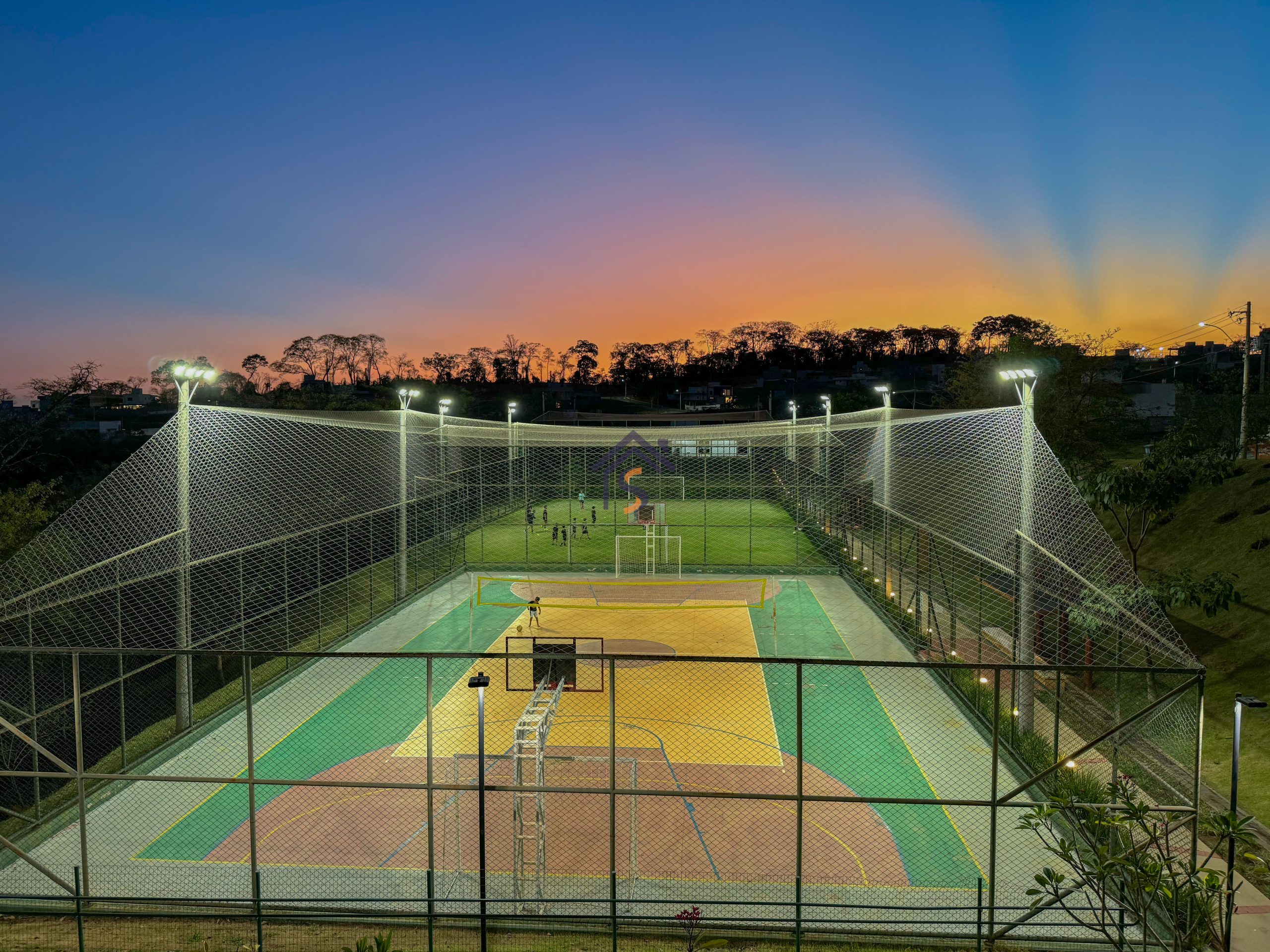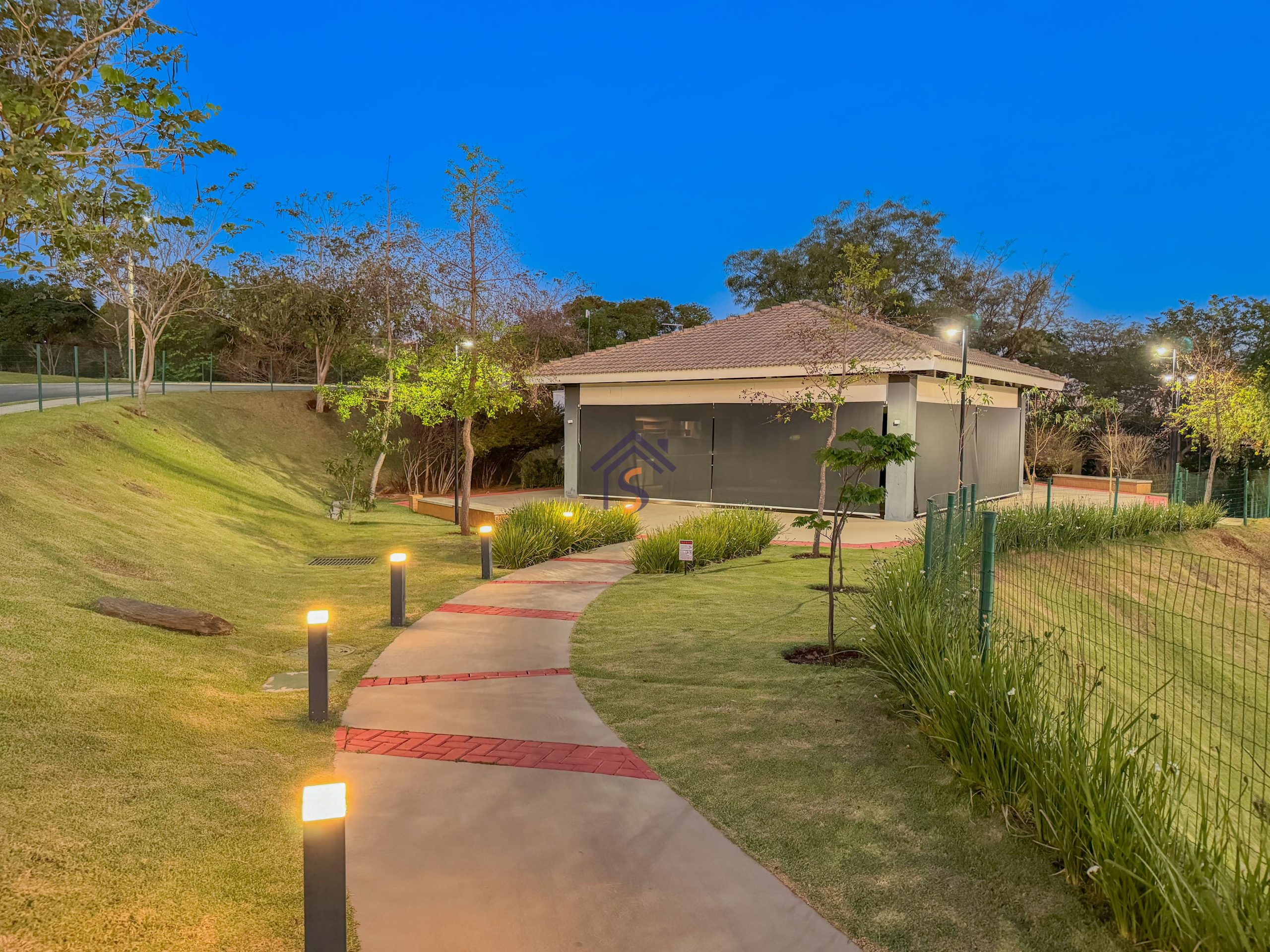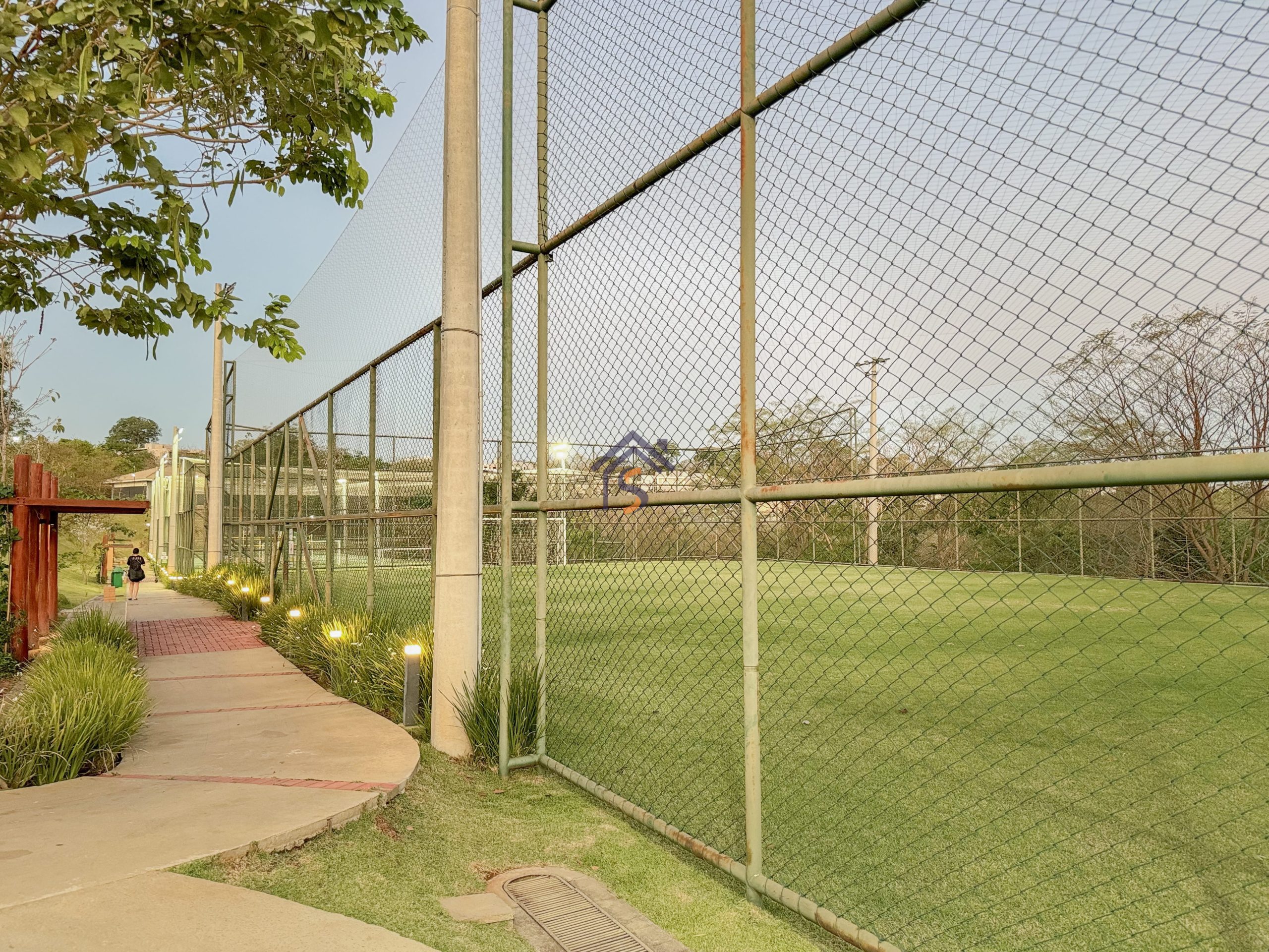 Área de lazer com dois campos de futebol society, duas quadras de tênis, uma quadra de peteca, uma quadra de areia, uma quadra poliesportiva, quatro parques infantis, estação de ginástica, quatro quiosques, sendo um com churrasqueira, pergolados e área verde de reserva do condomínio.