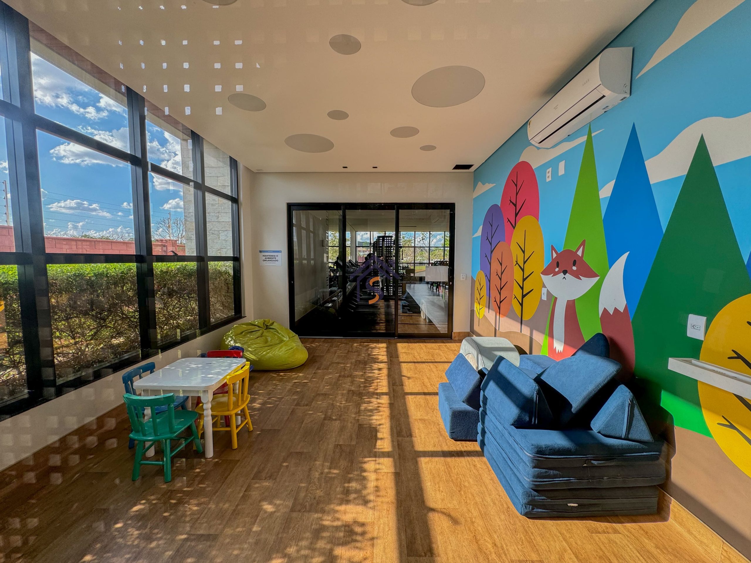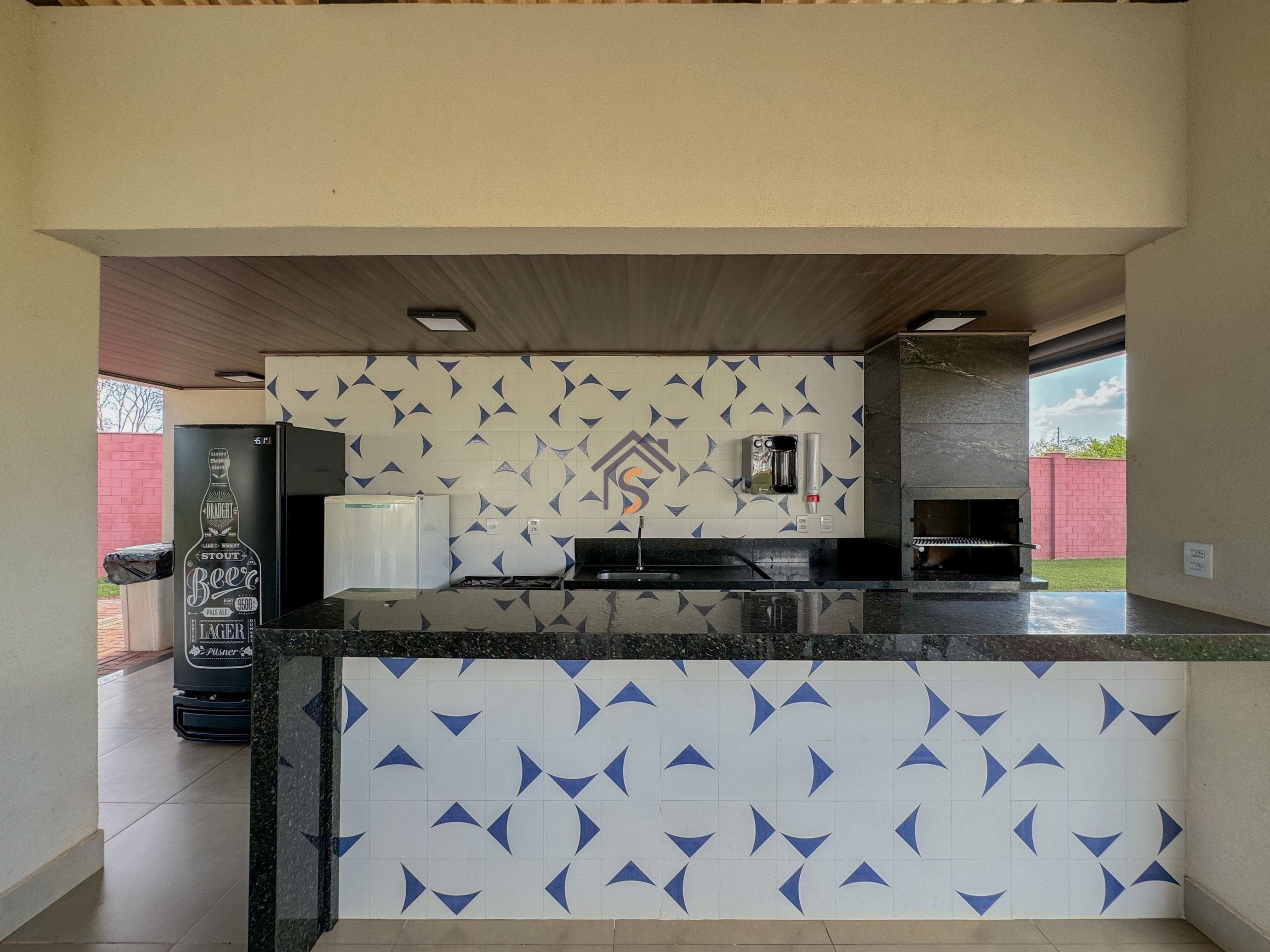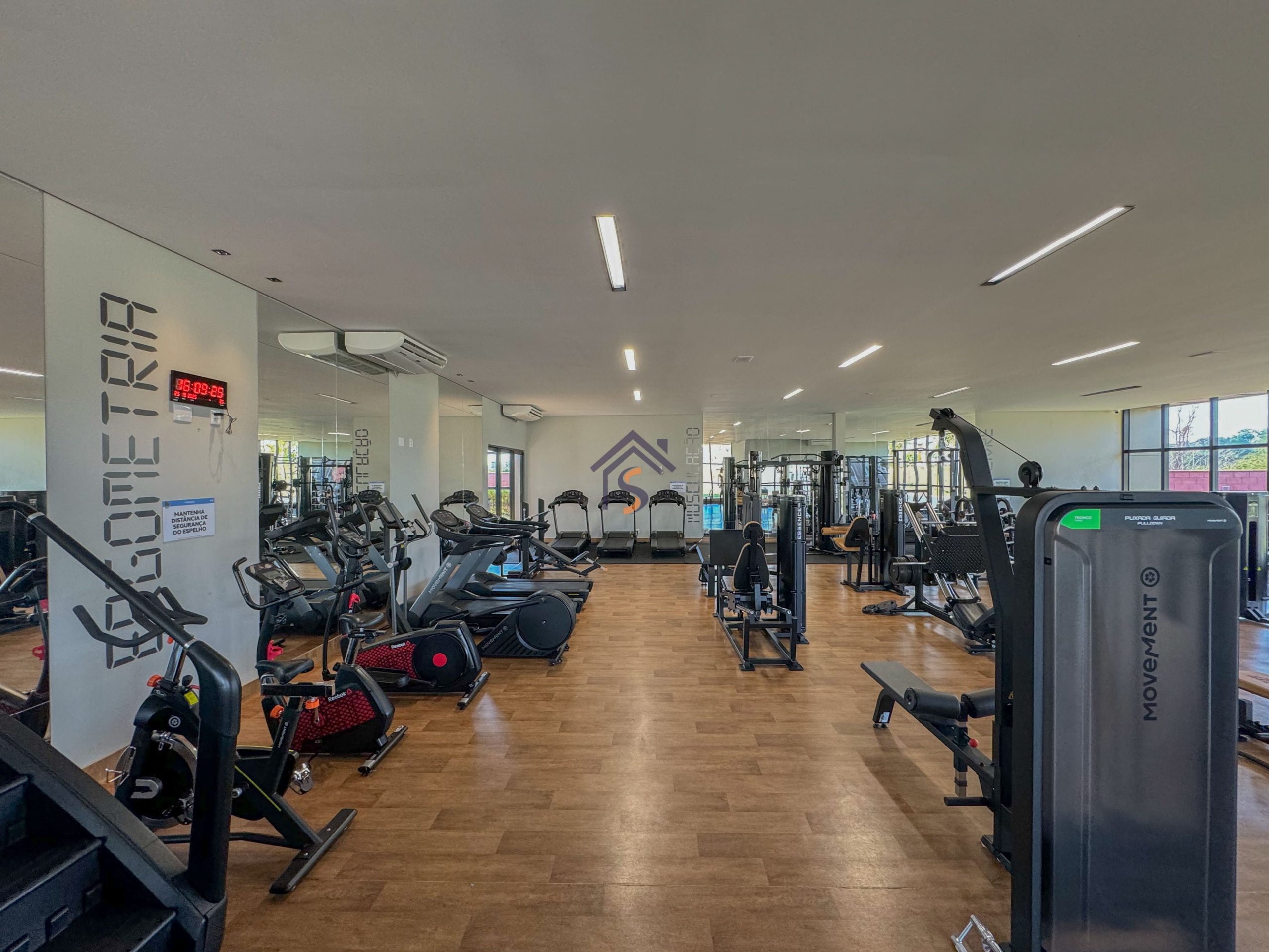 Área de lazer completa com salão de festas, dois campos de futebol society, duas quadras de areia, uma quadra de peteca, duas quadras de tênis, uma quadra poliesportiva um campo gramado, cinco quiosques (três com churrasqueiras), uma praça para feiras e eventos, academia, pista de caminhada e área verde de reserva do condomínio.