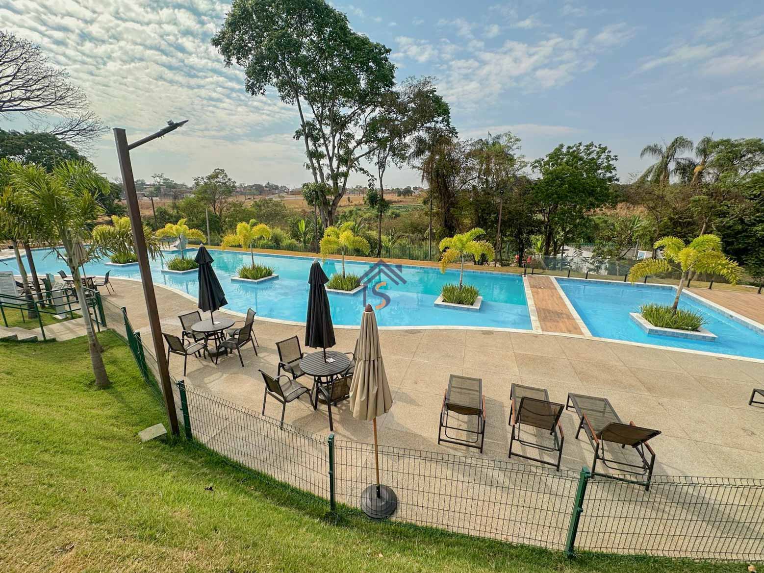 Área de lazer com dois campos de futebol society, duas quadras de tênis, duas quadras de areia, uma quadra poliesportiva, playground, piscina, academia integrada, praça de piquenique, pista de caminhada e área verde de reserva do condomínio.