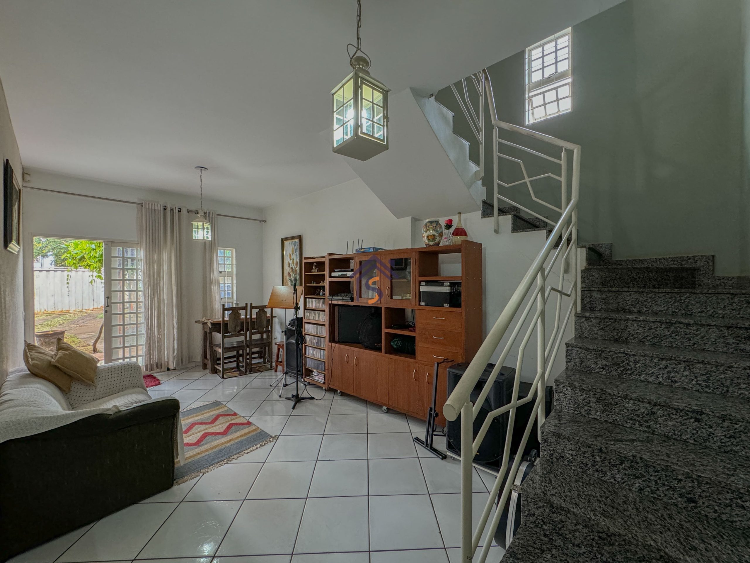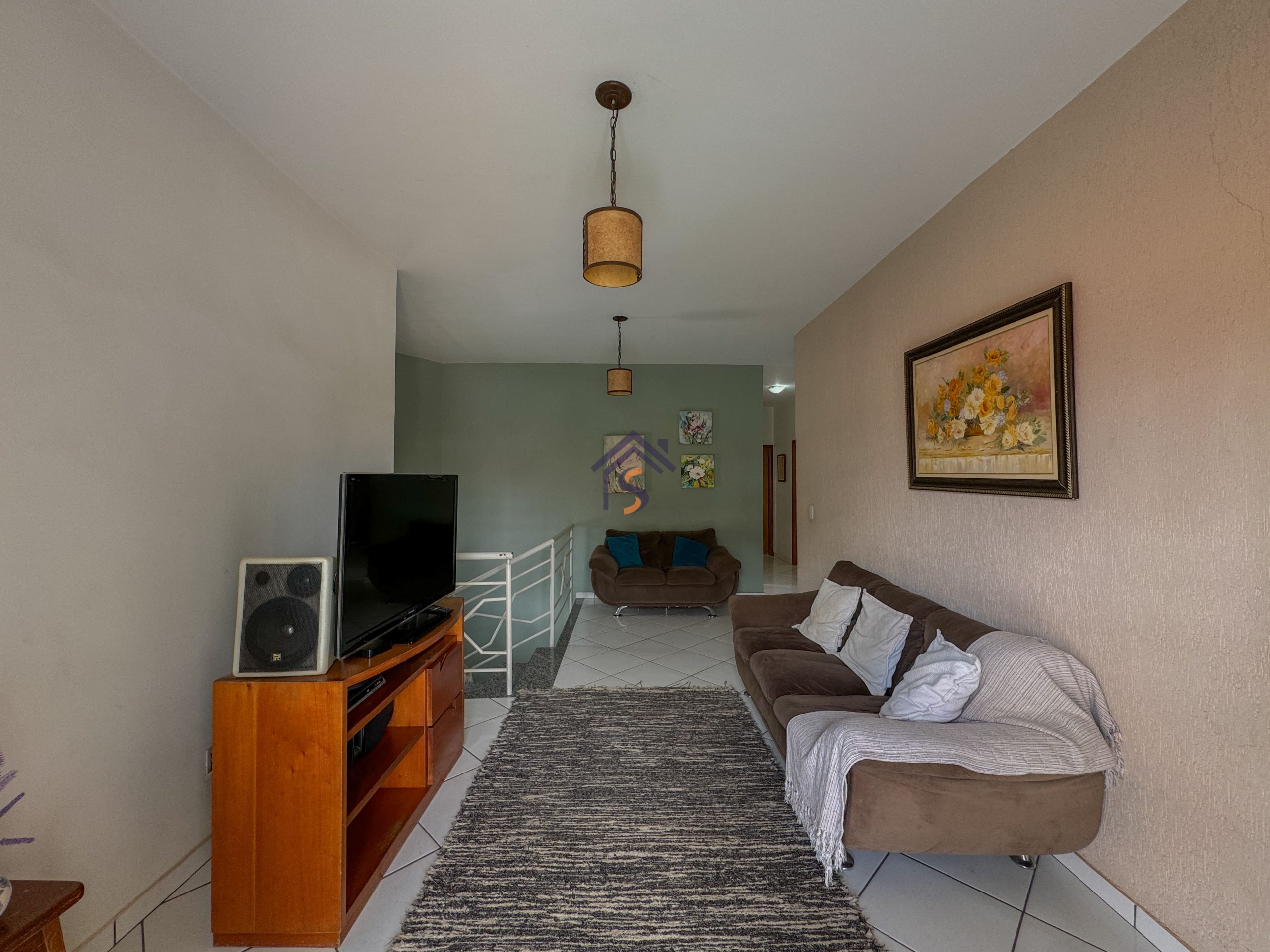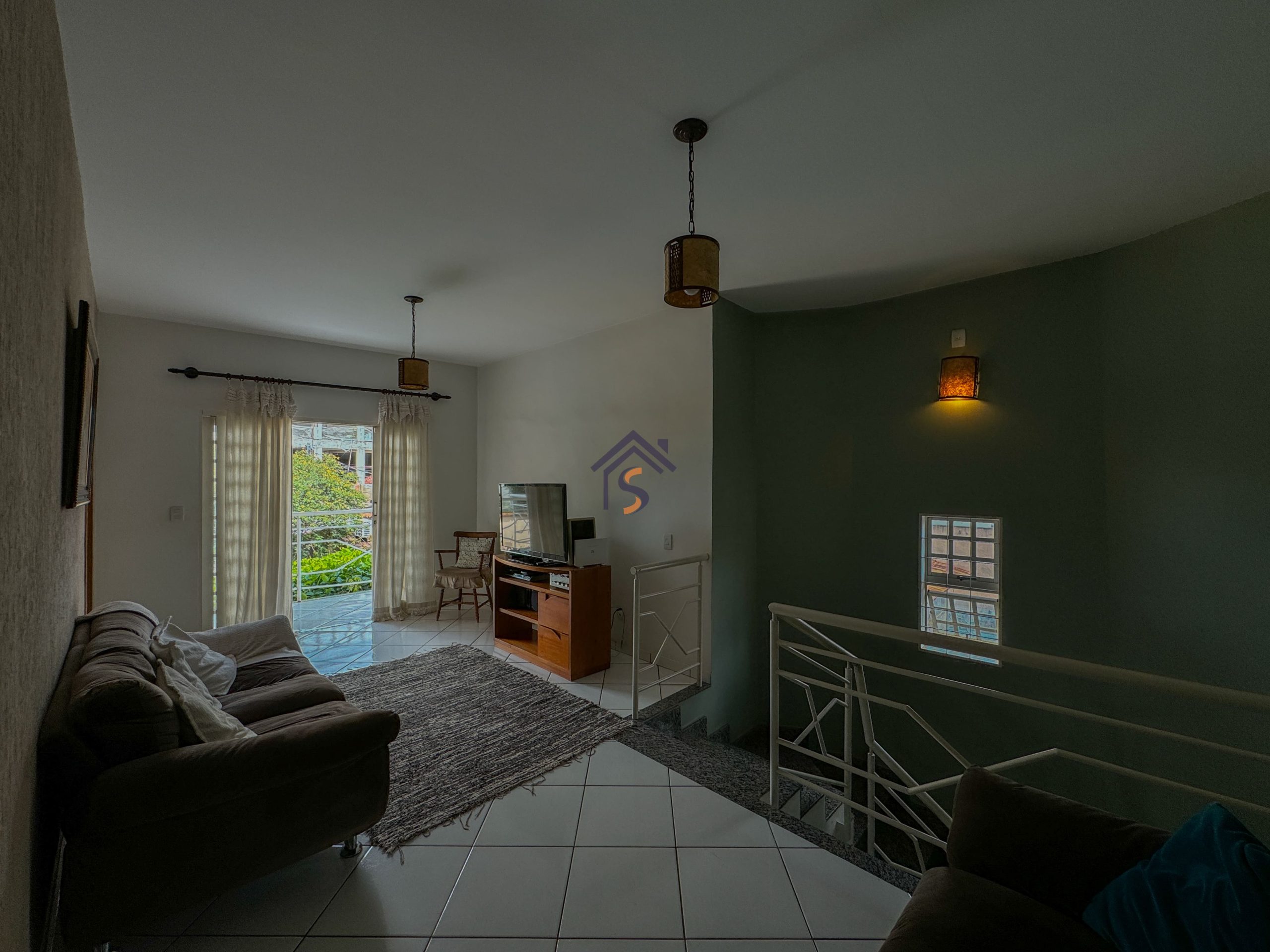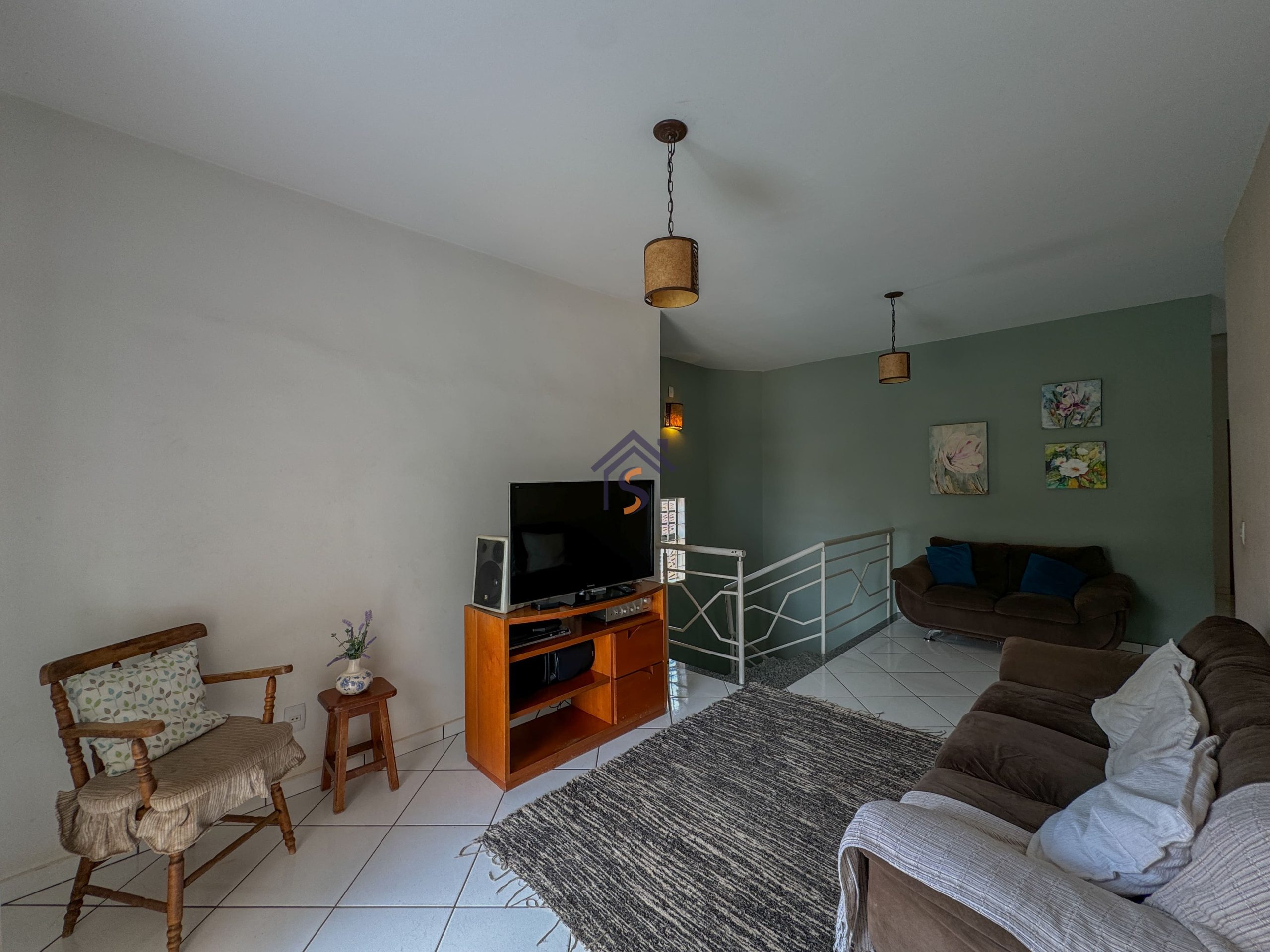 Sobrado com cinco quartos, sendo uma suíte com closet e sacada, sala privativa com sacada no pavimento superior, sala de estar e jantar, cozinha, um quarto, banheiro social no térreo, área de serviço, três vagas de garagens, sendo uma vaga de garagem coberta.