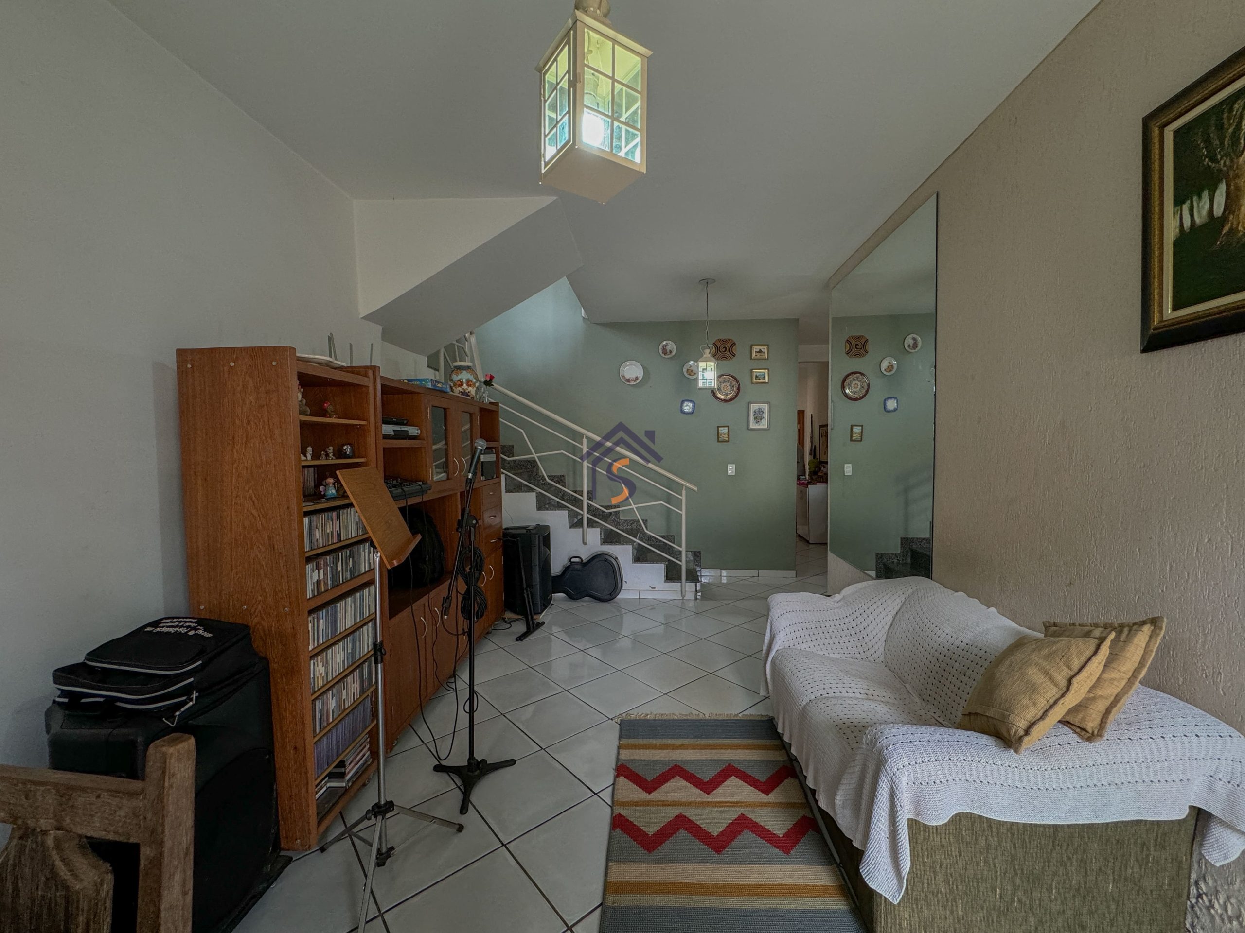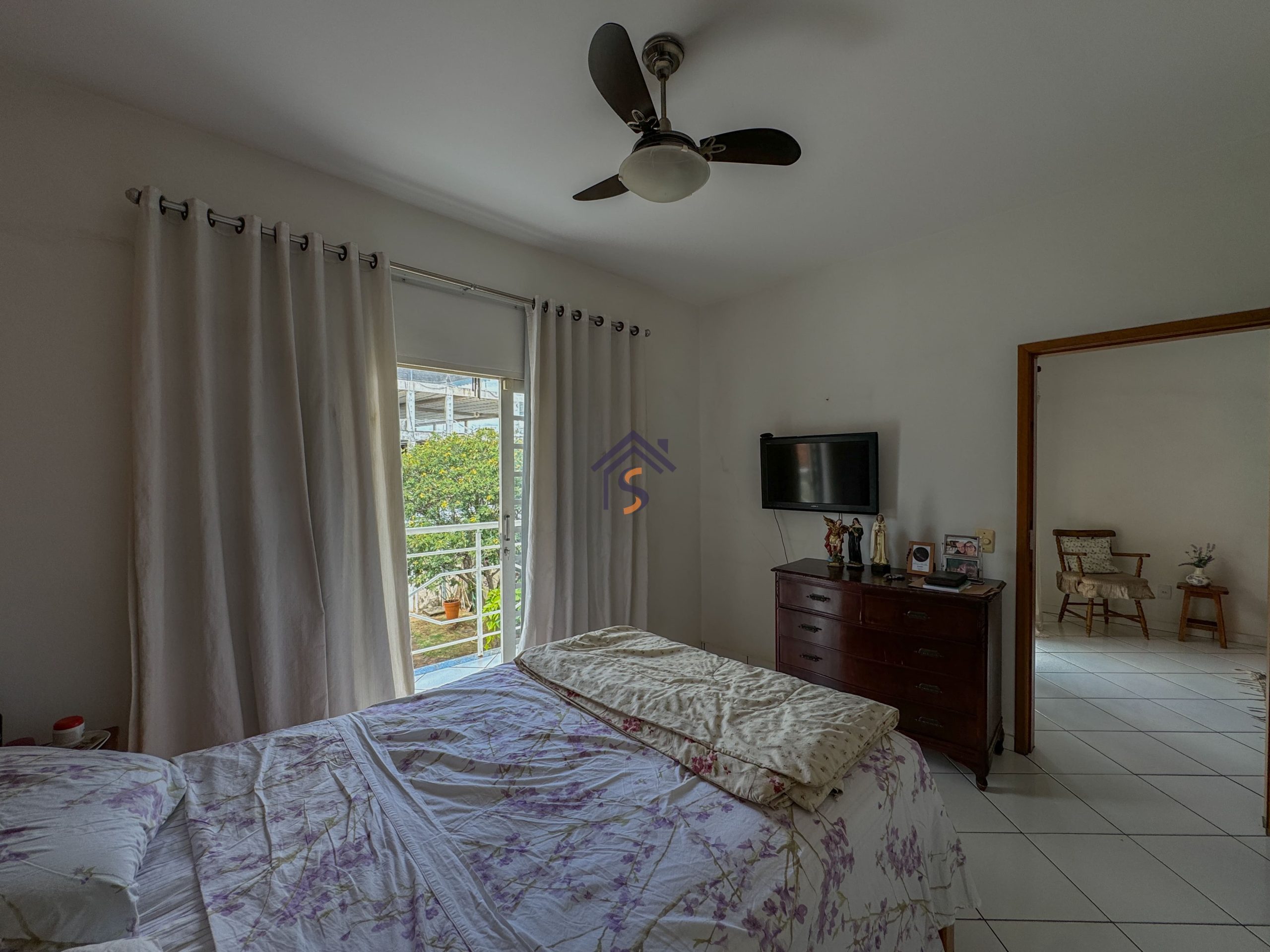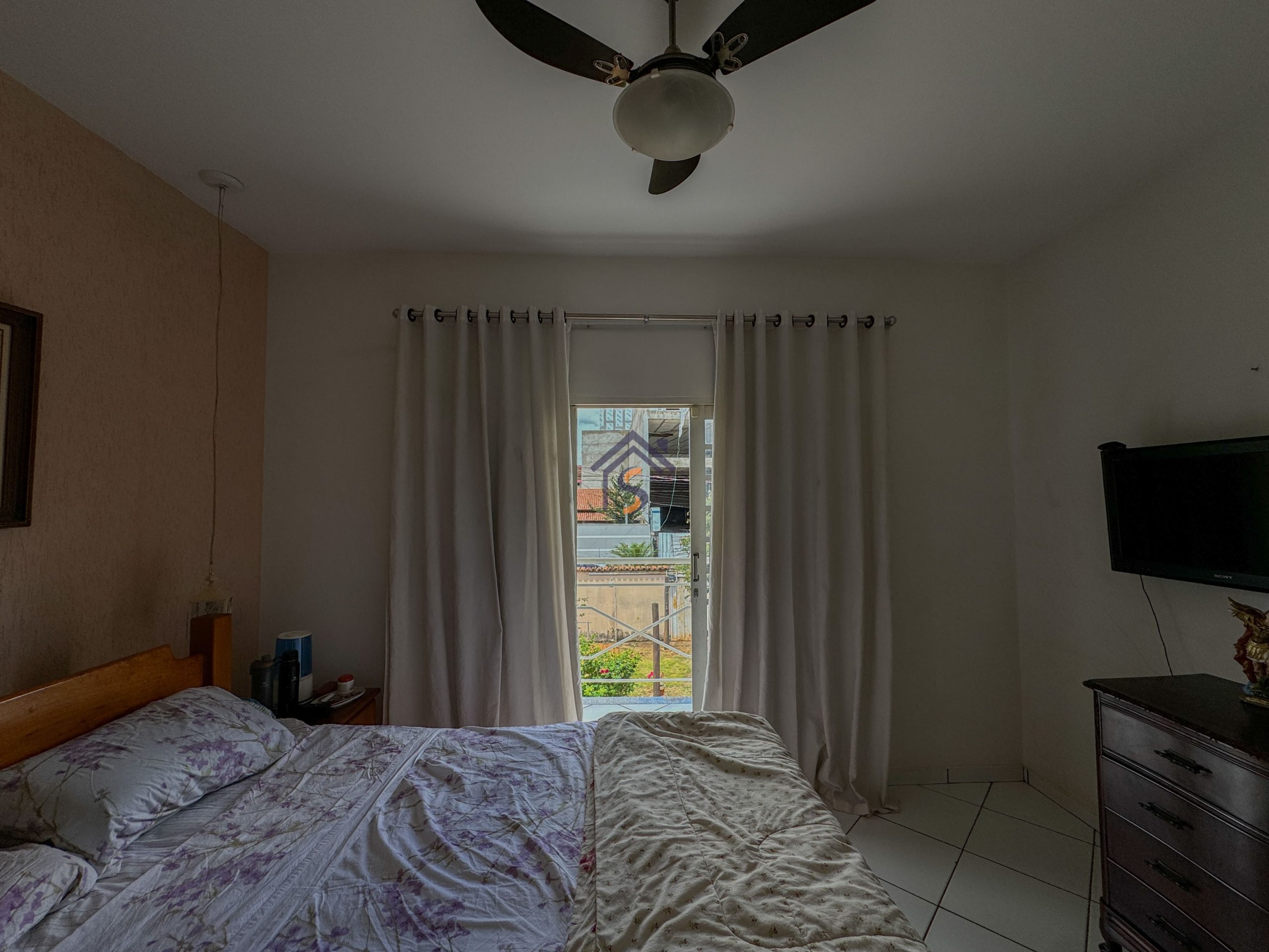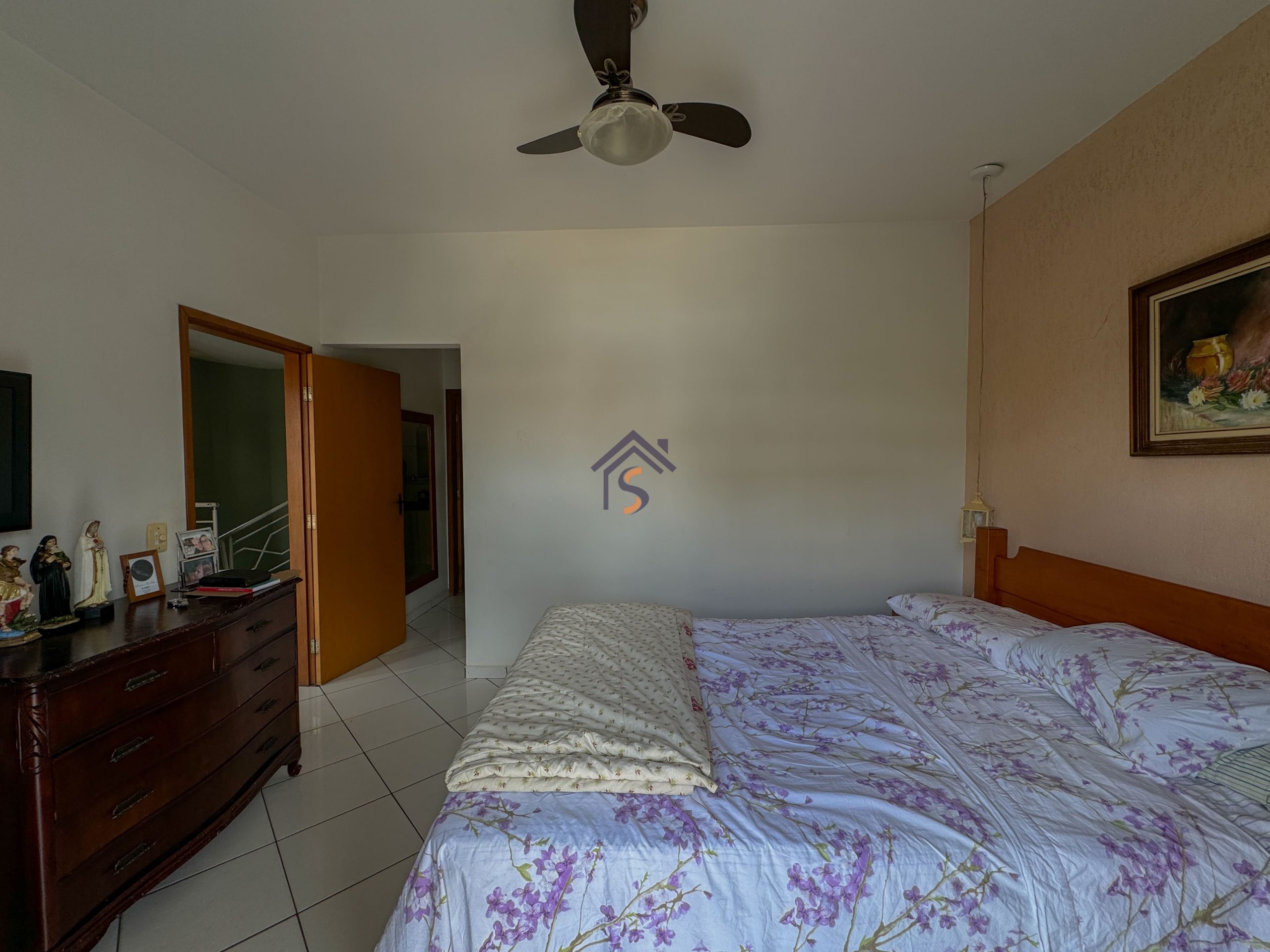 Sobrado com cinco quartos, sendo uma suíte com closet e sacada, sala privativa com sacada no pavimento superior, sala de estar e jantar, cozinha, um quarto, banheiro social no térreo, área de serviço, três vagas de garagens, sendo uma vaga de garagem coberta.