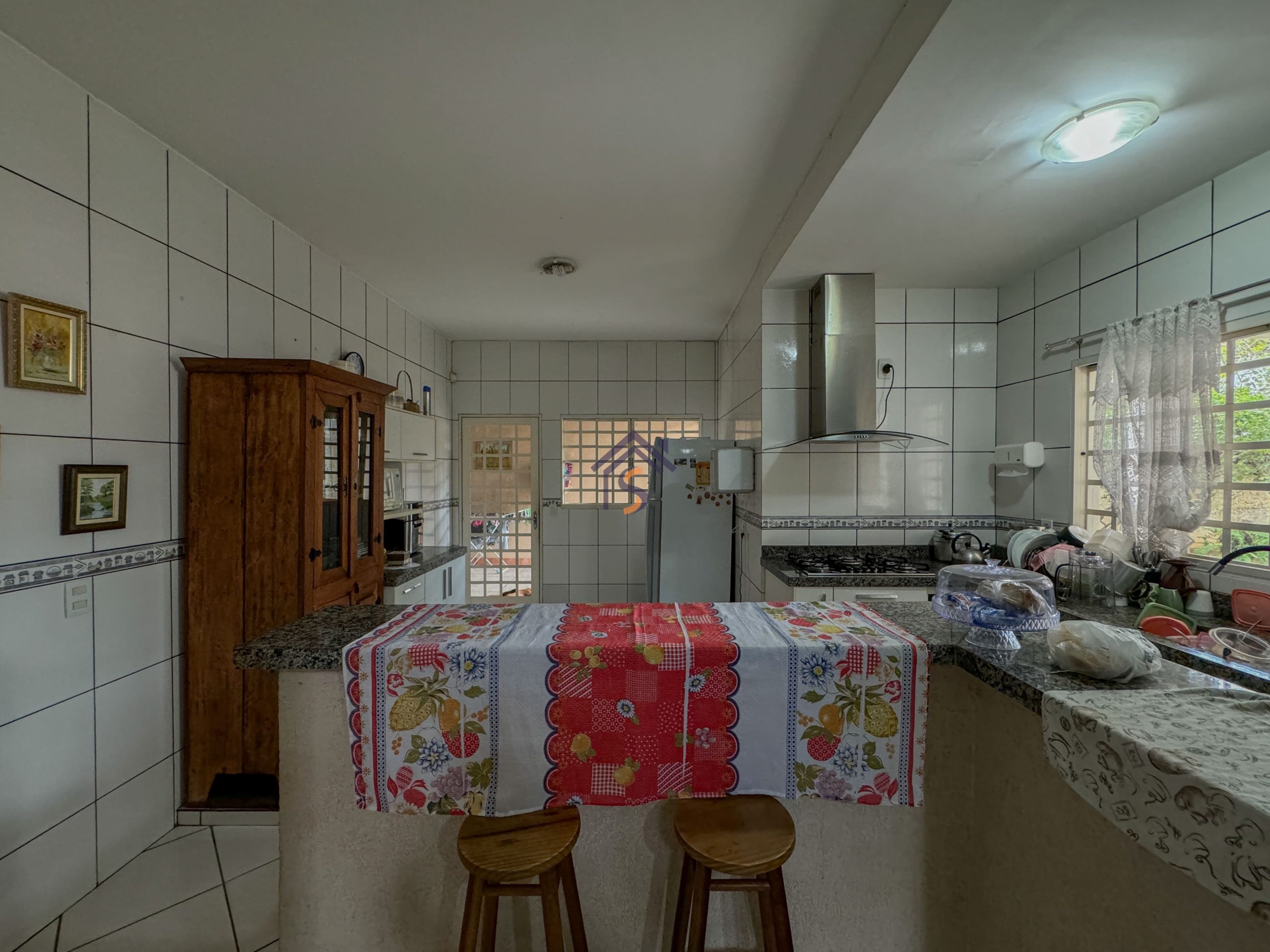Cozinha completa em armários planejados e cooktop, varanda gourmet com churrasqueira a carvão e cozinha externa de apoio, despensa, amplo quintal com piscina (porém está desativada), portão eletrônico, cerca elétrica com alarme.