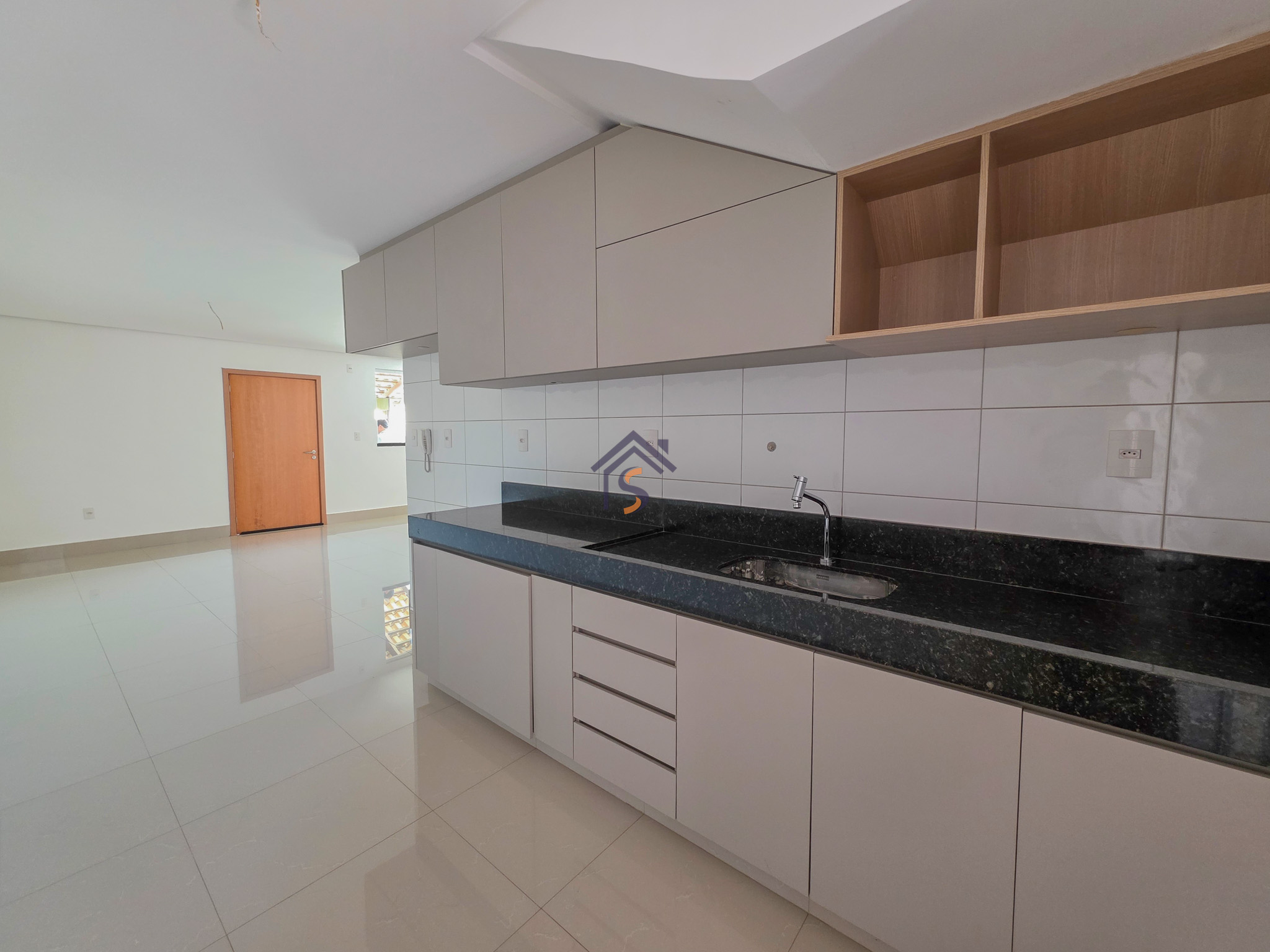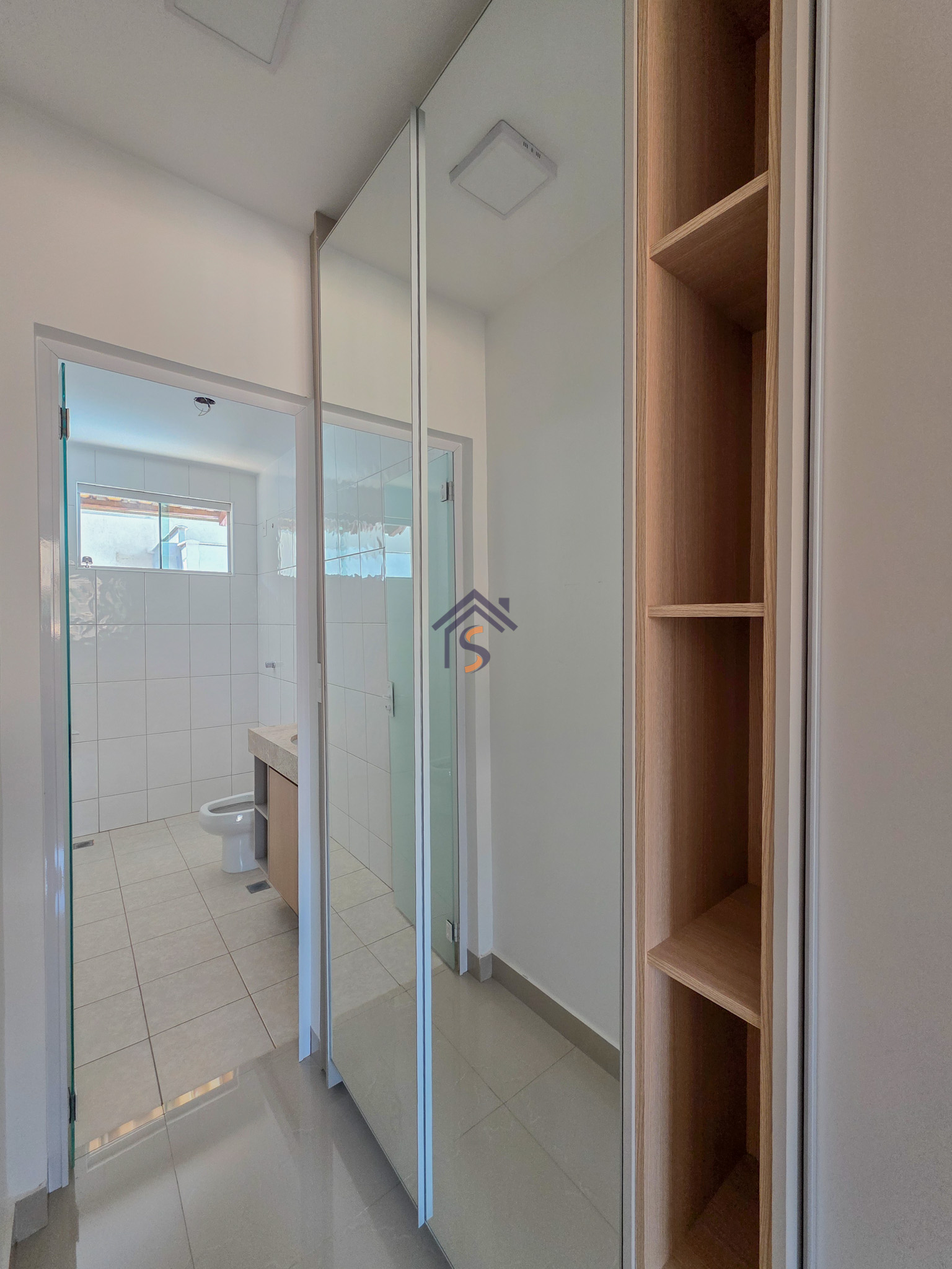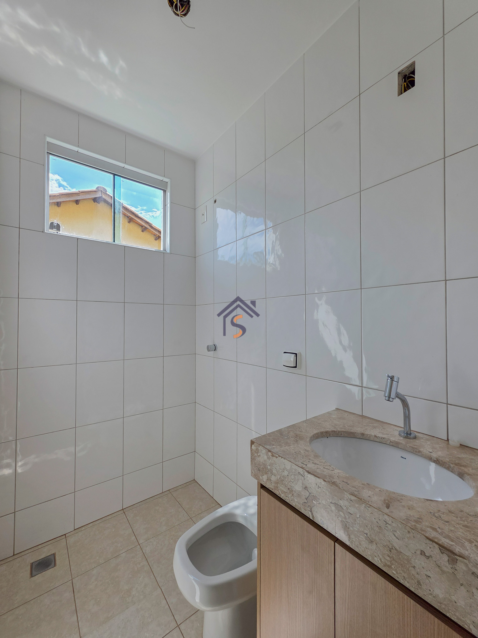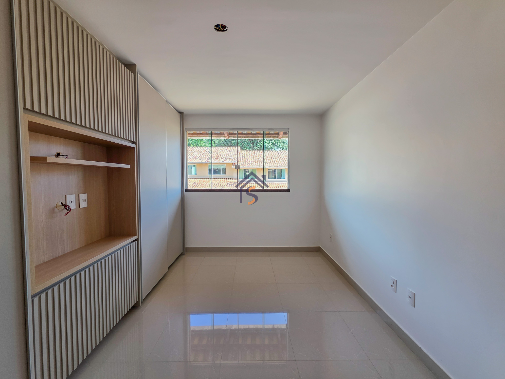 Acabamento sofisticado em alto padrão, rebaixamento de gesso com sanca invertida, cozinha com armários, dois quartos com armários, janelas em vidro temperado tipo blindex, porcelanato 60×60, peitoris das janelas em granito, escada em granito e corrimão de aço inox, previsão para ar-condicionado tipo split nas suítes.