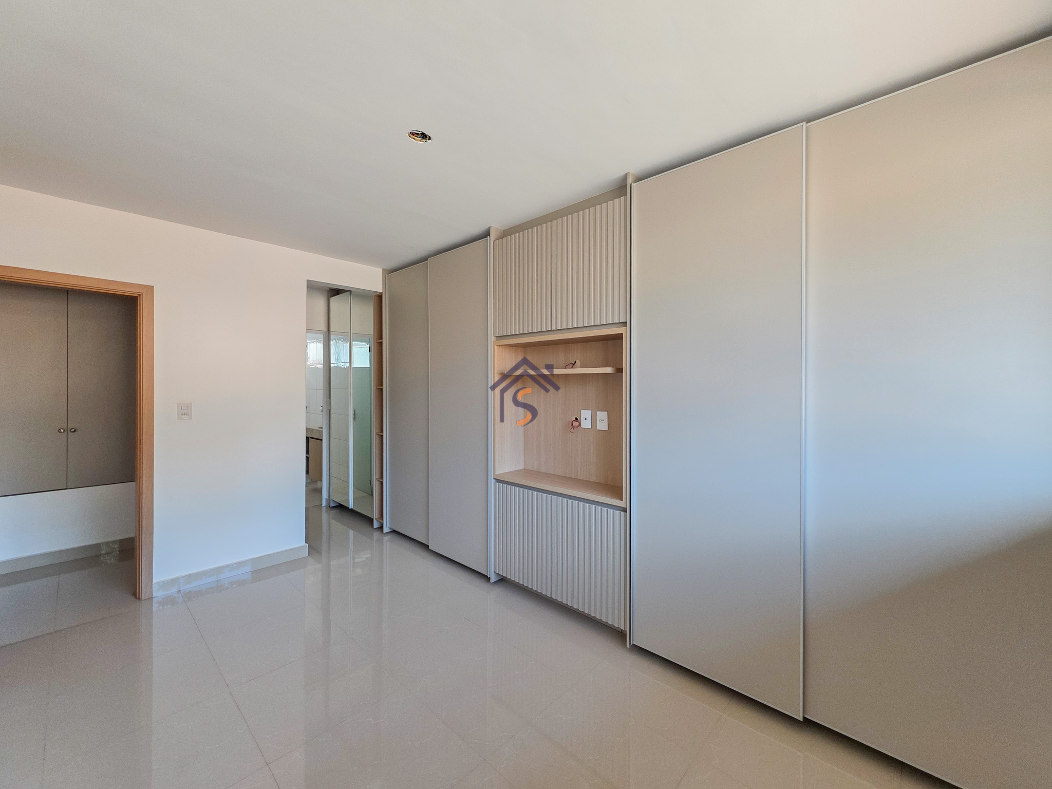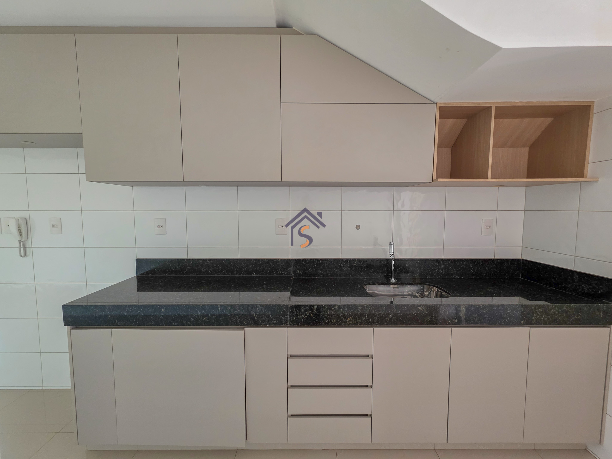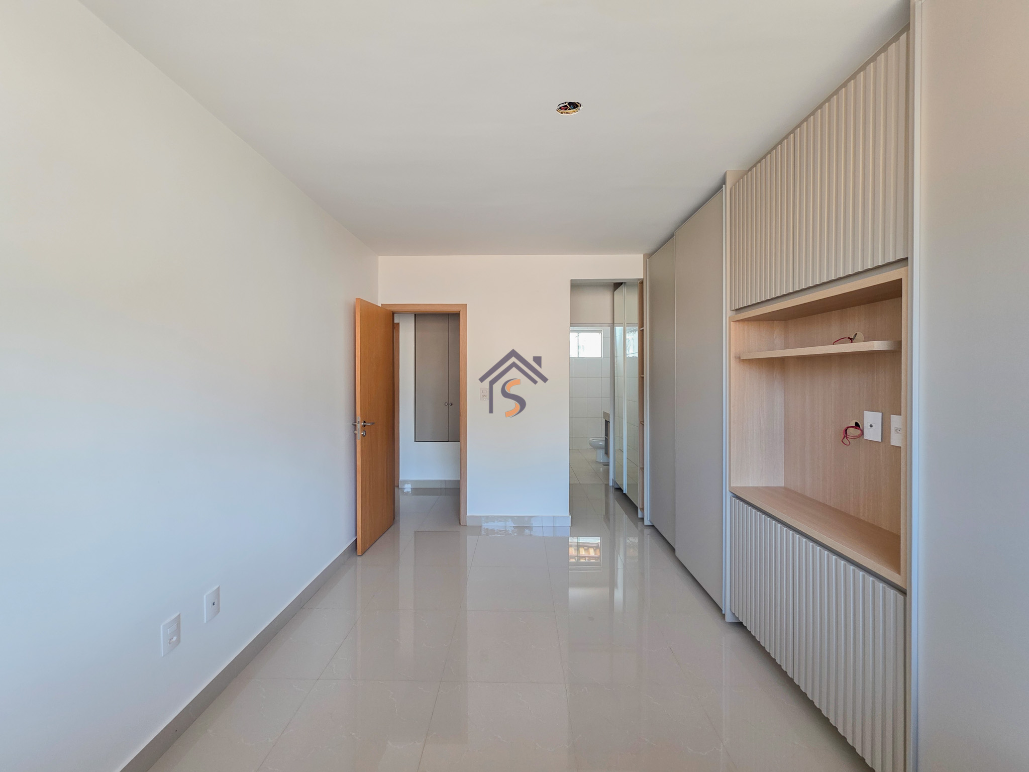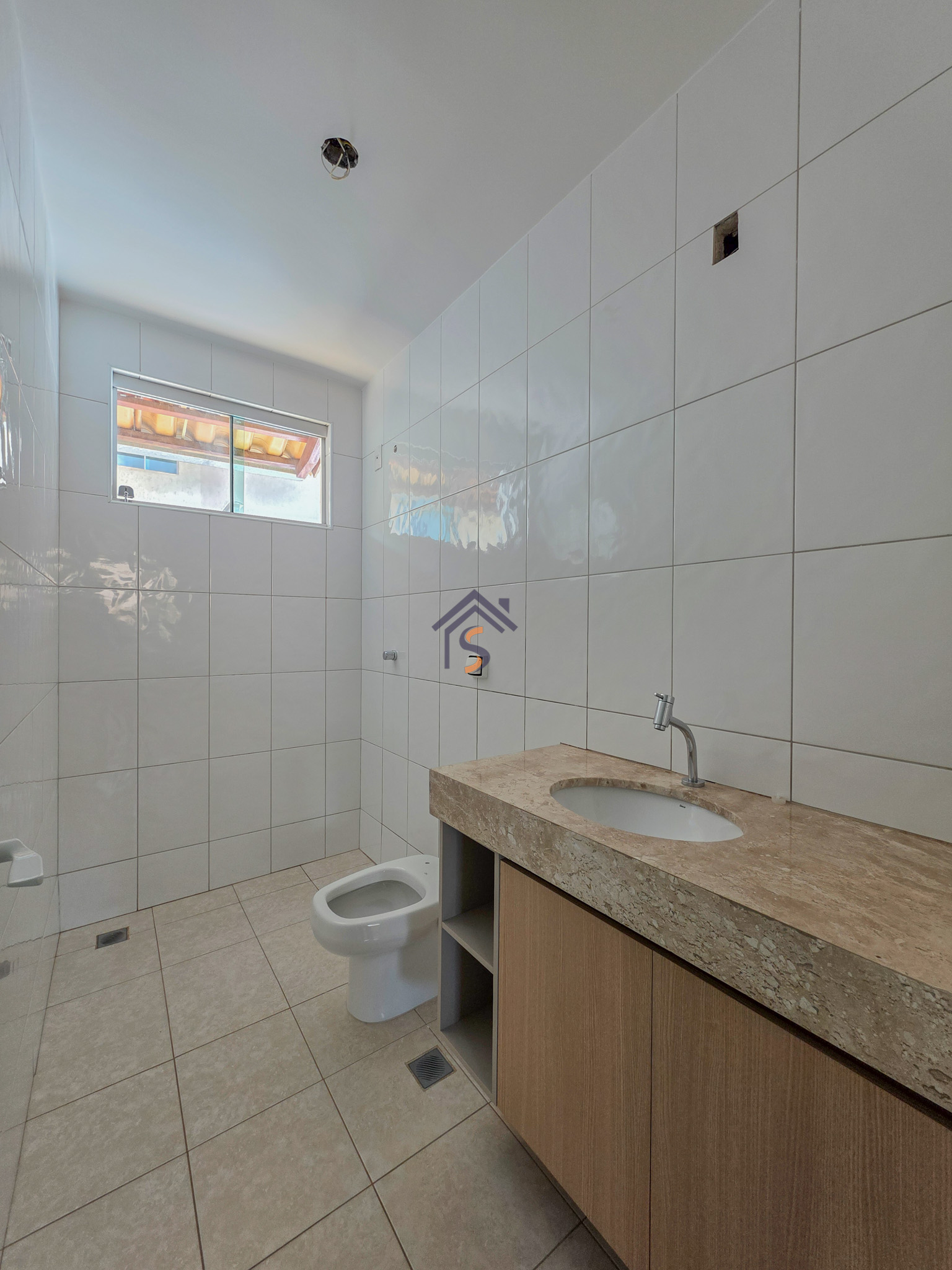 Acabamento sofisticado em alto padrão, rebaixamento de gesso com sanca invertida, cozinha com armários, dois quartos com armários, janelas em vidro temperado tipo blindex, porcelanato 60×60, peitoris das janelas em granito, escada em granito e corrimão de aço inox, previsão para ar-condicionado tipo split nas suítes.