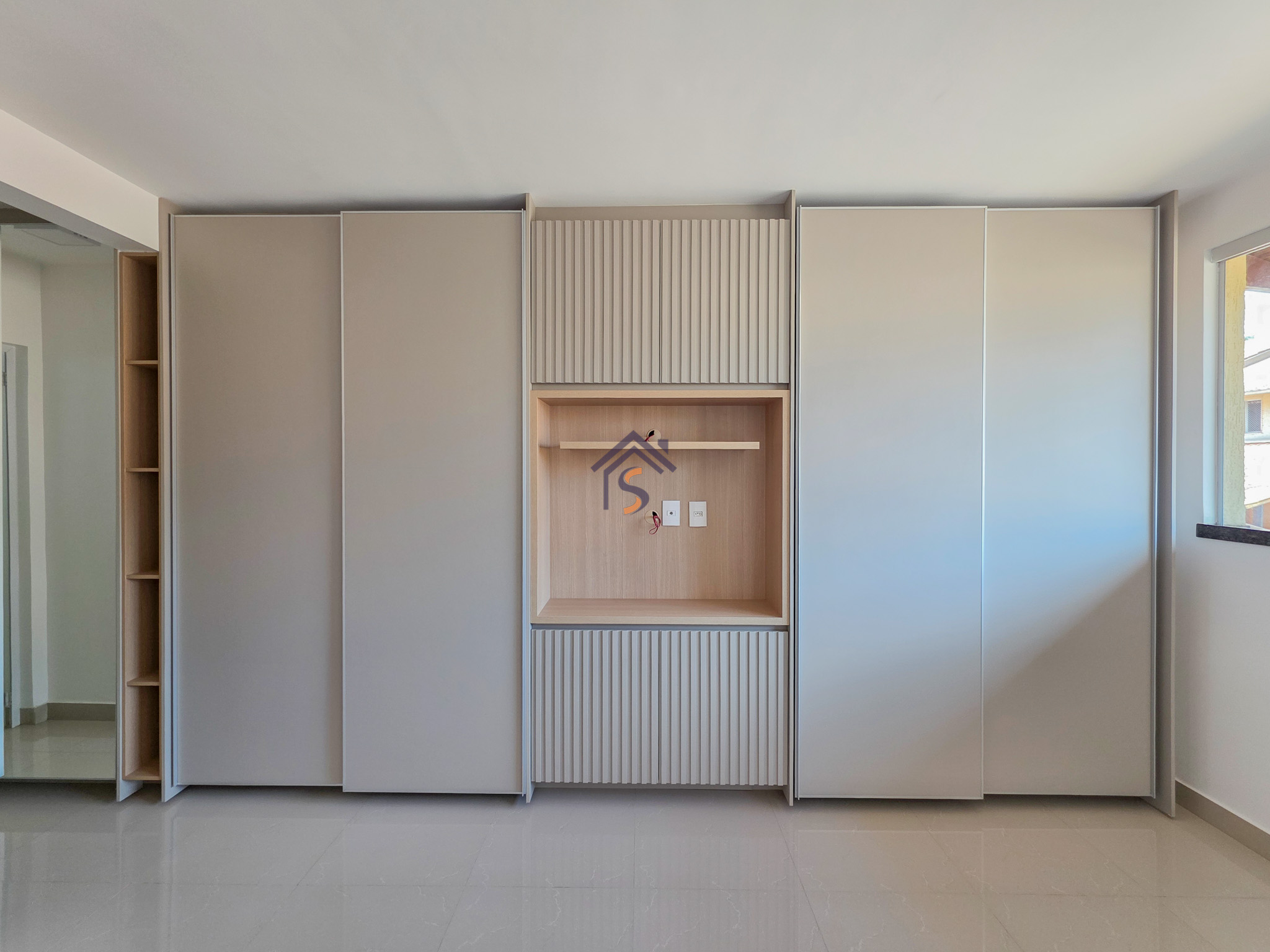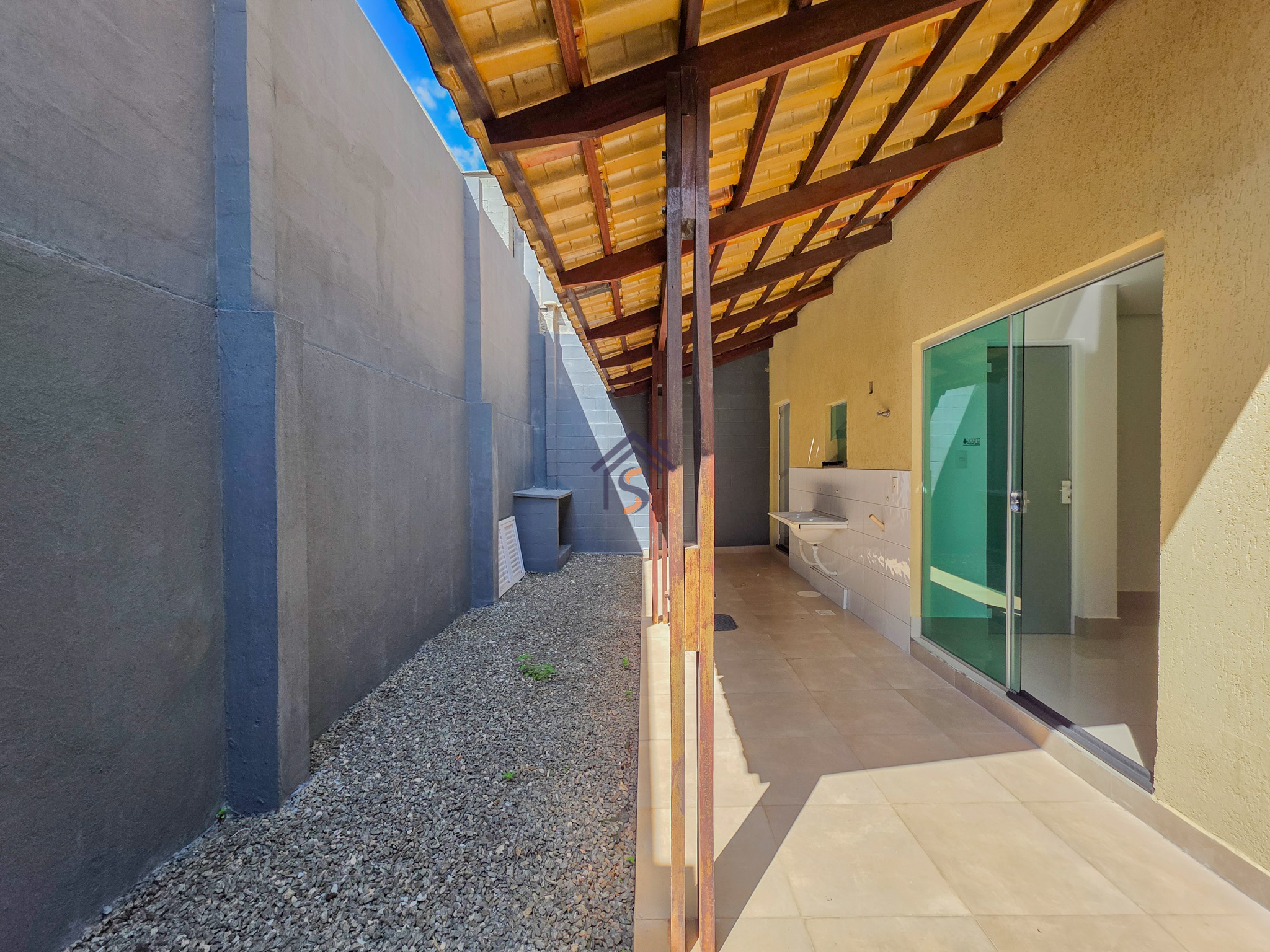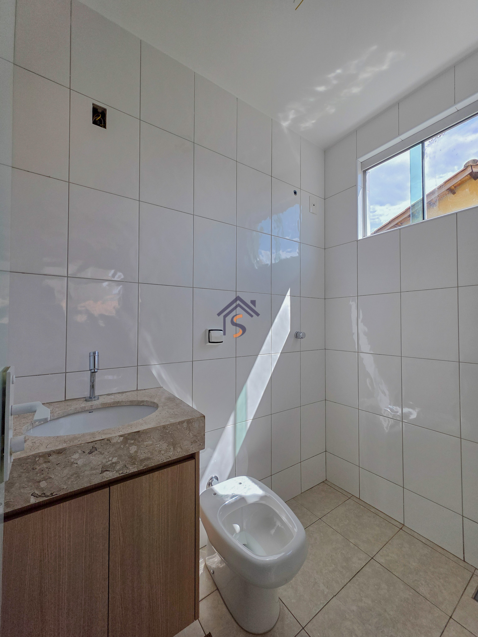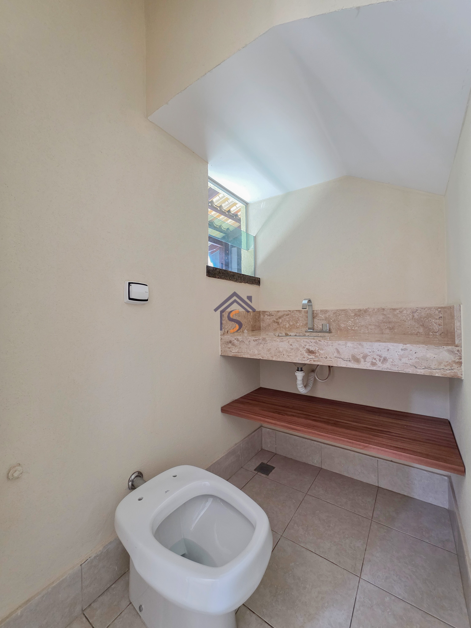 Acabamento sofisticado em alto padrão, rebaixamento de gesso com sanca invertida, cozinha com armários, dois quartos com armários, janelas em vidro temperado tipo blindex, porcelanato 60×60, peitoris das janelas em granito, escada em granito e corrimão de aço inox, previsão para ar-condicionado tipo split nas suítes.