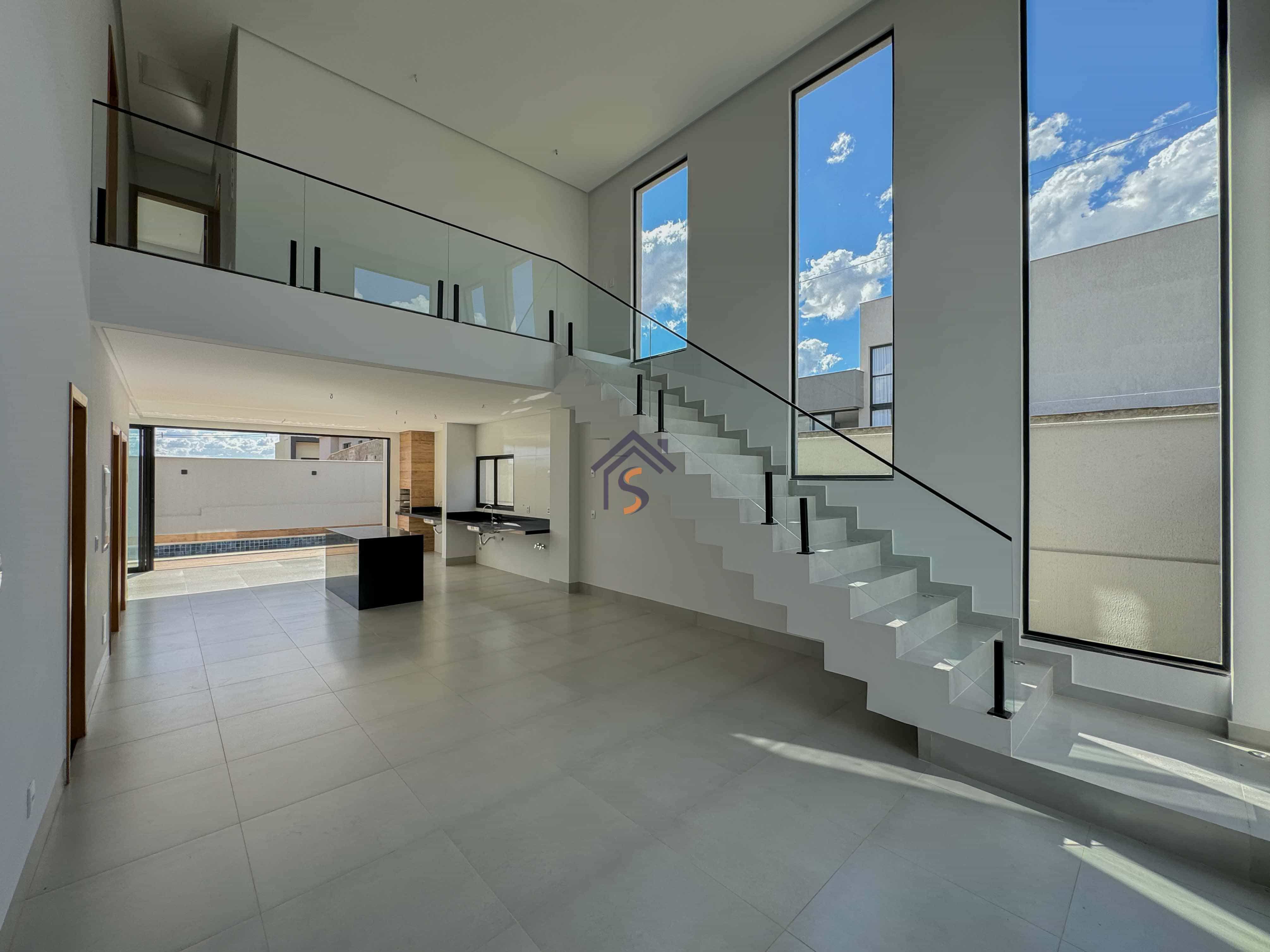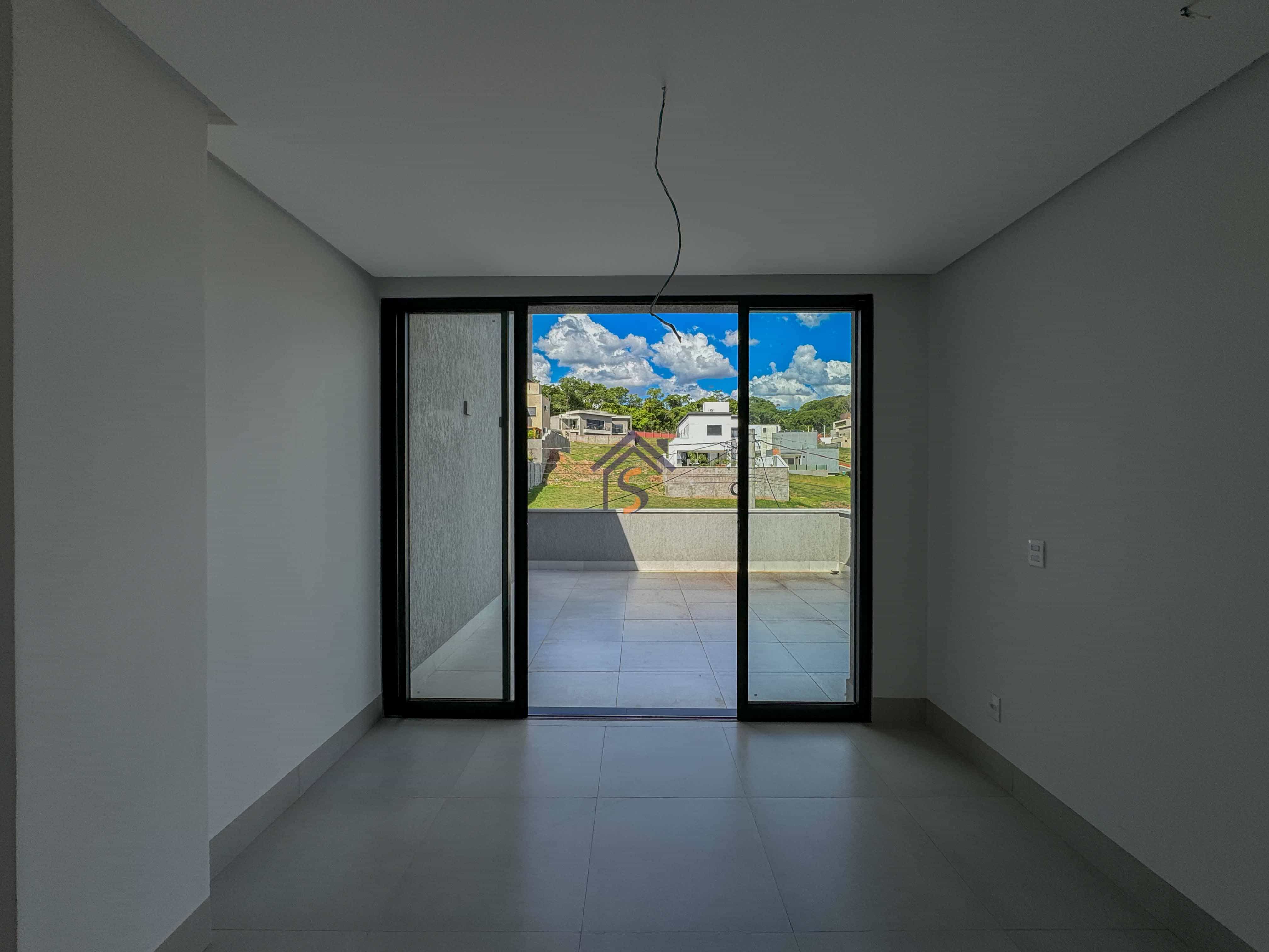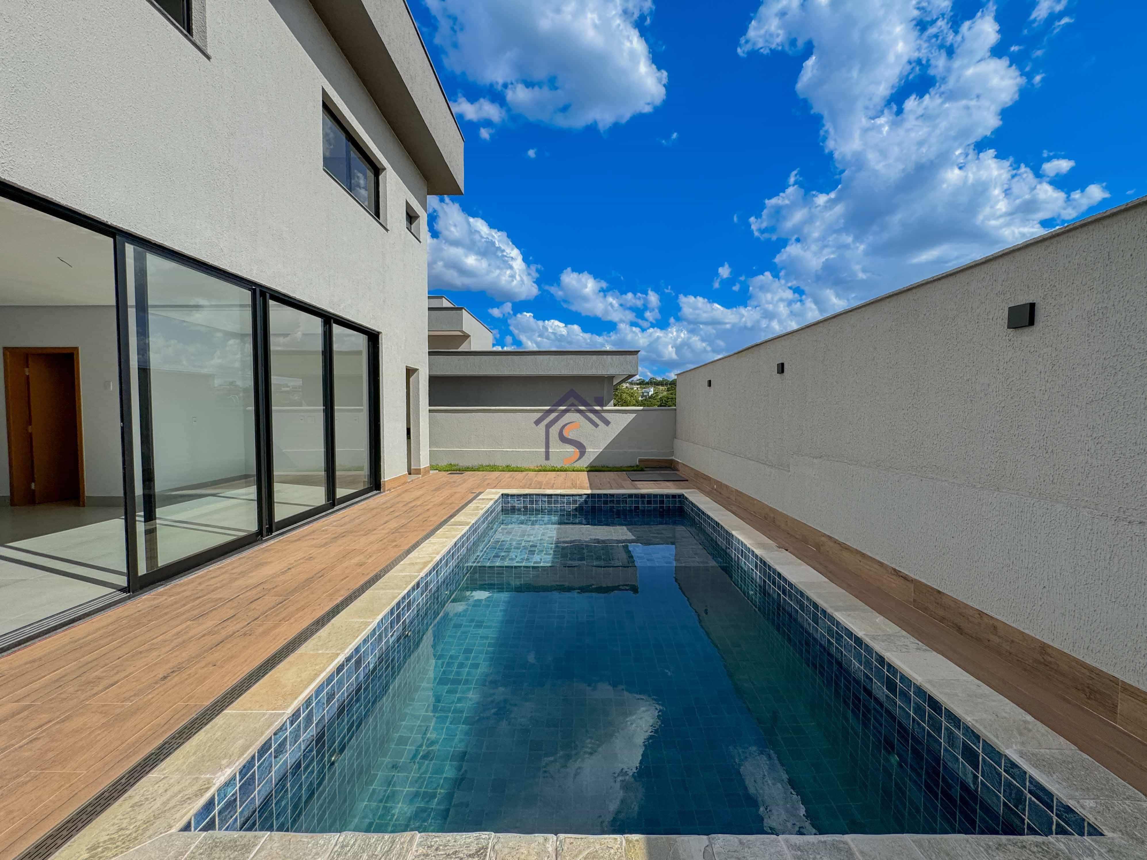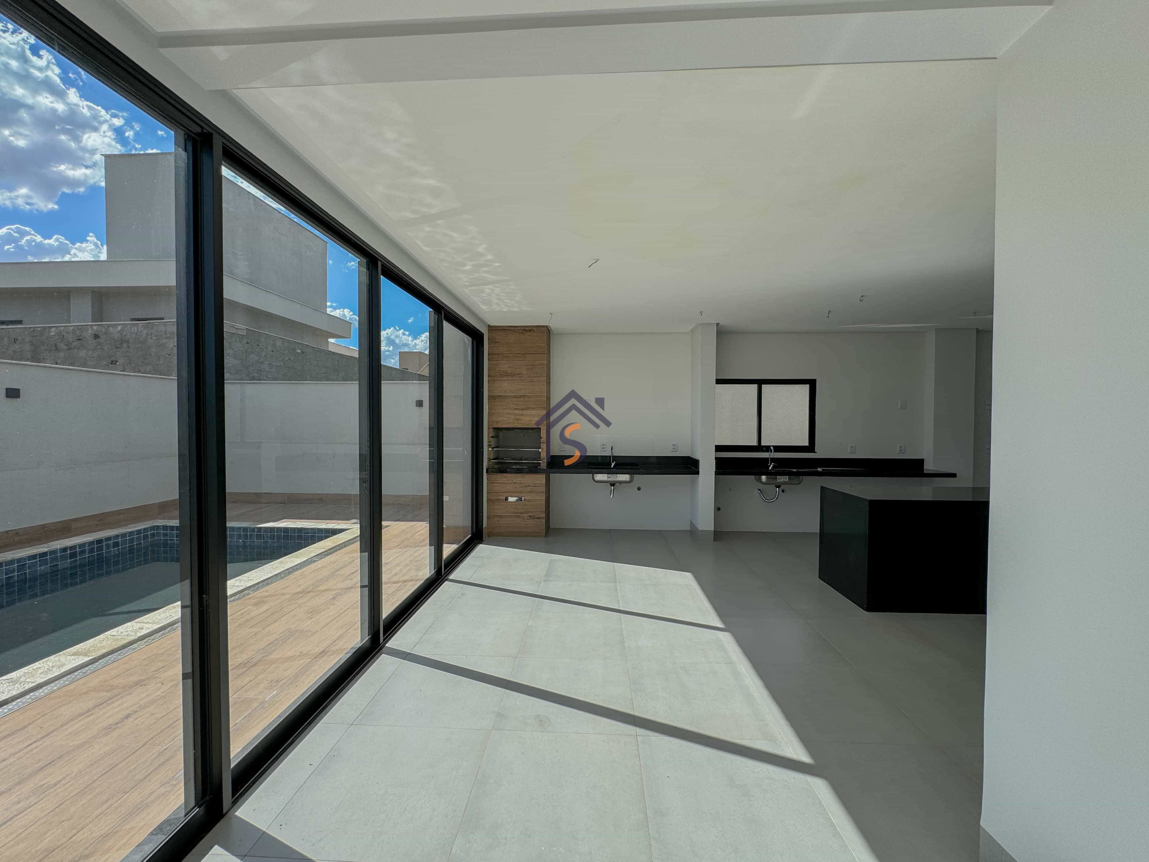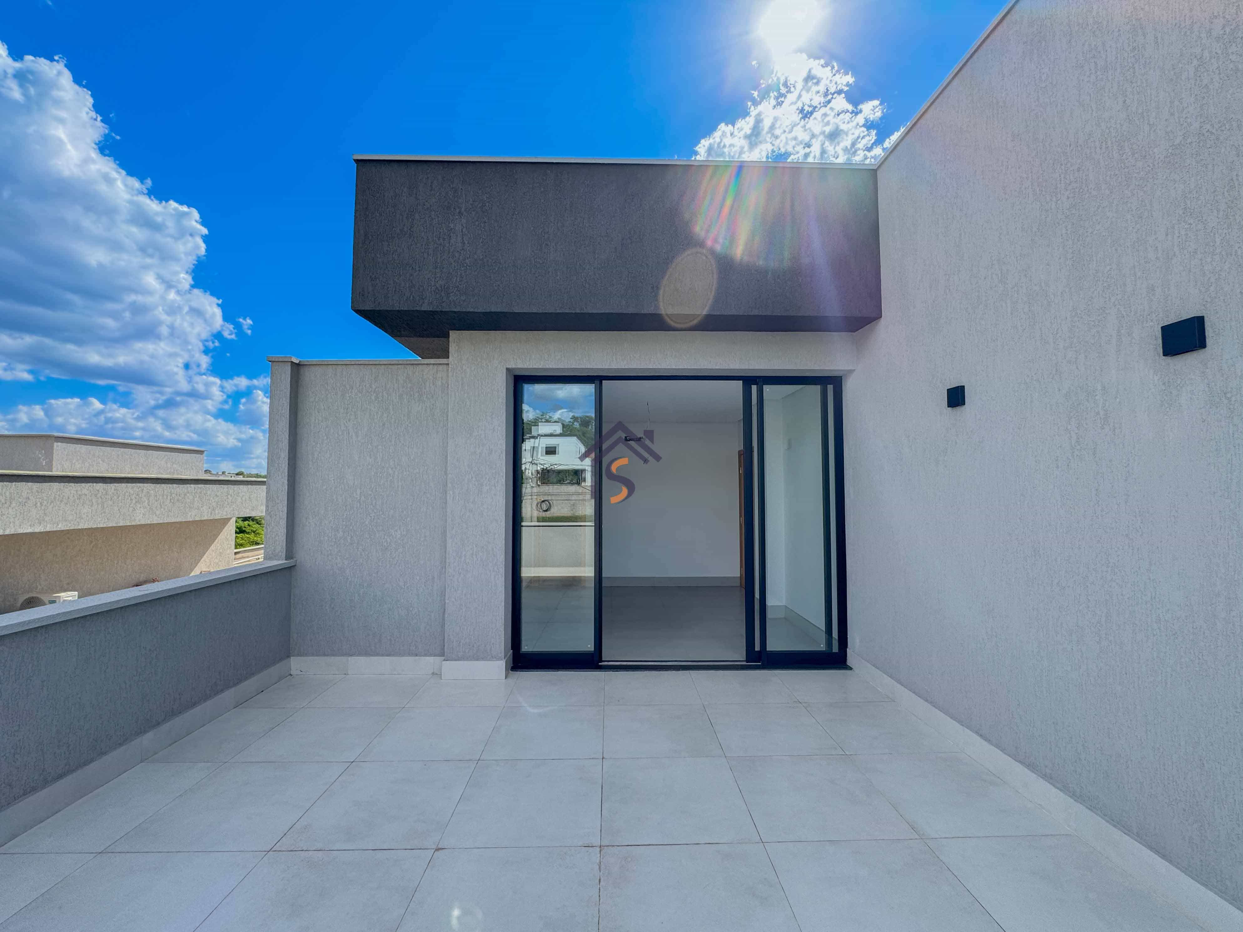Sobrado em condomínio com quatro suítes plenas, sendo uma suíte máster com espaço para closet, sala de estar e sala de jantar ampla, lavabo, cozinha, piscina, área de serviço coberta, quatro vagas de garagens, sendo duas vagas cobertas.