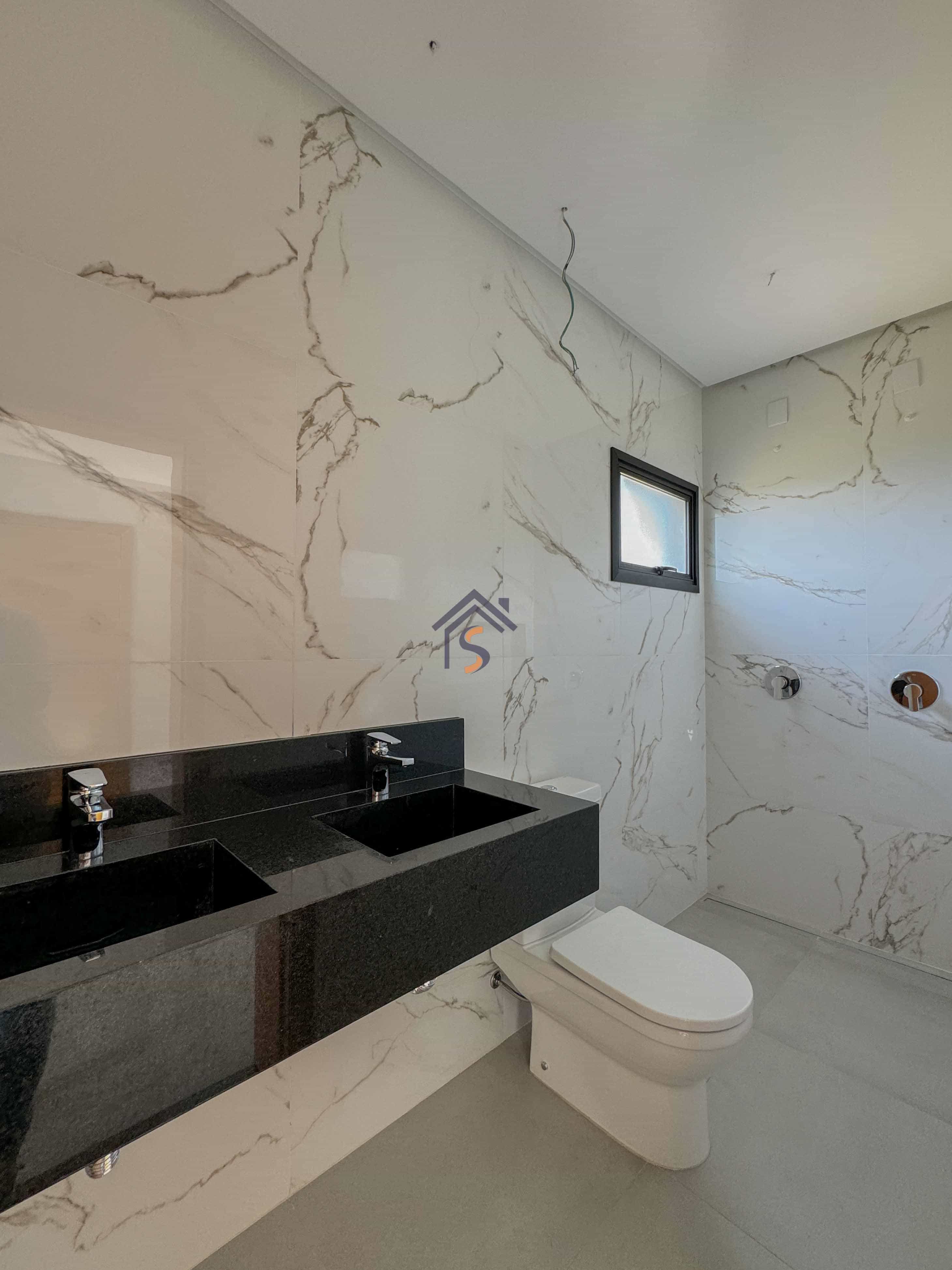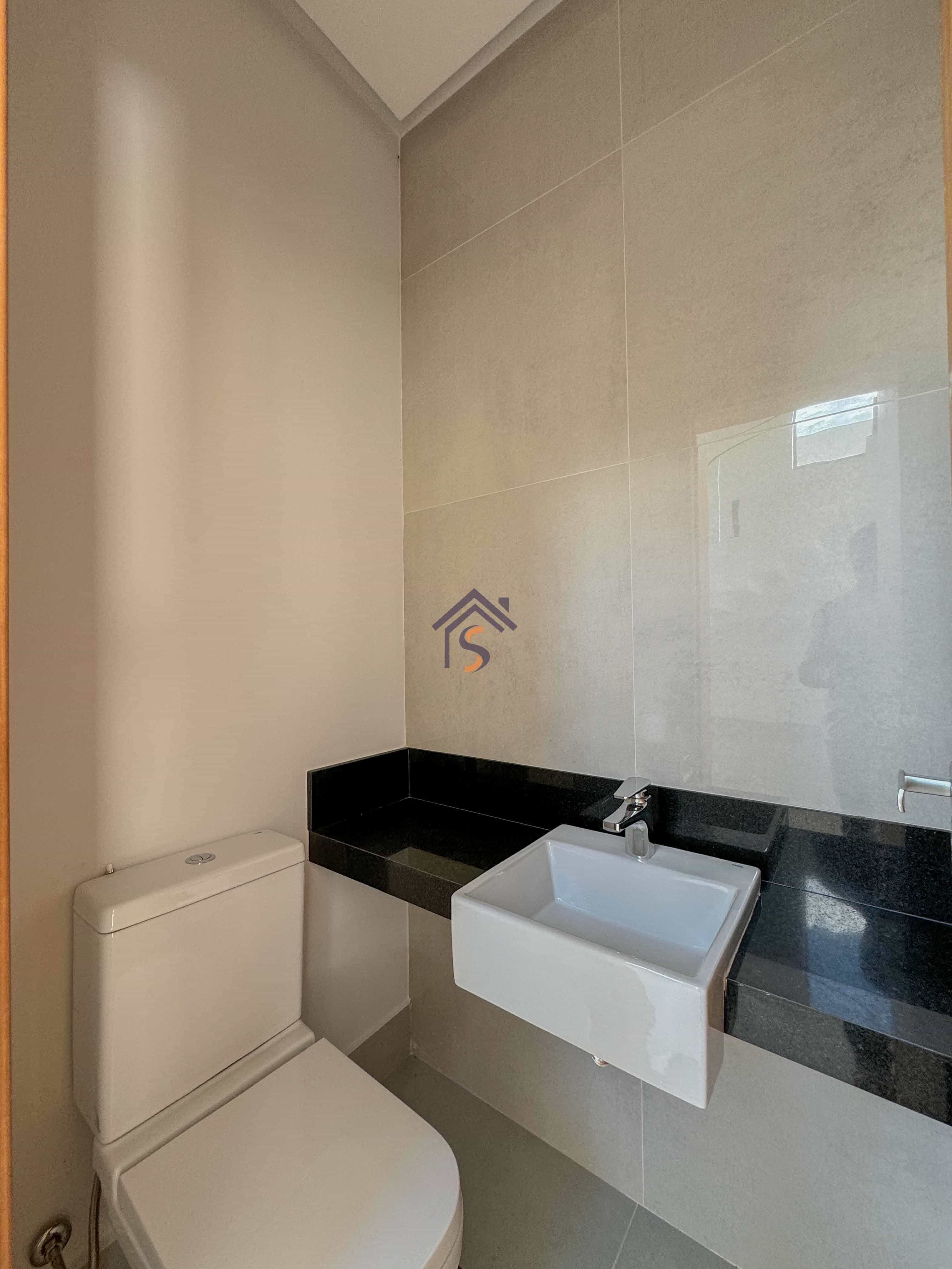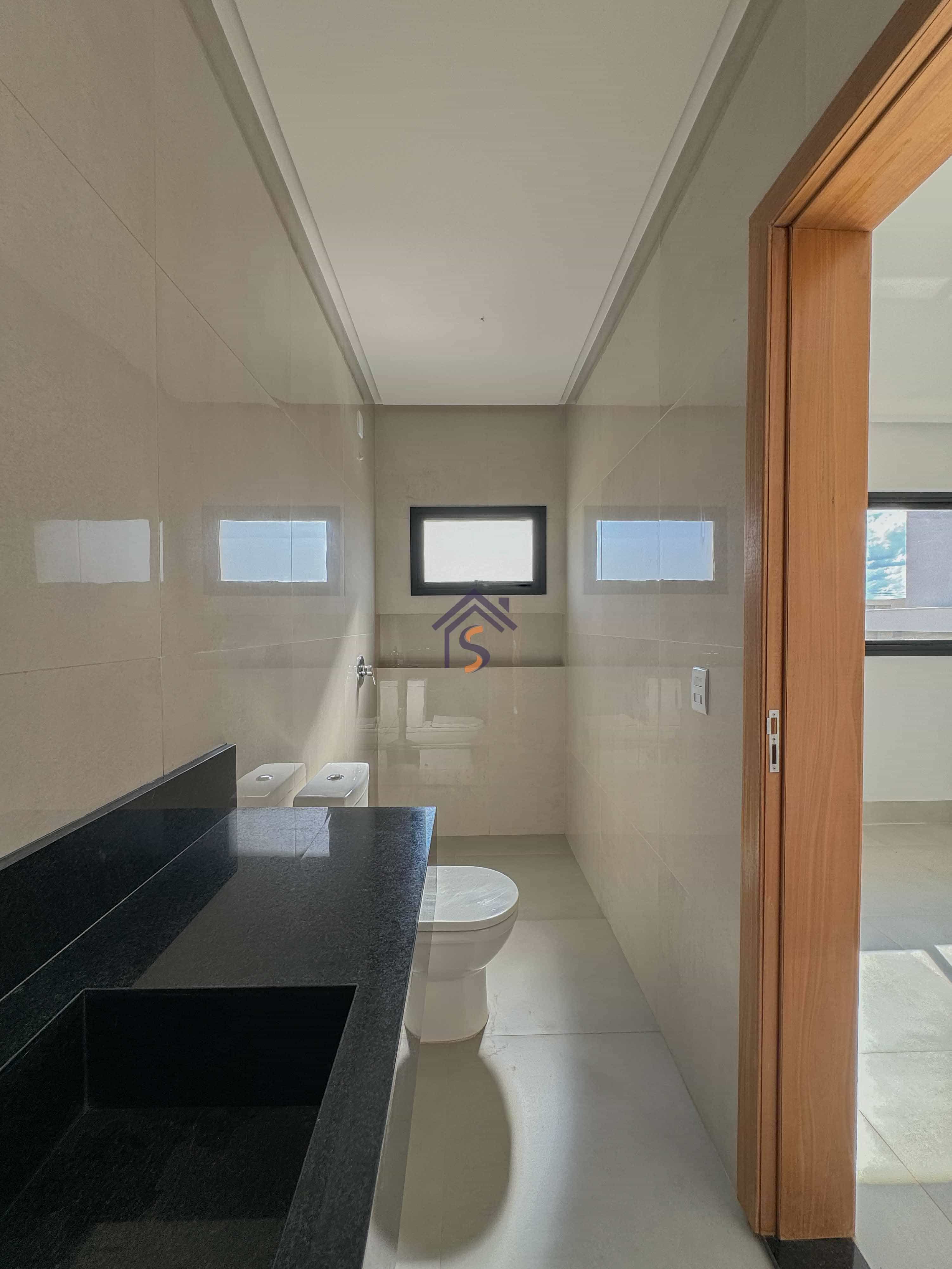 Acabamento sofisticado em alto padrão, com piscina moderna com revestimento Hijau azul com Deck molhado e Deck seco, esquadrias na cor preta linha Supreme, louças e metais premium deca e docol, todas as torneiras misturador monocomando prontas para receber água quente e fria na cozinha, área gourmet e banheiros, revestimento em porcelanato Delta e Calacata, bancadas da cozinha e ilha gourmet em pedra Preto São Gabriel, bancadas dos banheiros em pedra esculpida preto São Gabriel, fachada moderna com vidros e na posição nascente, churrasqueira à carvão na área gourmet, sistema de iluminação em Led na garagem, paisagismo na frente e nas laterais da casa.