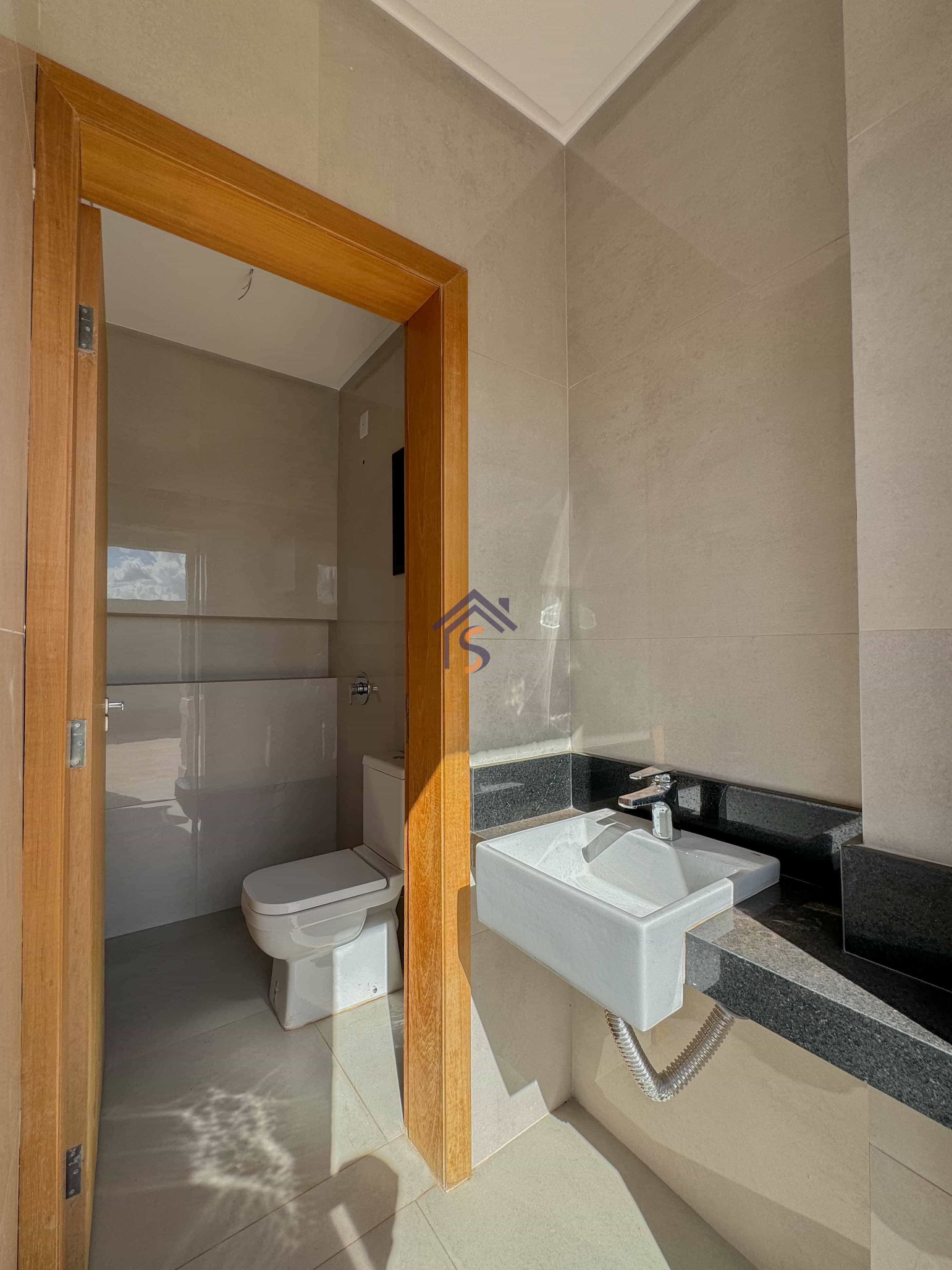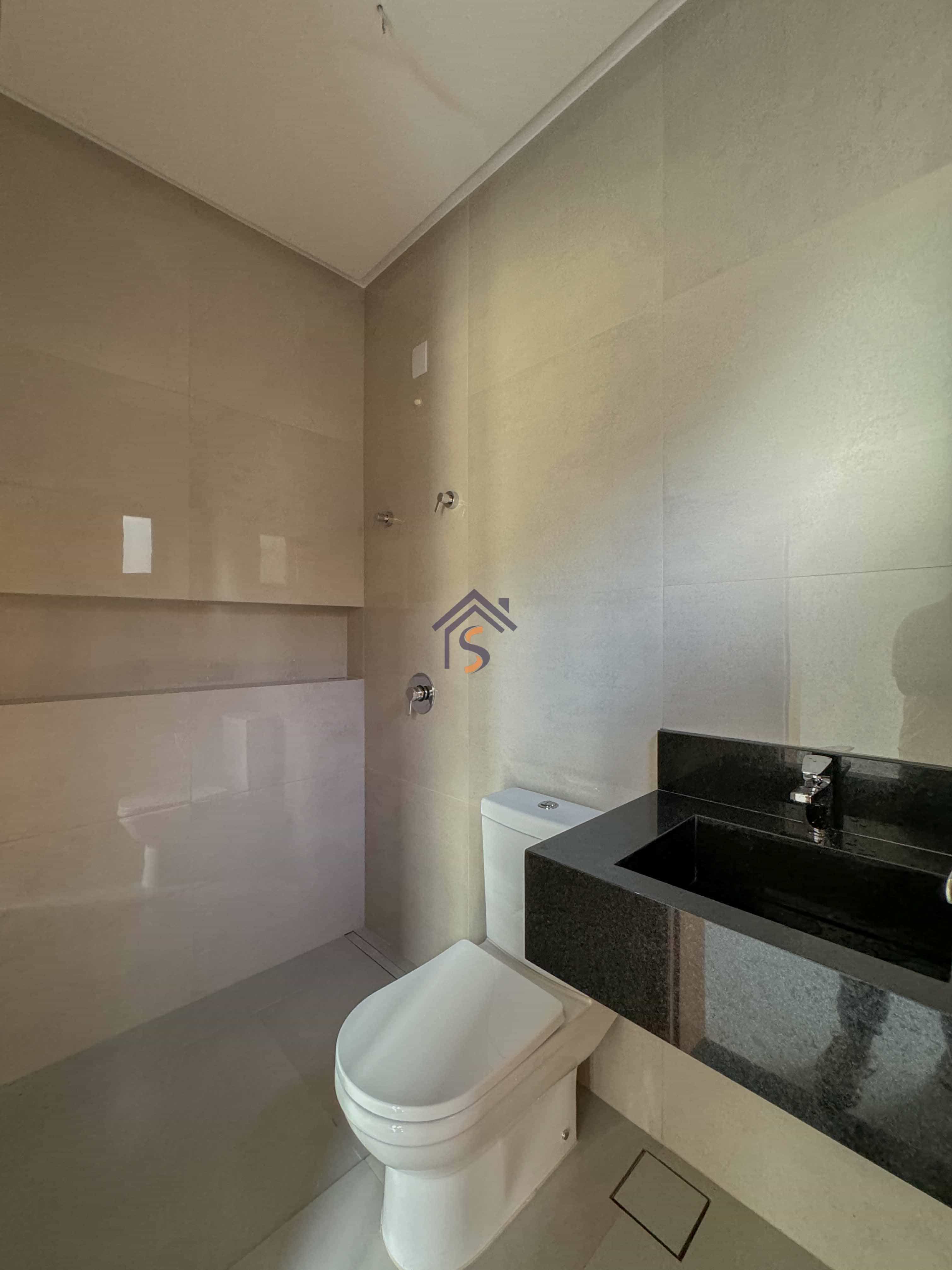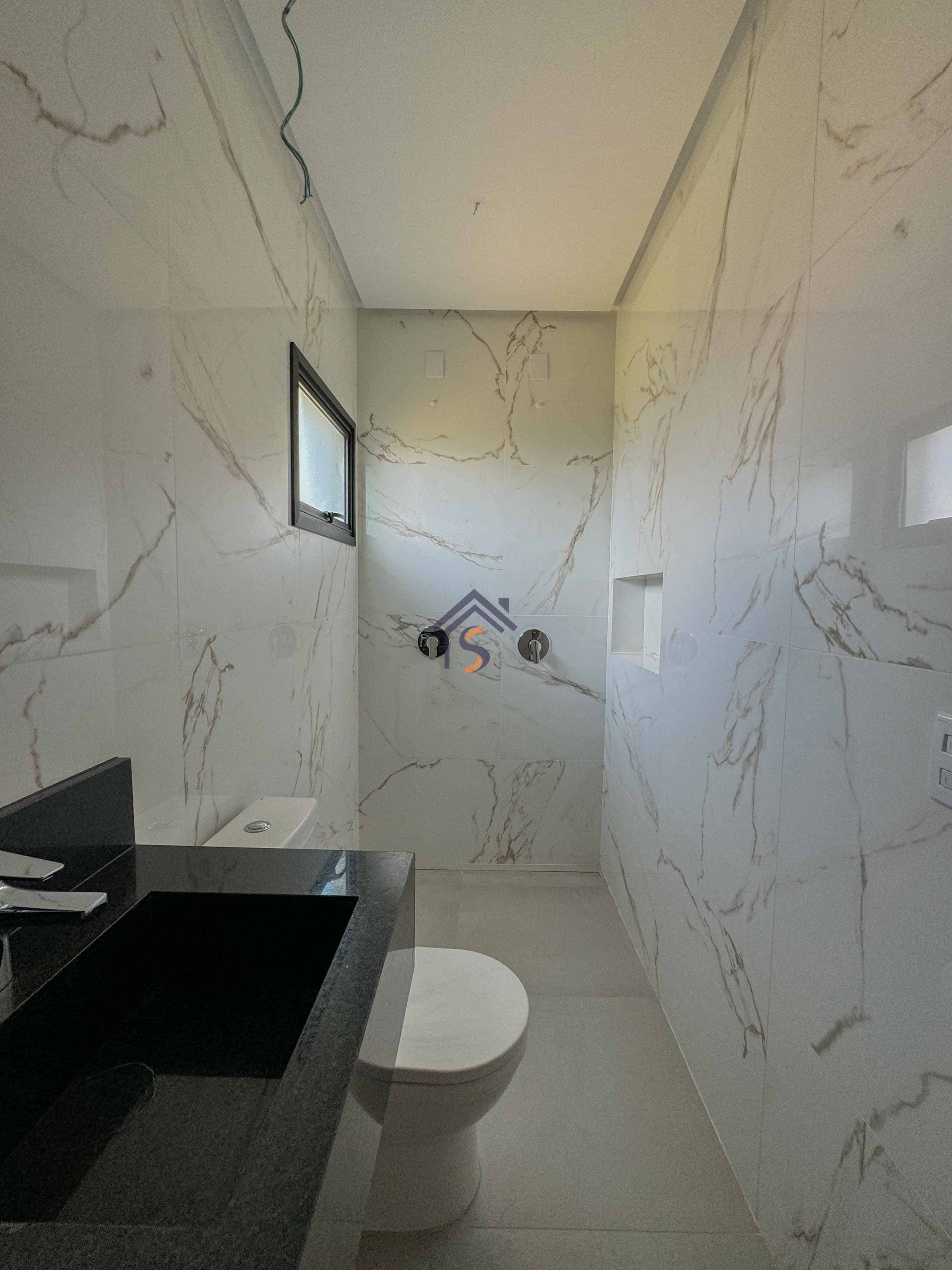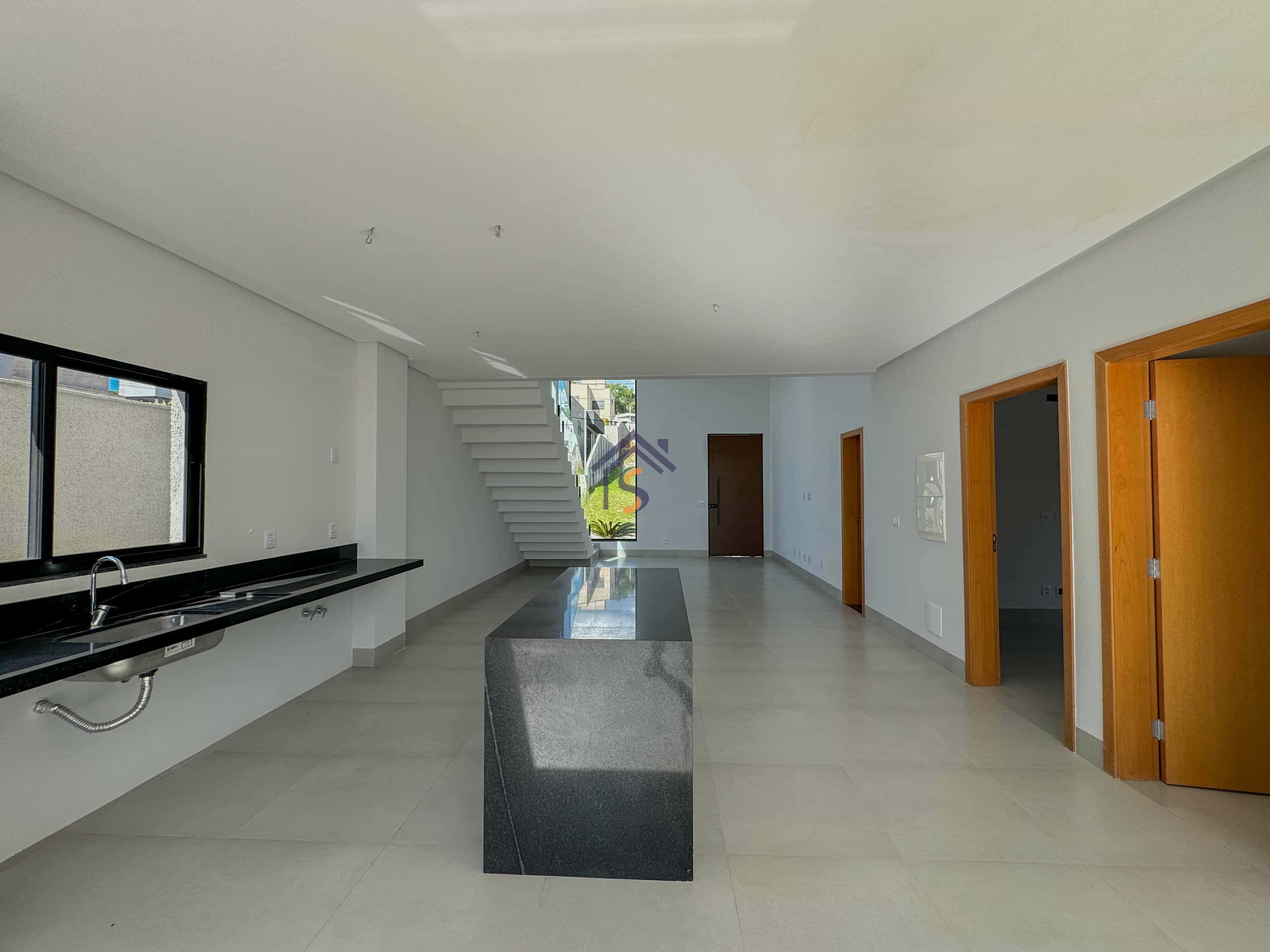 Acabamento sofisticado em alto padrão, com piscina moderna com revestimento Hijau azul com Deck molhado e Deck seco, esquadrias na cor preta linha Supreme, louças e metais premium deca e docol, todas as torneiras misturador monocomando prontas para receber água quente e fria na cozinha, área gourmet e banheiros, revestimento em porcelanato Delta e Calacata, bancadas da cozinha e ilha gourmet em pedra Preto São Gabriel, bancadas dos banheiros em pedra esculpida preto São Gabriel, fachada moderna com vidros e na posição nascente, churrasqueira à carvão na área gourmet, sistema de iluminação em Led na garagem, paisagismo na frente e nas laterais da casa.