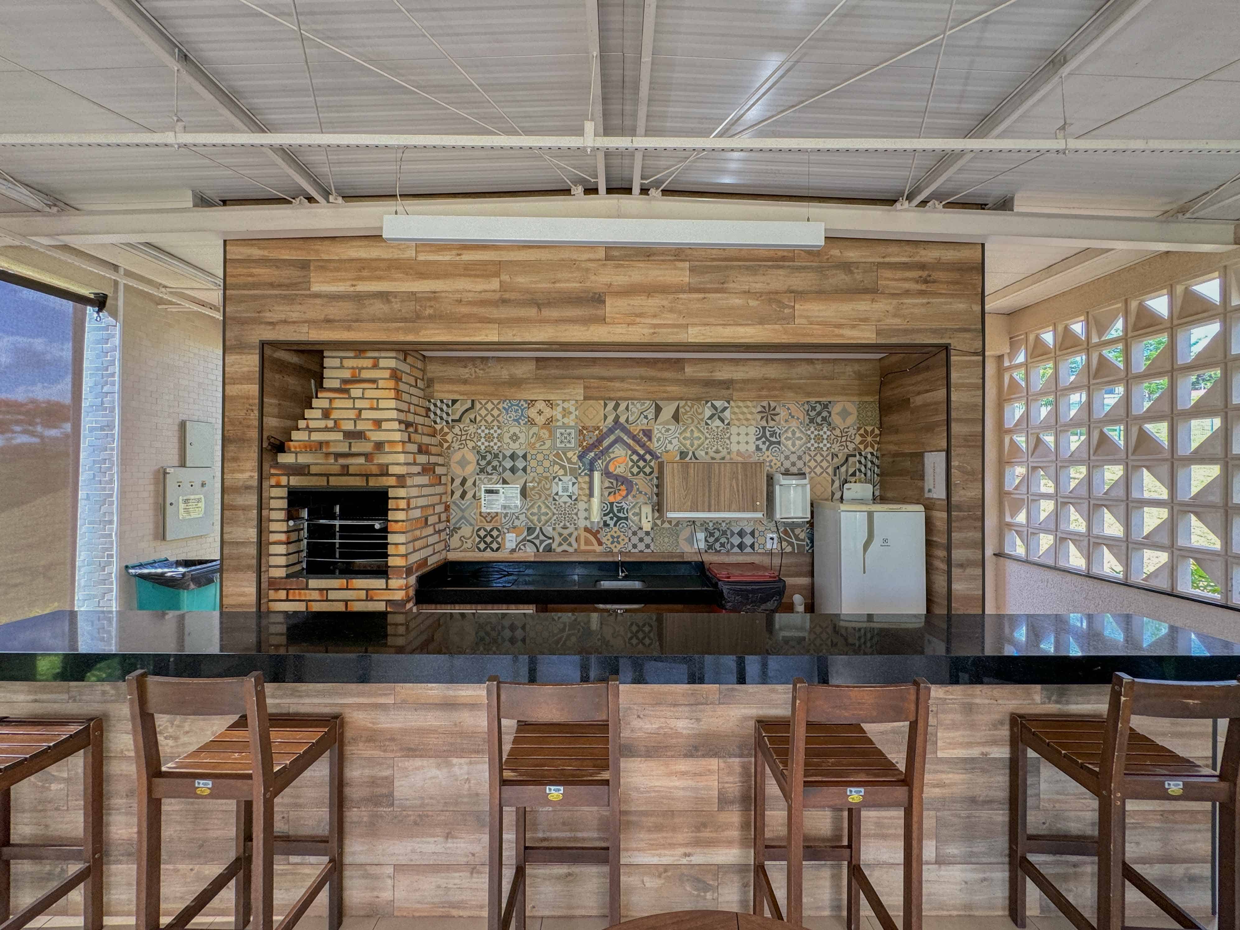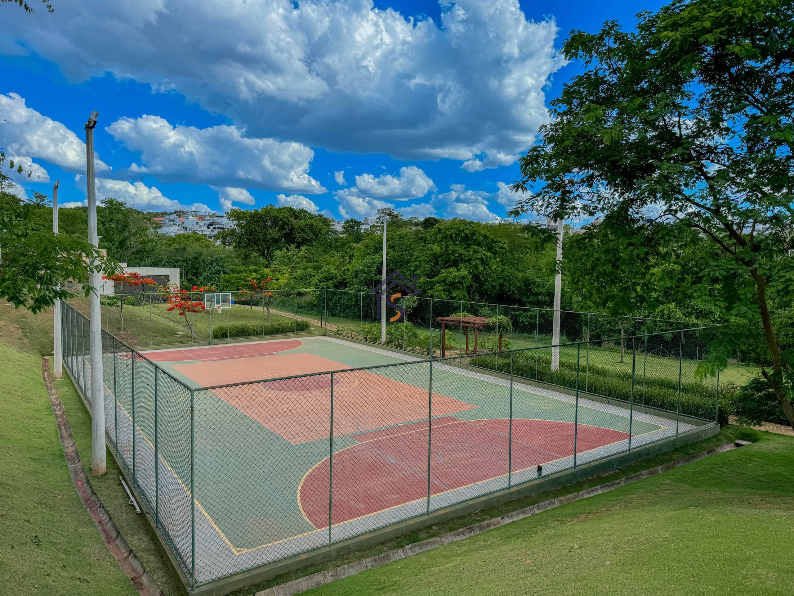Área de lazer completa com salão de festas, um campo de futebol society, uma quadra de areia, uma quadra poliesportiva, playground.