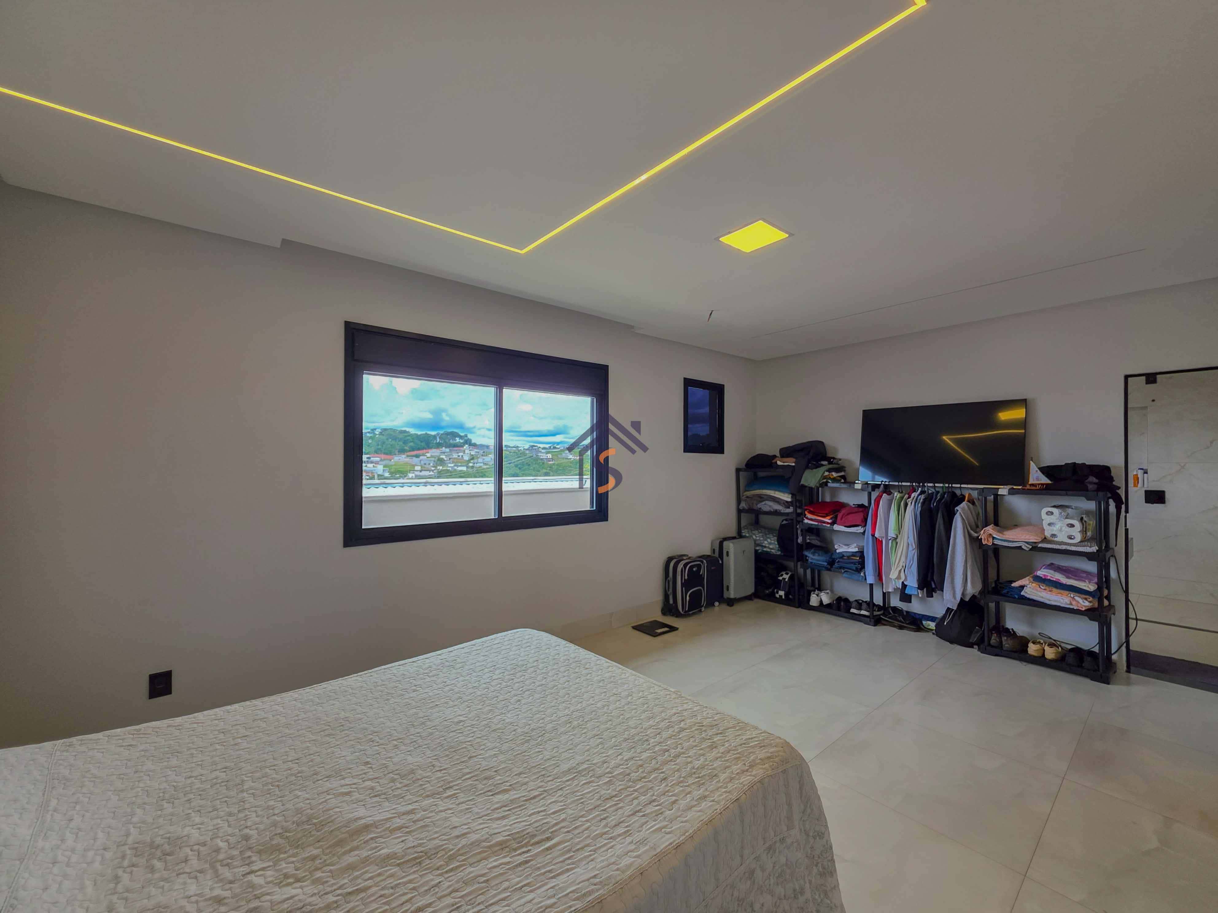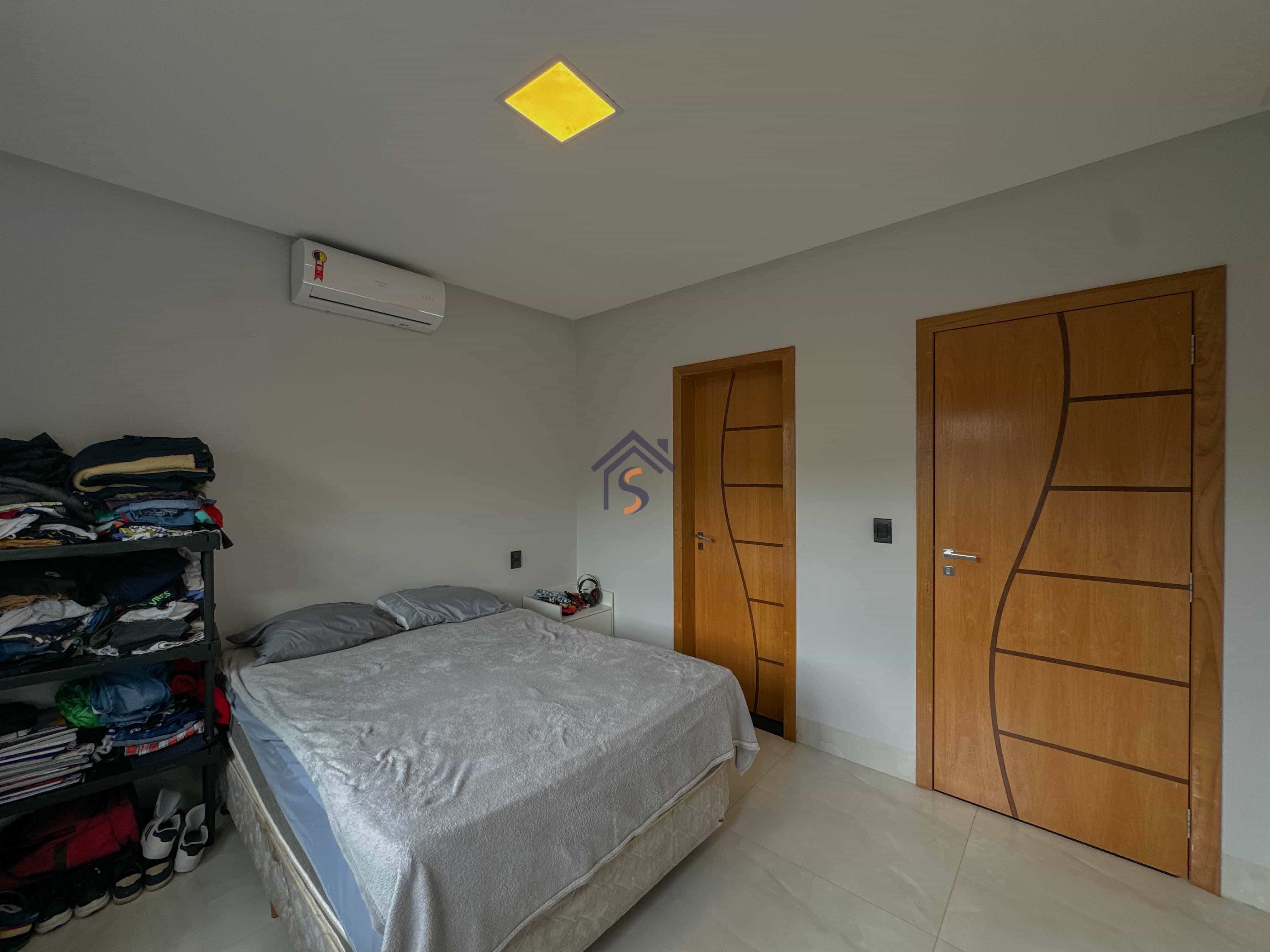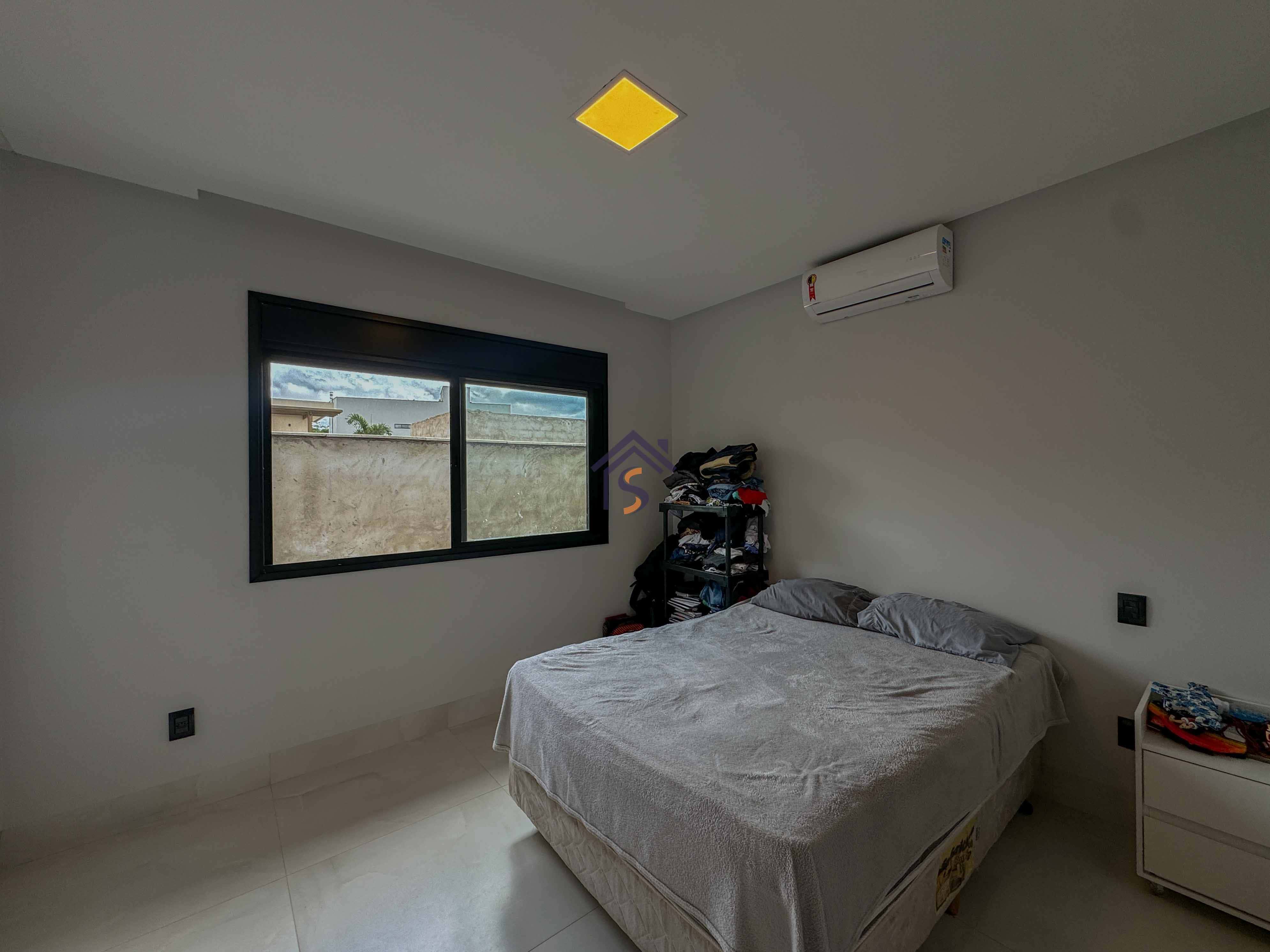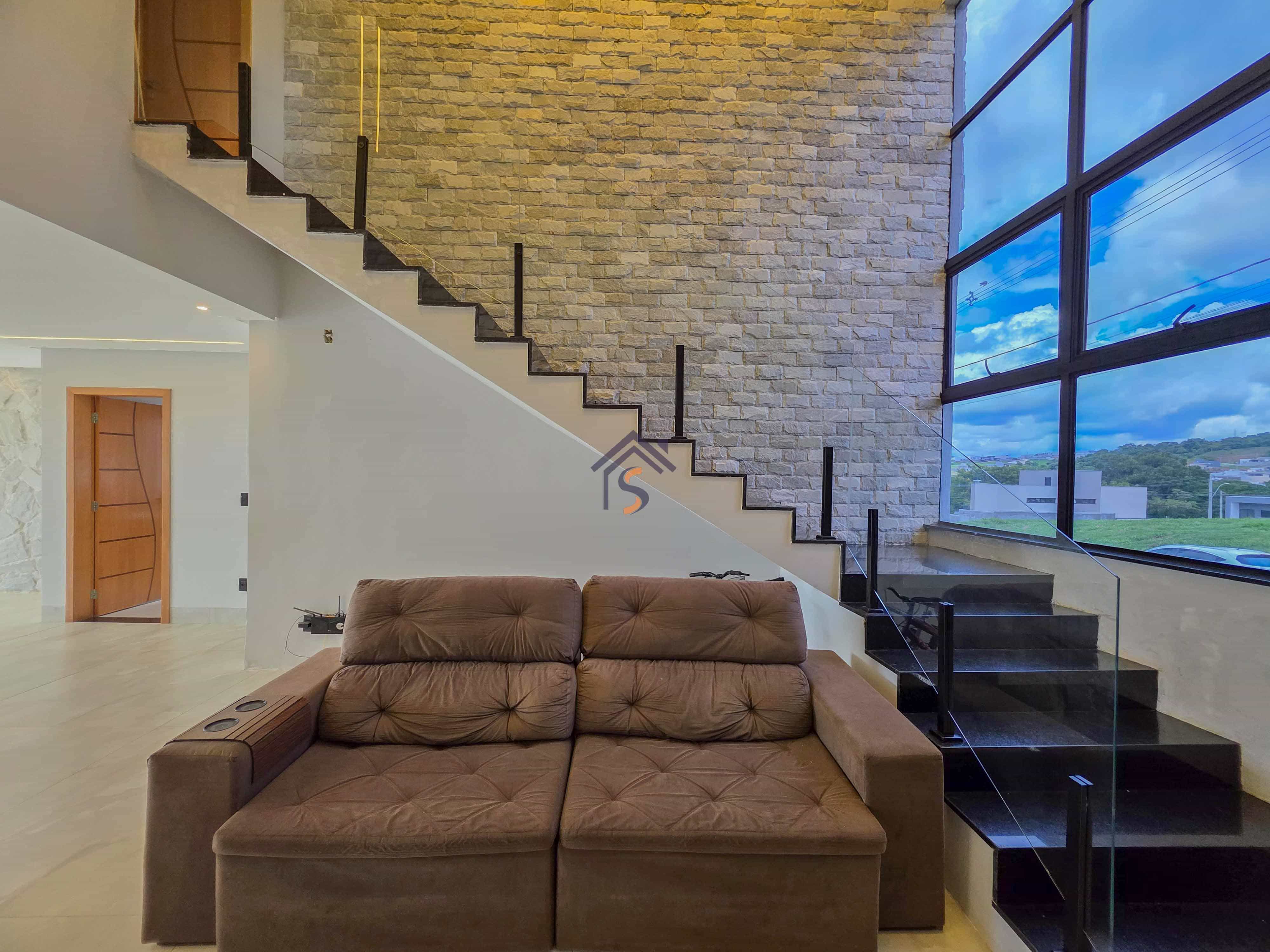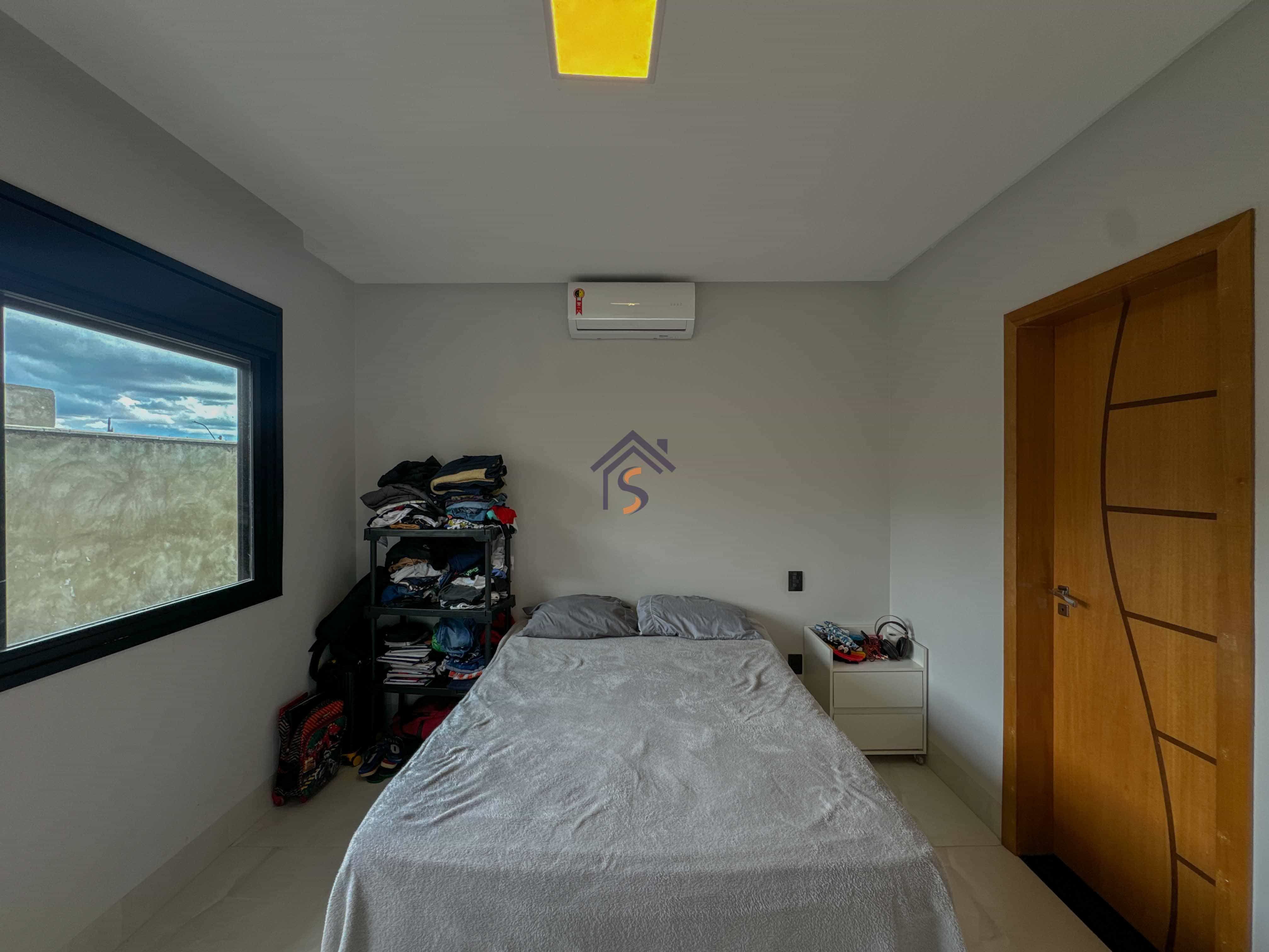 Sobrado em condomínio com quatro suítes plenas, sendo uma suíte máster com banheira, sala de estar e sala de jantar ampla, lavabo, cozinha, piscina com hidromassagem, escritório reversível para quarto no térreo, despensa com área de serviço coberta, quatro vagas de garagens, sendo duas vagas cobertas.