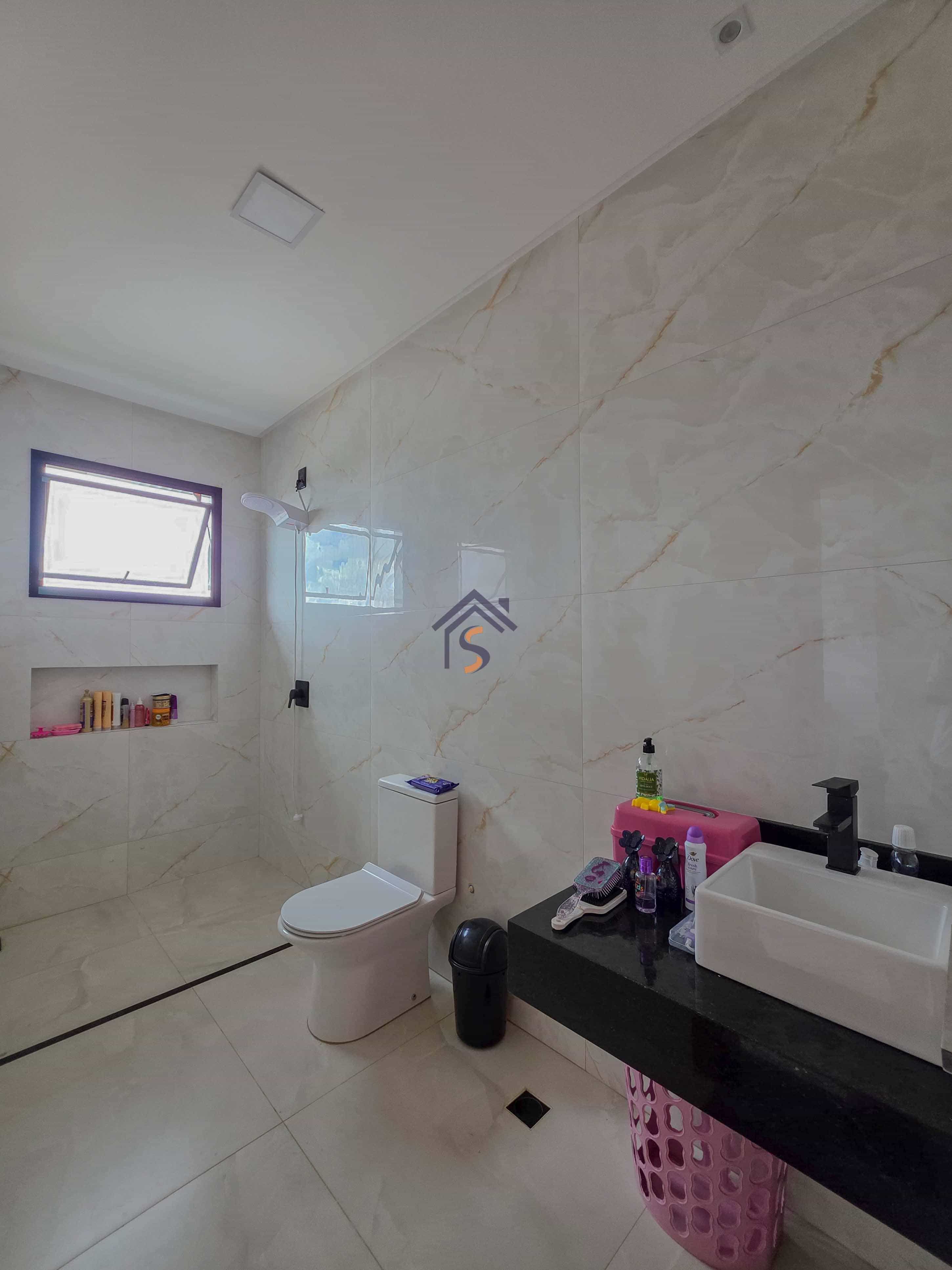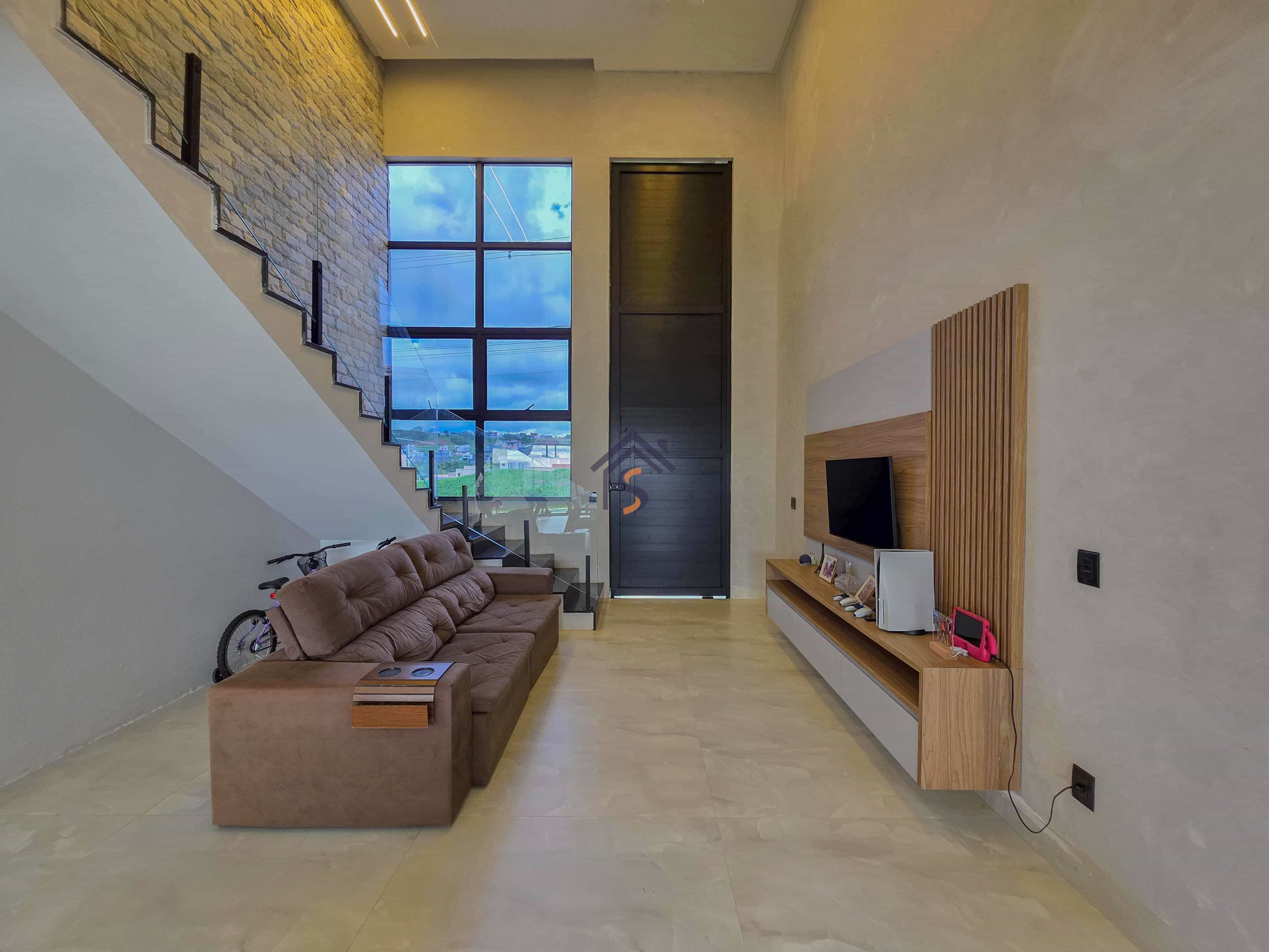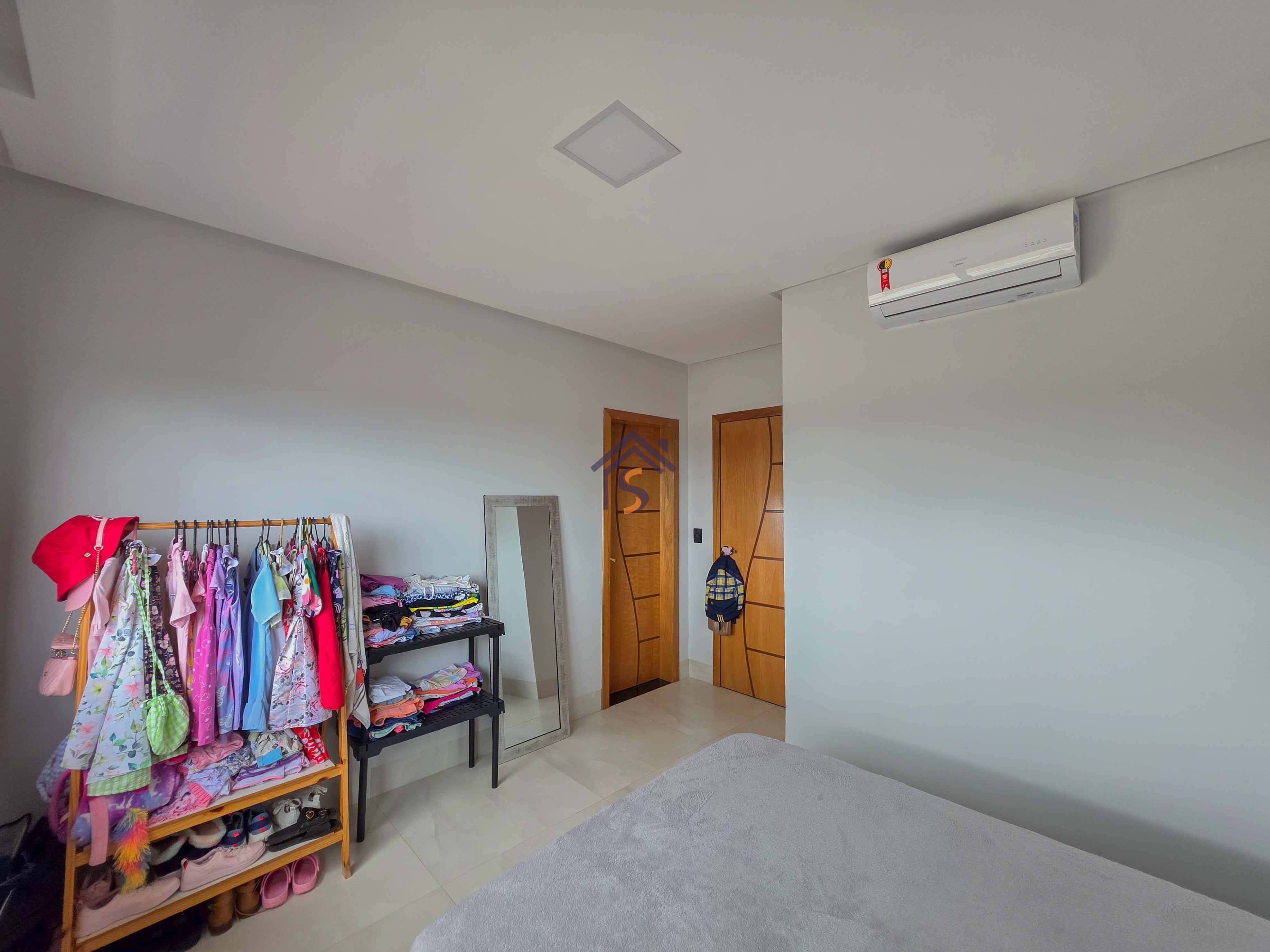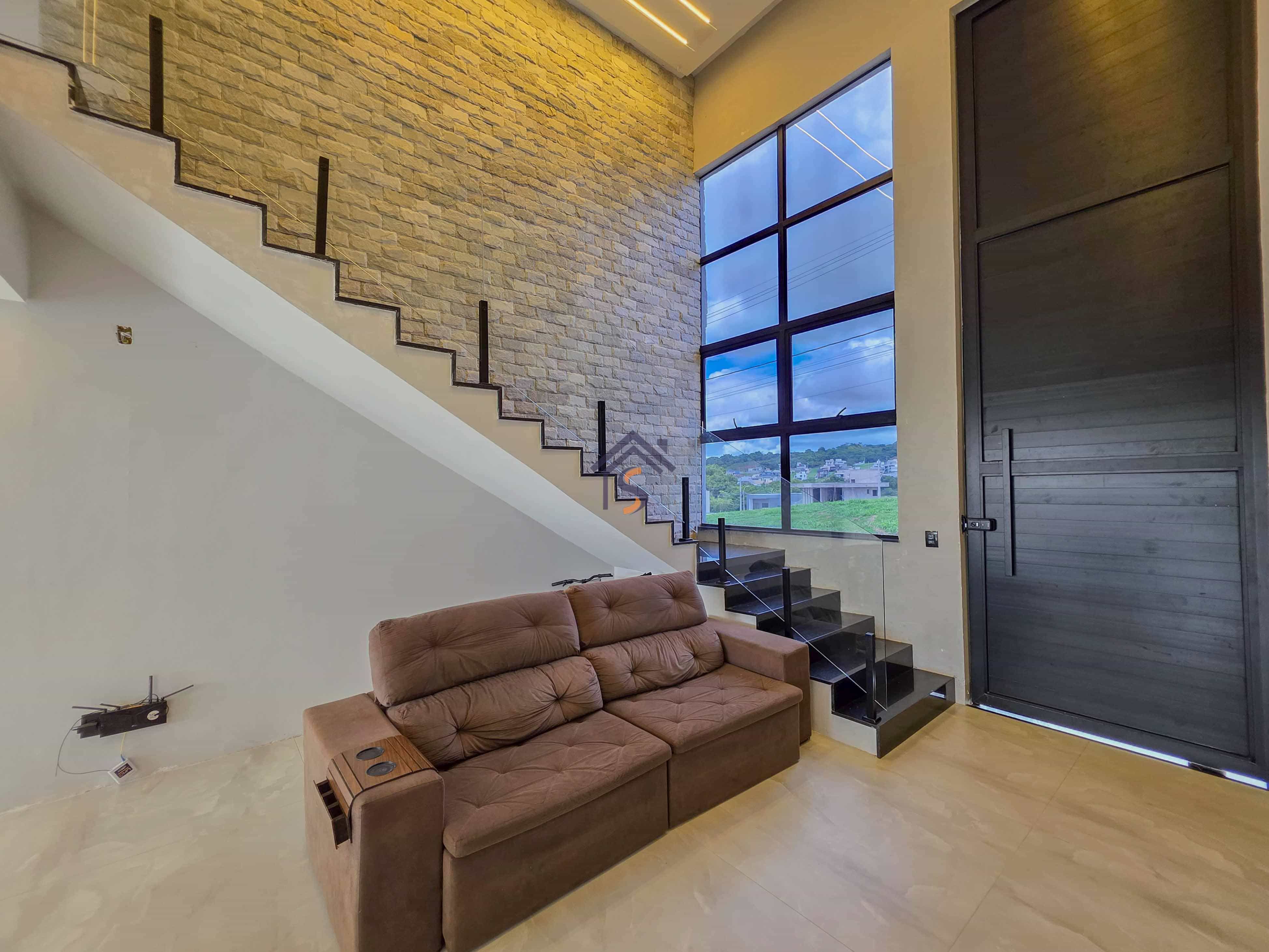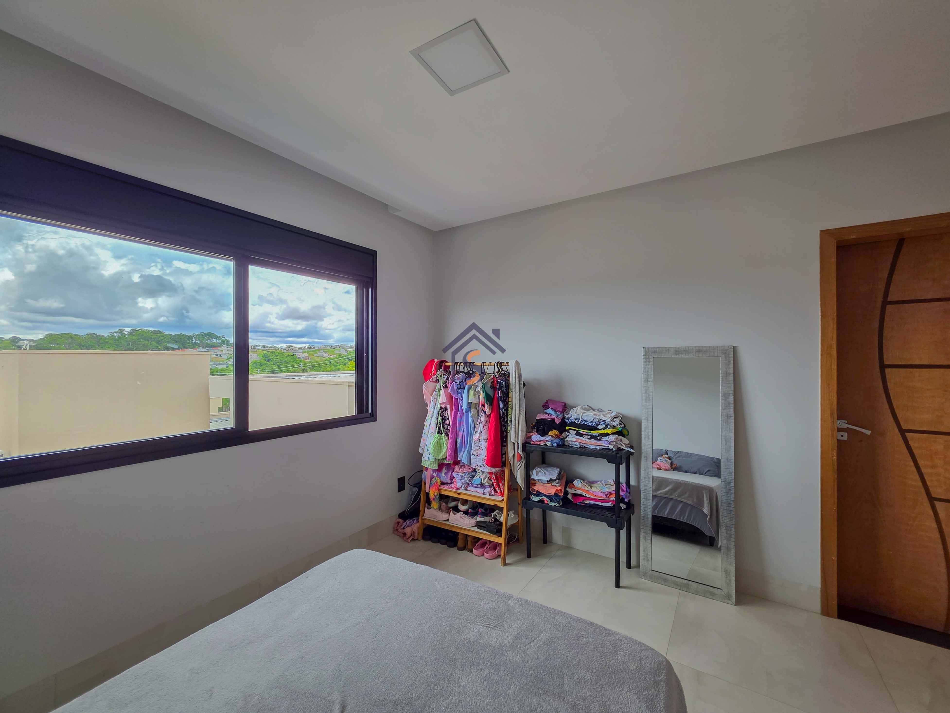 Sobrado em condomínio com quatro suítes plenas, sendo uma suíte máster com banheira, sala de estar e sala de jantar ampla, lavabo, cozinha, piscina com hidromassagem, escritório reversível para quarto no térreo, despensa com área de serviço coberta, quatro vagas de garagens, sendo duas vagas cobertas.