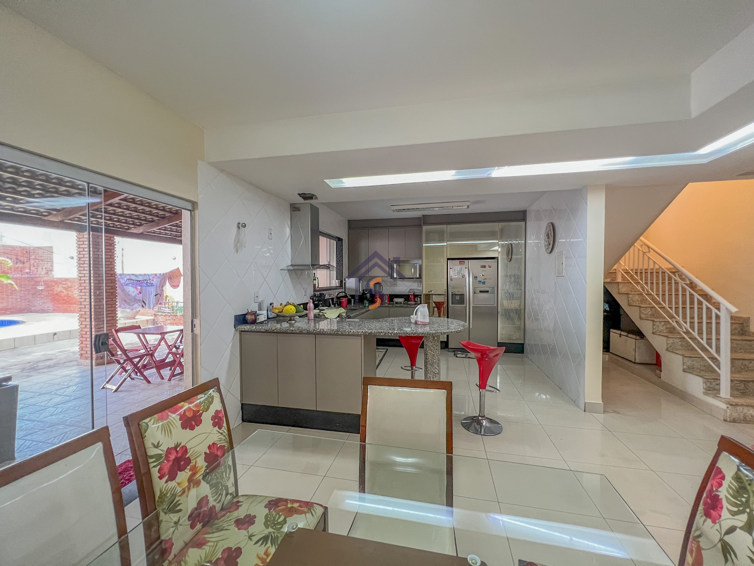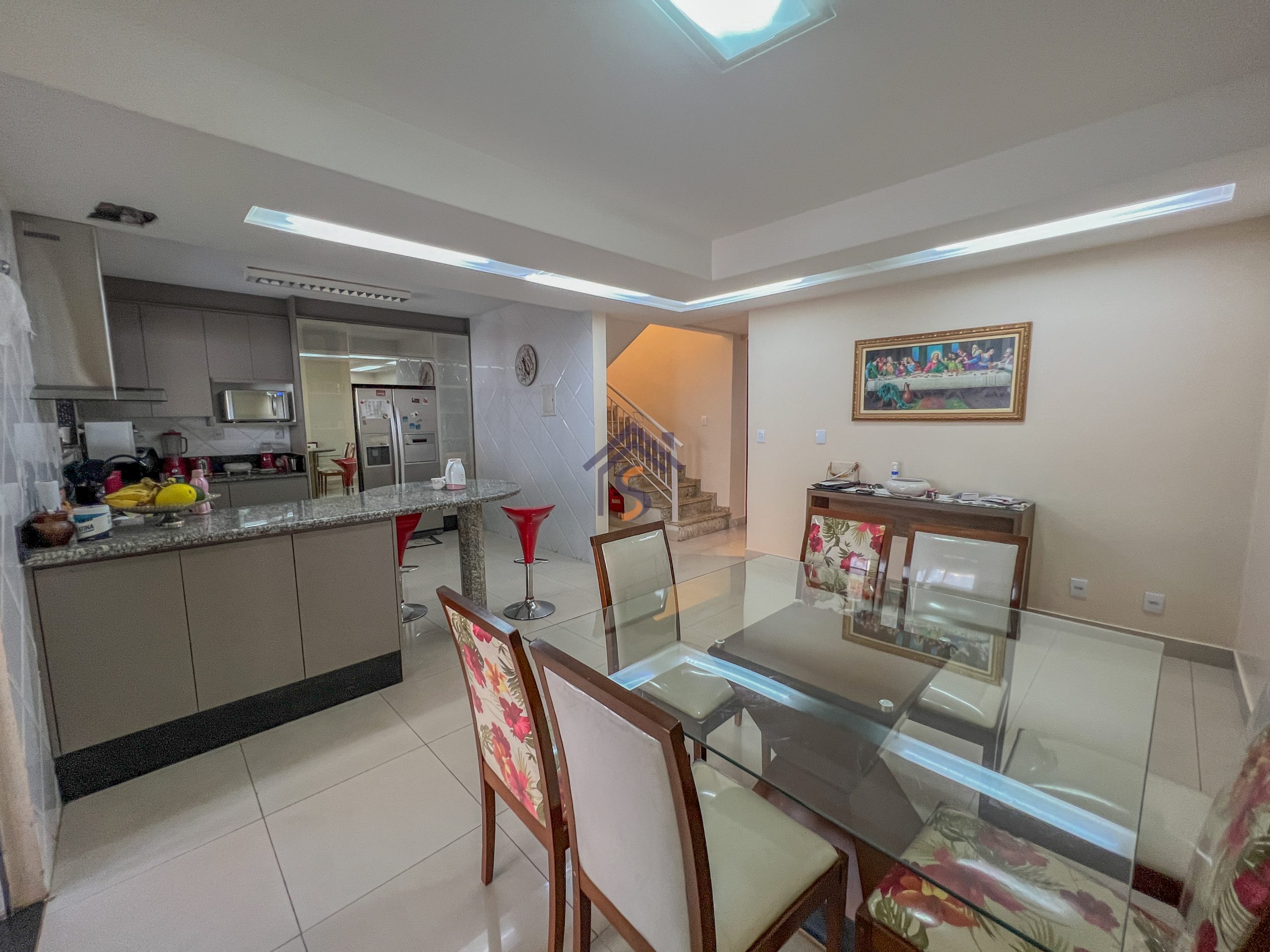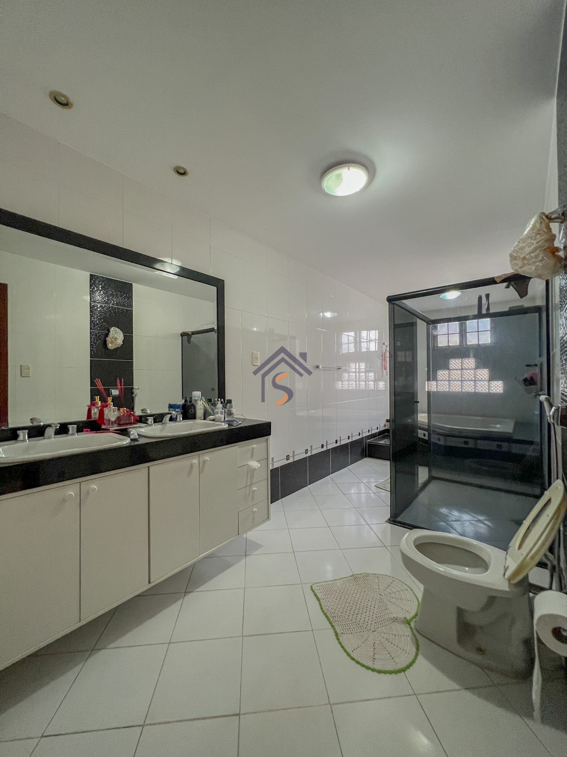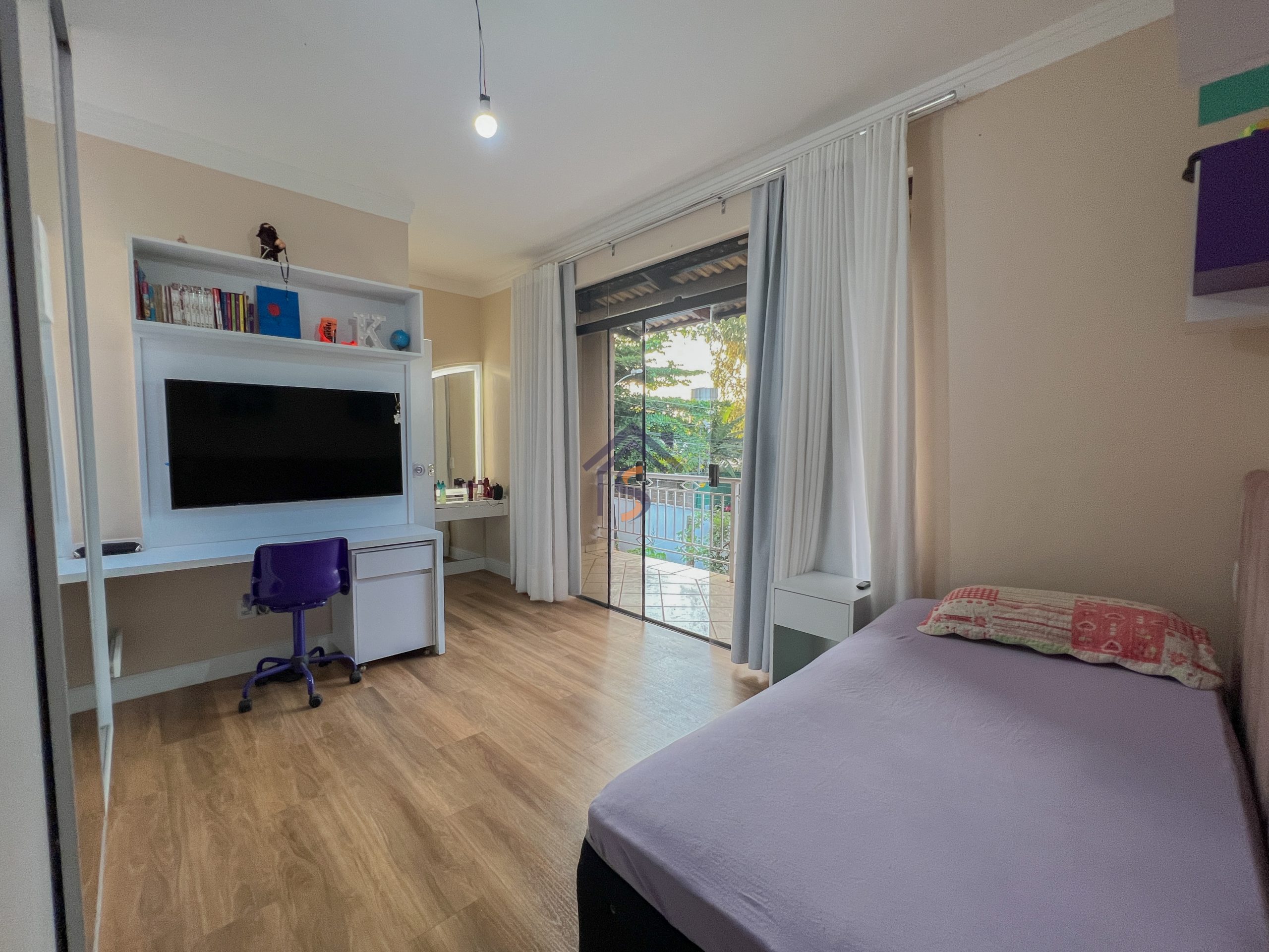 Sobrado com quatro quartos, sendo uma suíte máster com closet e hidromassagem, duas suítes plenas com sacada e hall no pavimento superior, sala de estar, lavabo, sala de jantar e cozinha ampla, varanda gourmet, piscina aquecida, área de serviço, despensa no pavimento térreo e quatro vagas de garagens, sendo duas vagas coberta e duas vagas descobertas.