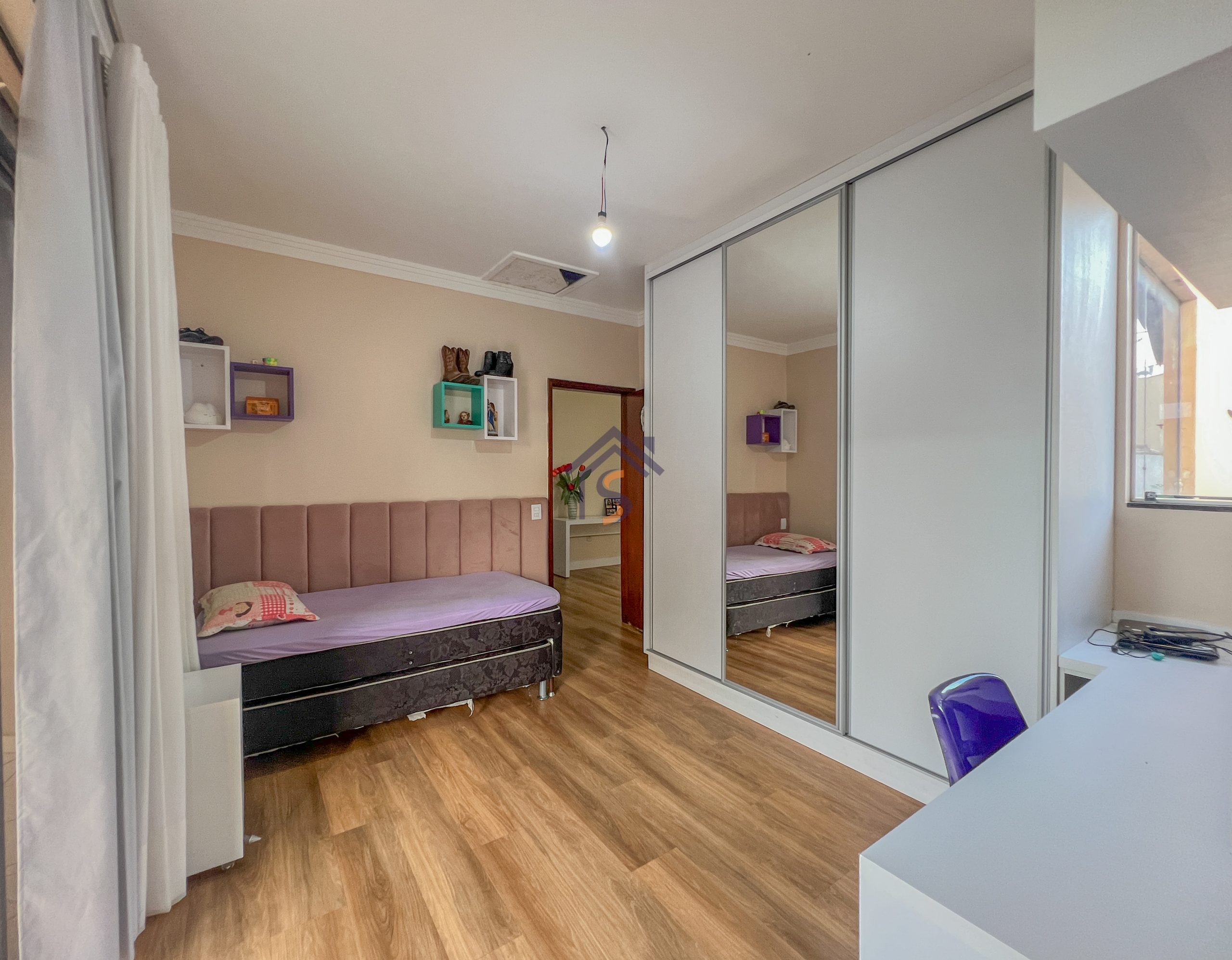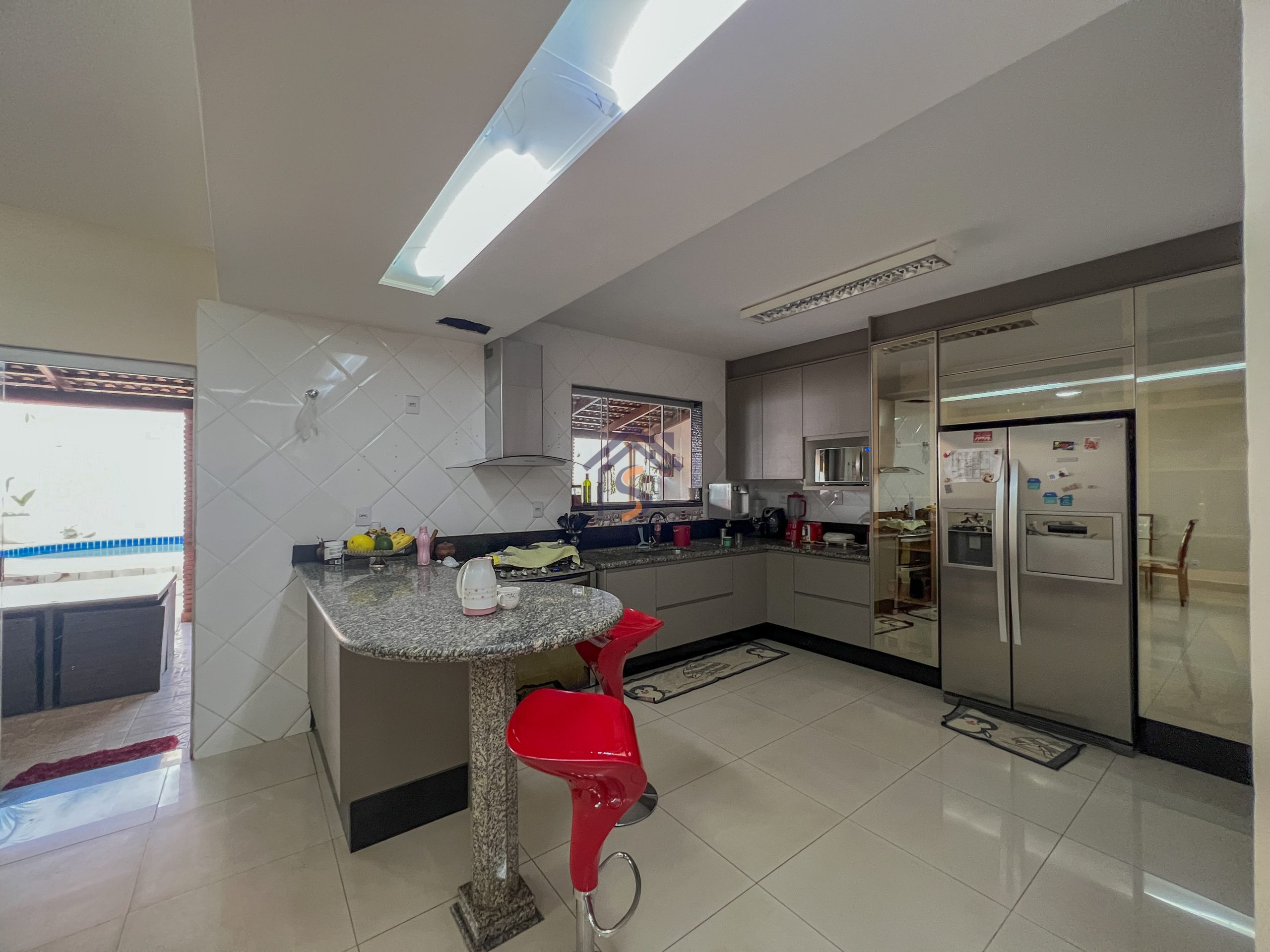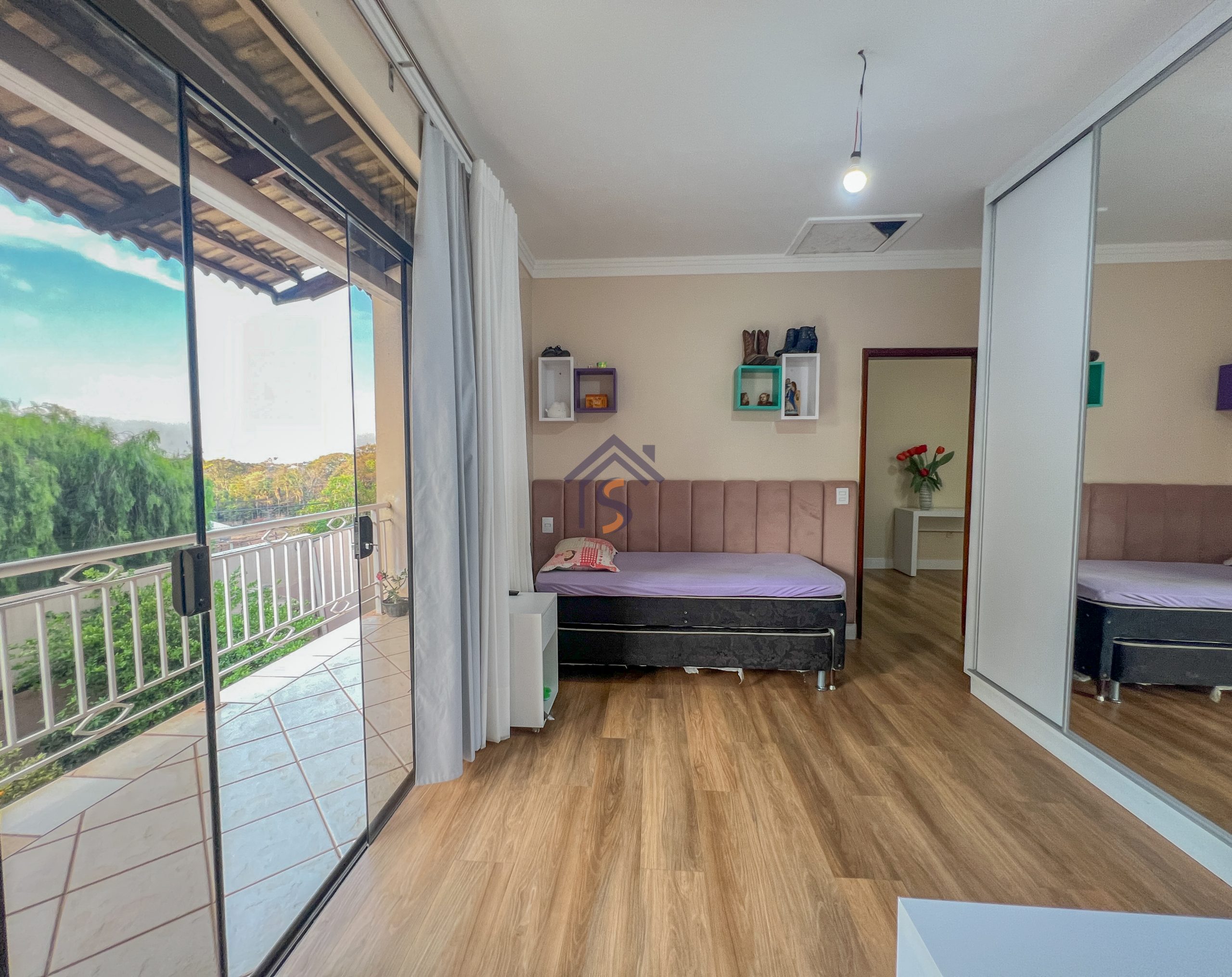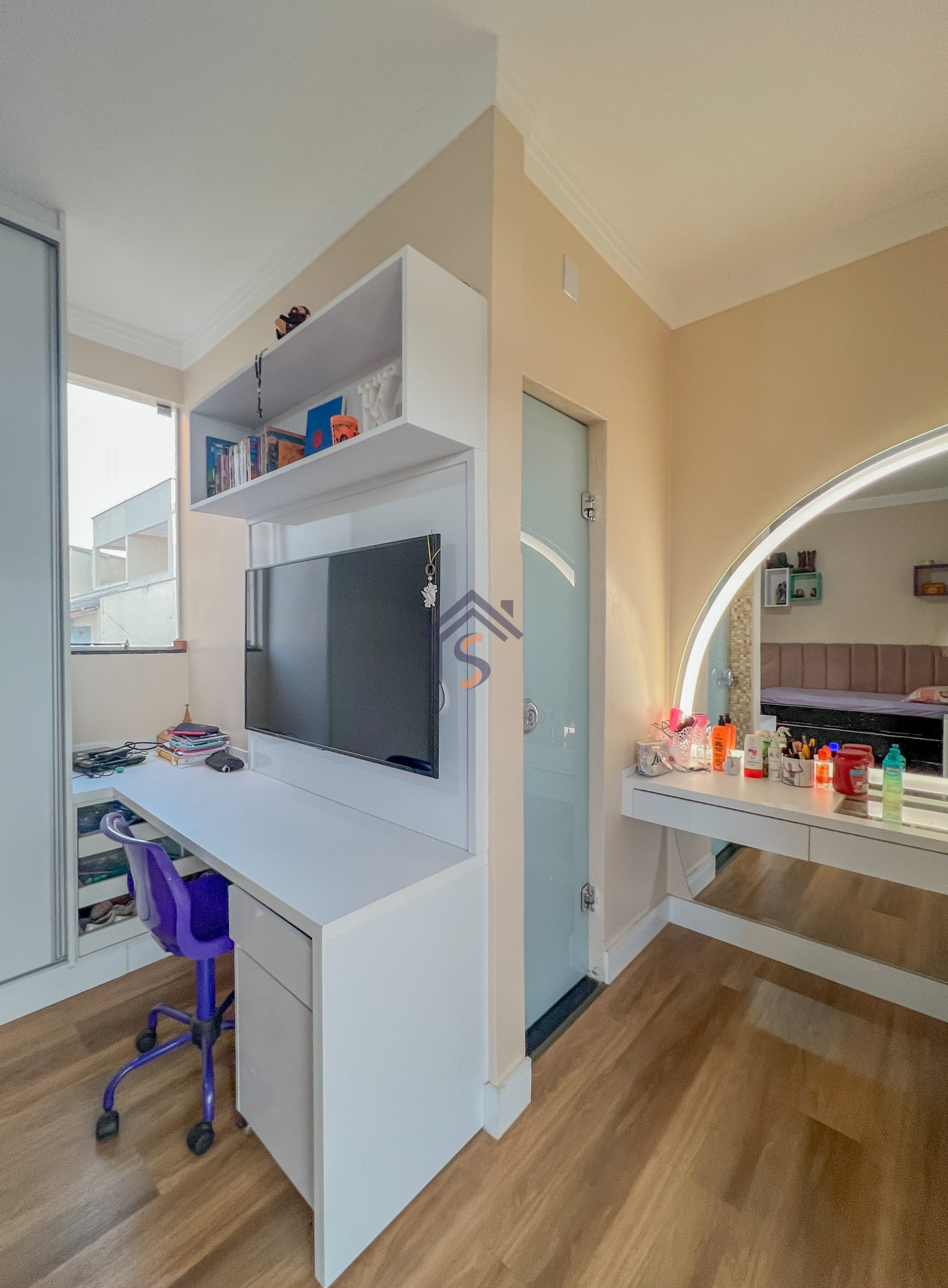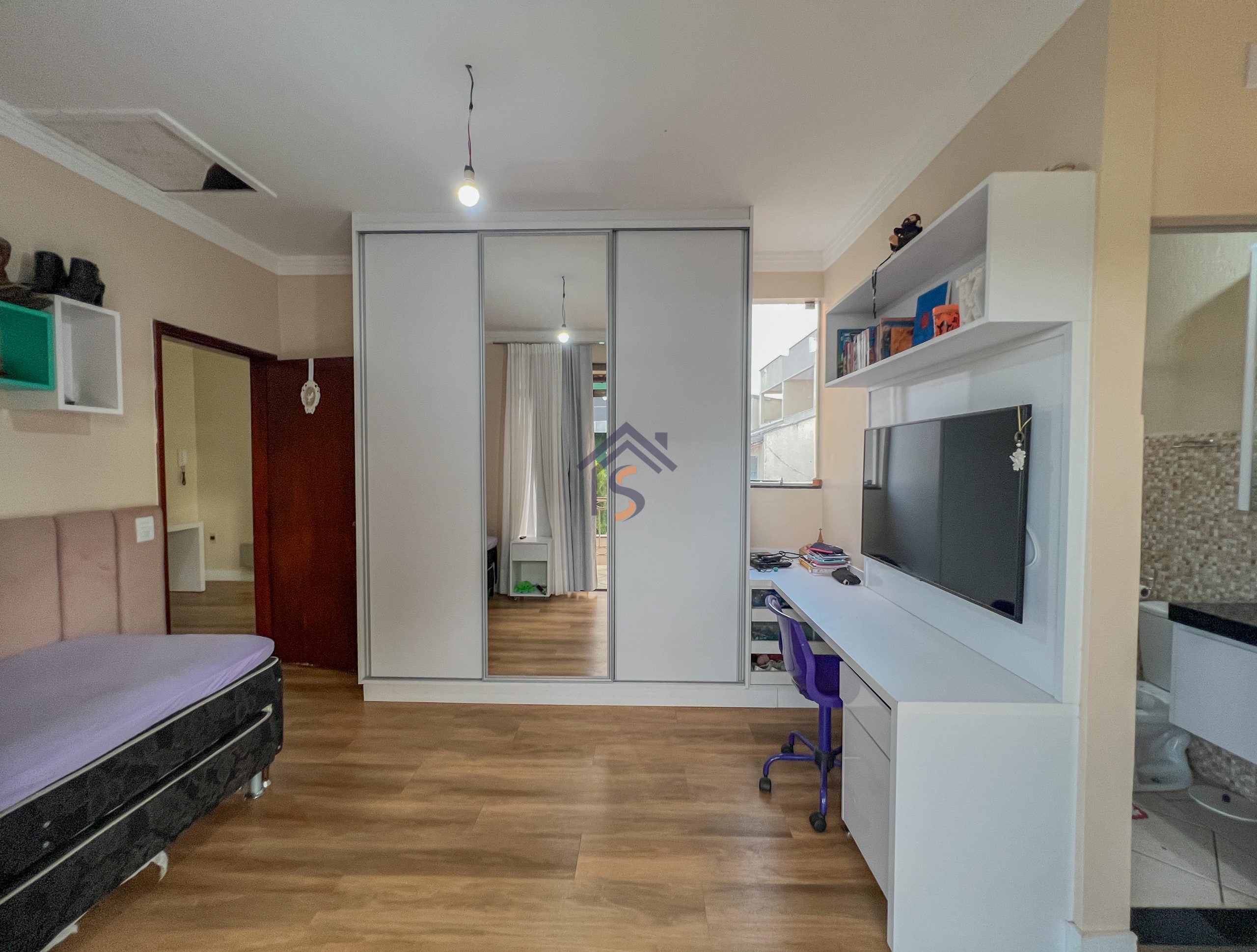 Sobrado com quatro quartos, sendo uma suíte máster com closet e hidromassagem, duas suítes plenas com sacada e hall no pavimento superior, sala de estar, lavabo, sala de jantar e cozinha ampla, varanda gourmet, piscina aquecida, área de serviço, despensa no pavimento térreo e quatro vagas de garagens, sendo duas vagas coberta e duas vagas descobertas.