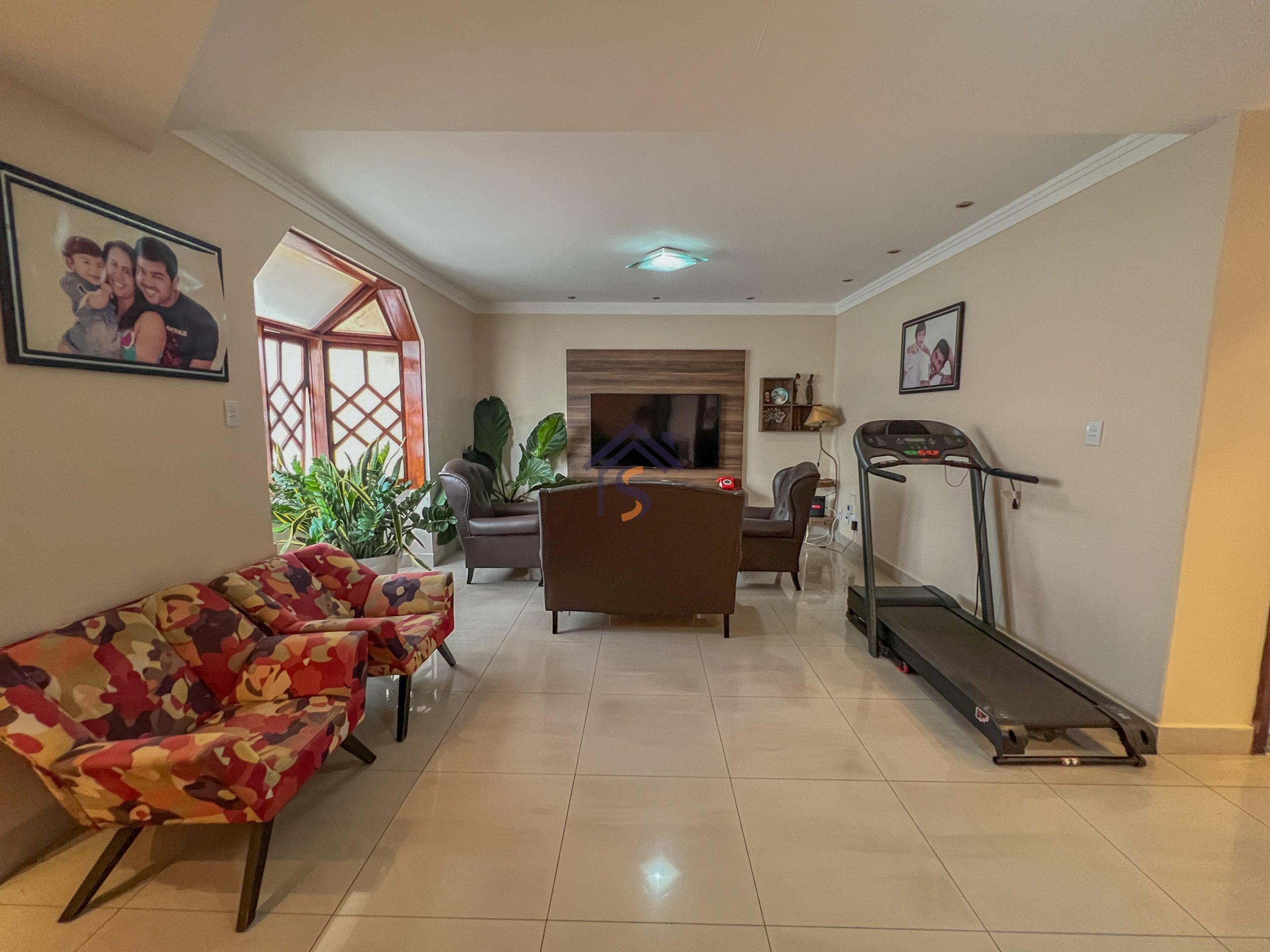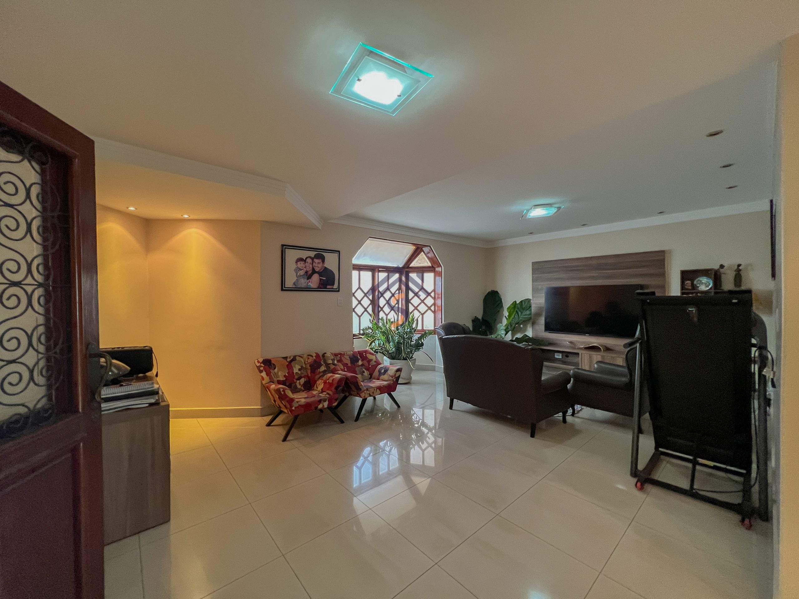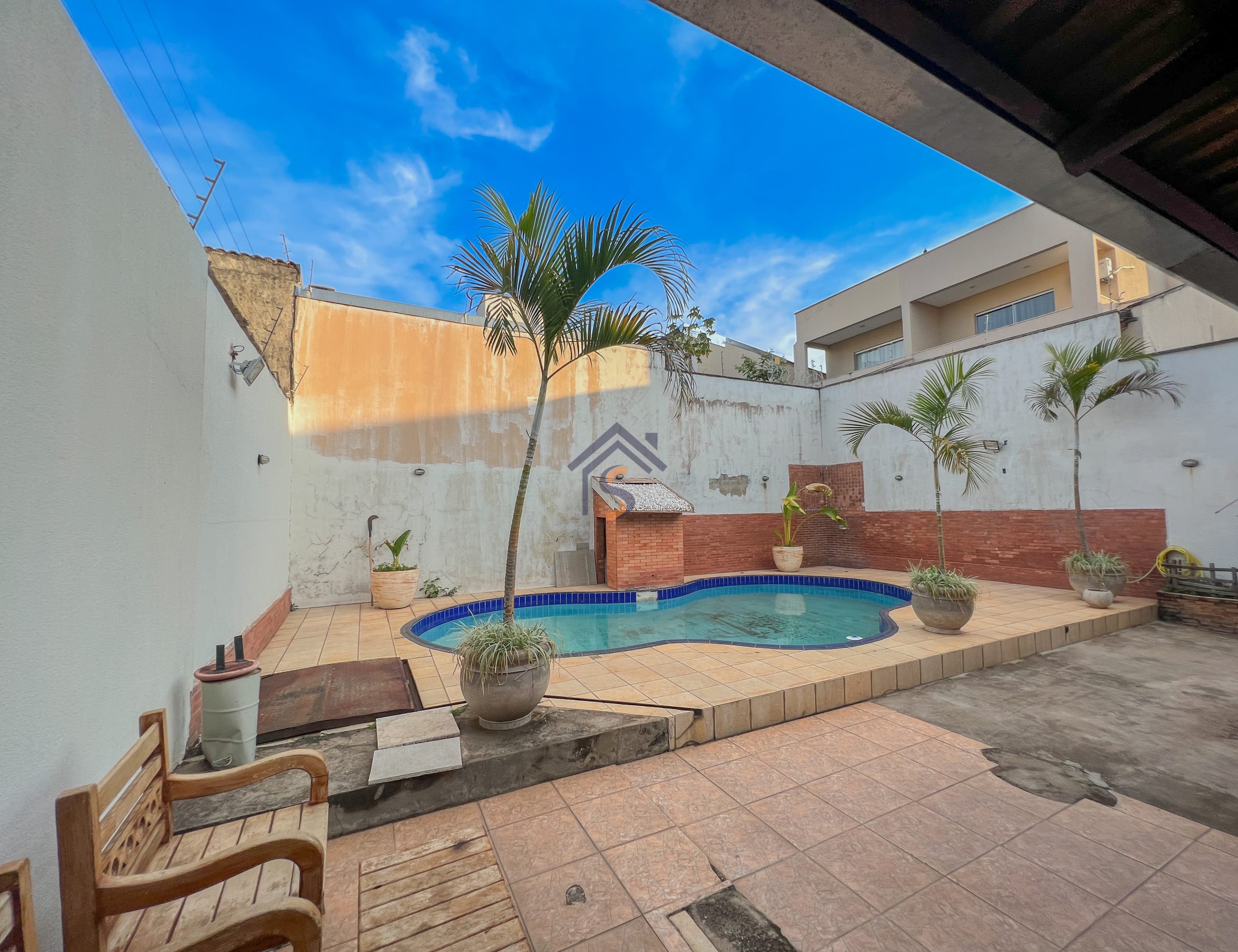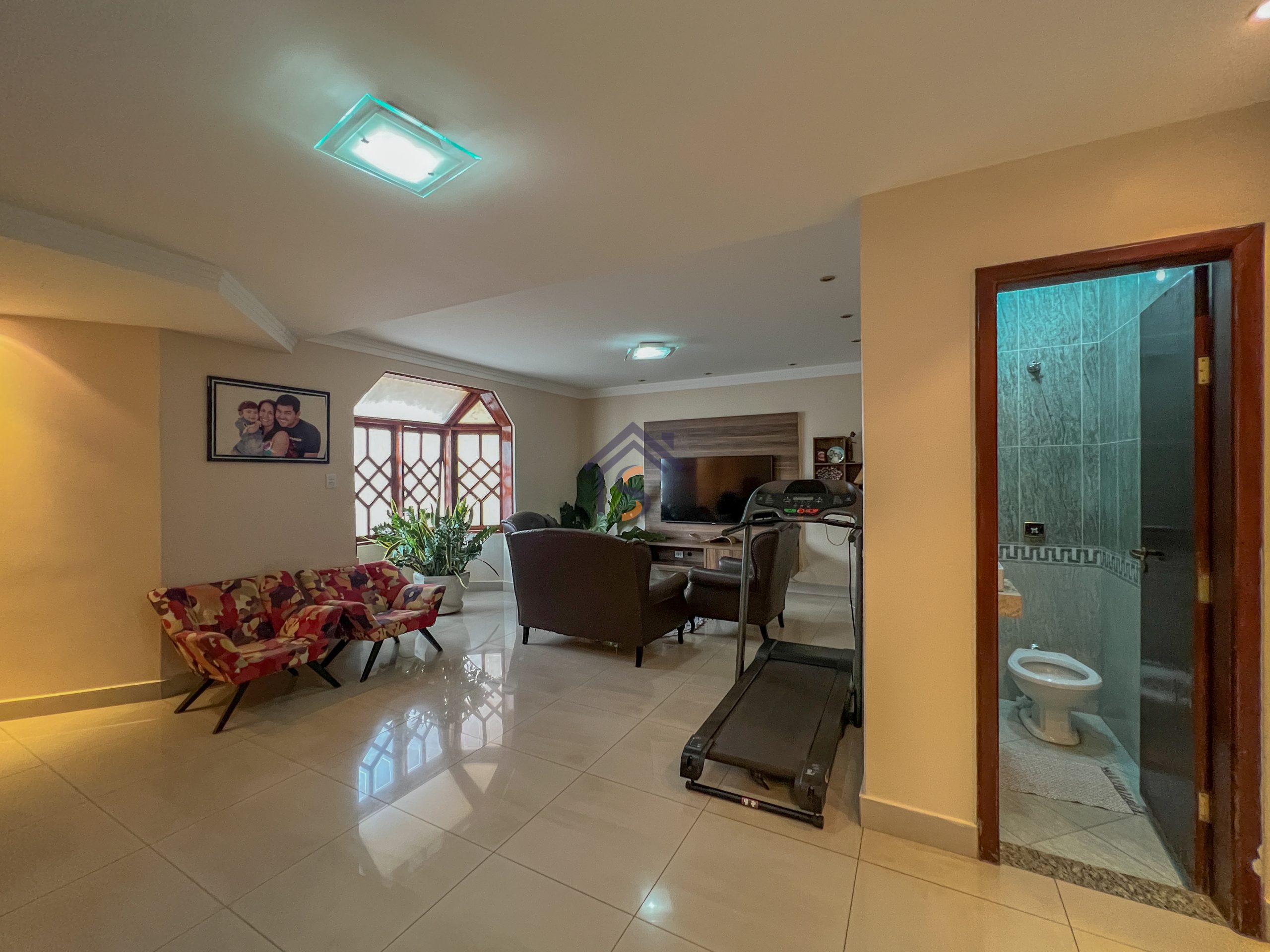Sobrado com quatro quartos, sendo uma suíte máster com closet e hidromassagem, duas suítes plenas com sacada e hall no pavimento superior, sala de estar, lavabo, sala de jantar e cozinha ampla, varanda gourmet, piscina aquecida, área de serviço, despensa no pavimento térreo e quatro vagas de garagens, sendo duas vagas coberta e duas vagas descobertas.