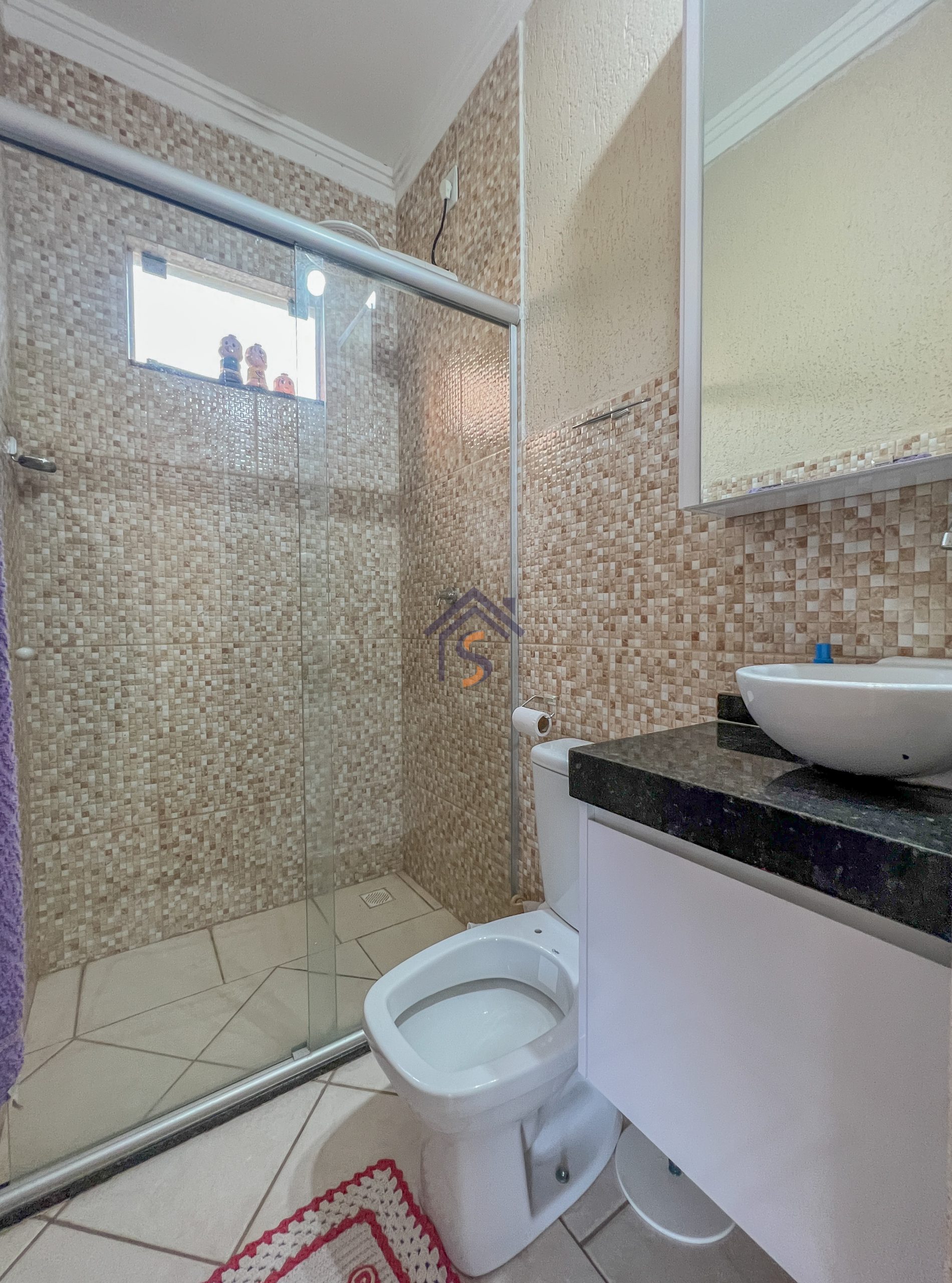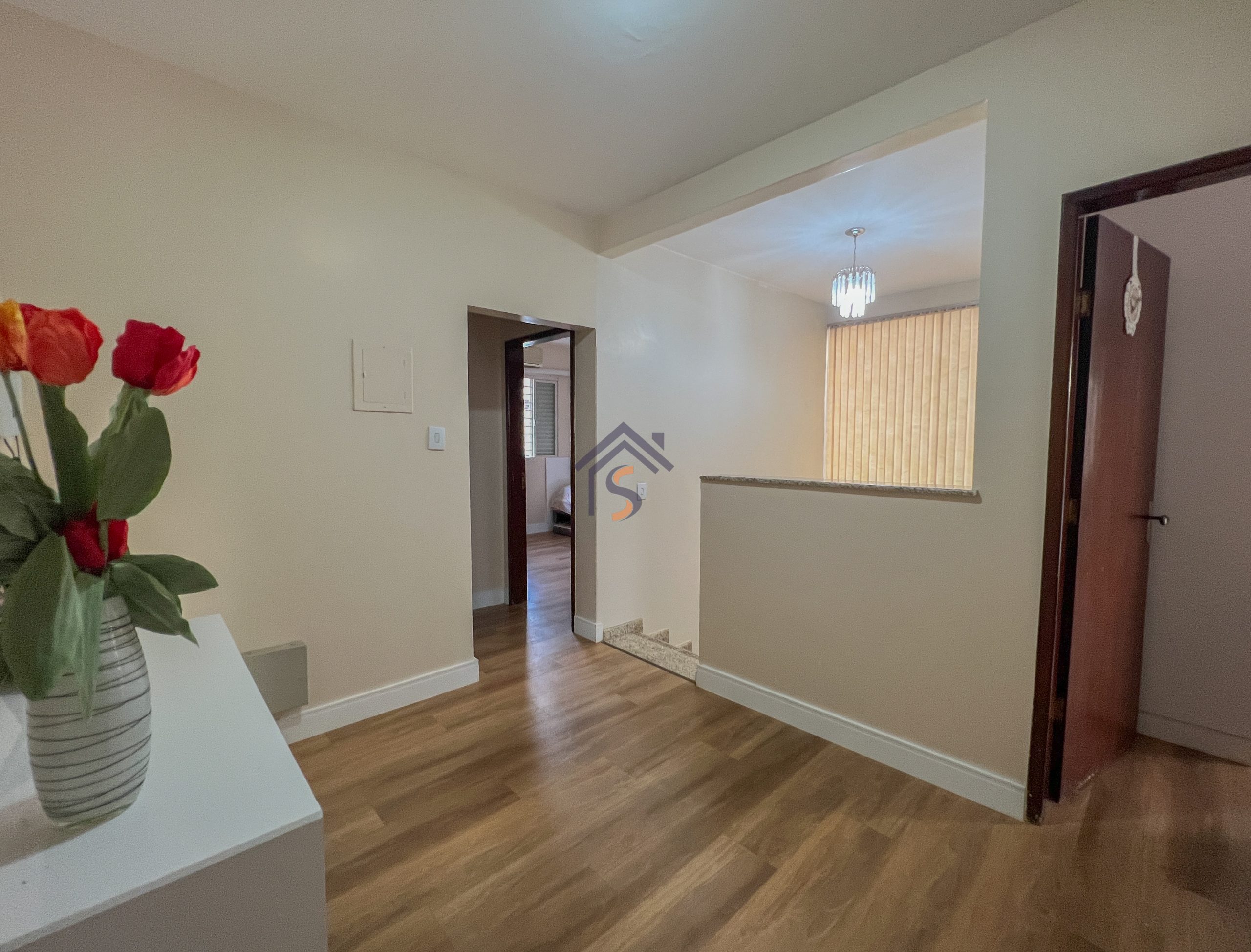 Completo em armários, piso porcelanato no pavimento térreo e piso laminado no pavimento superior, cortinas, luminárias e aquecimento solar, box e espelhos nos banheiros.